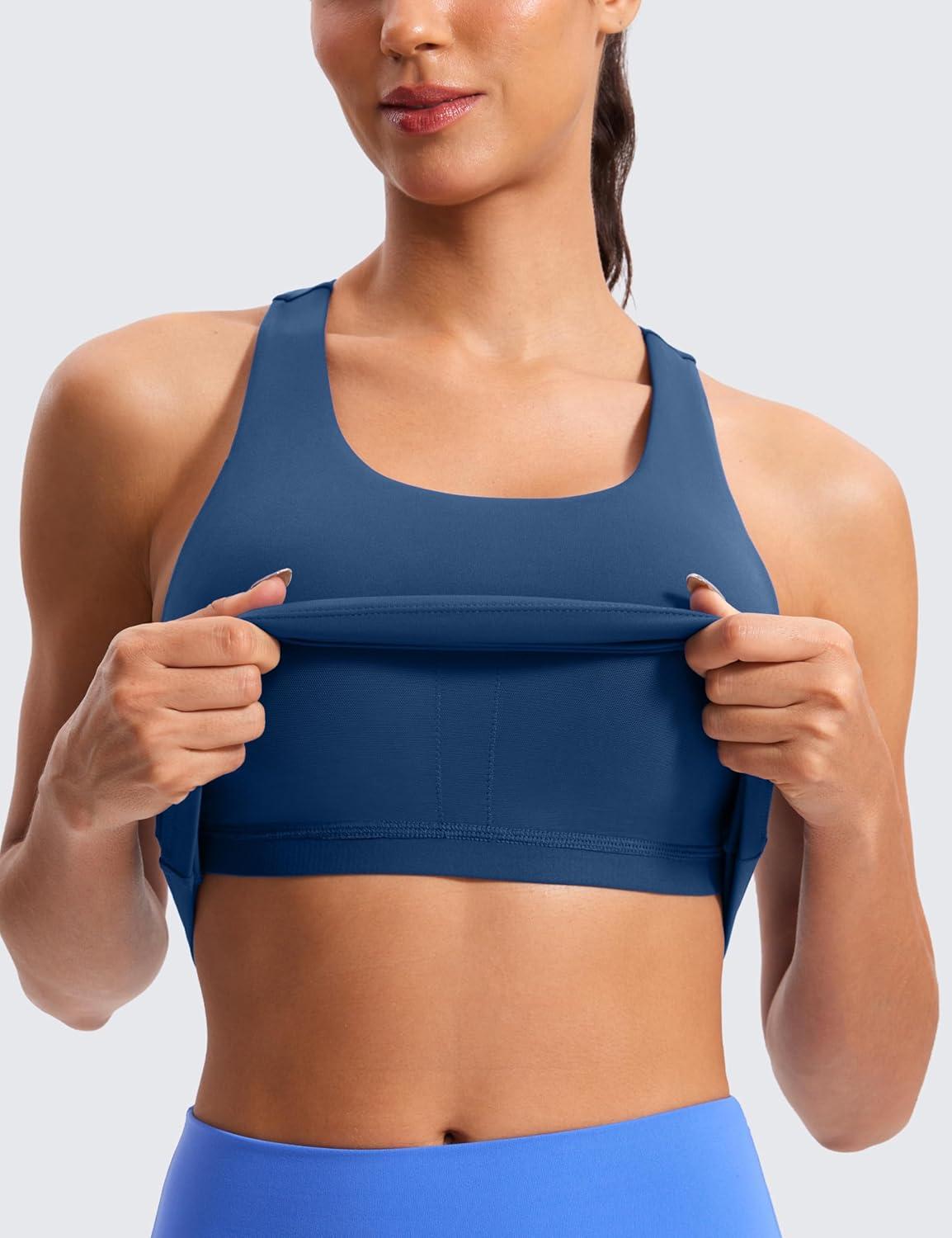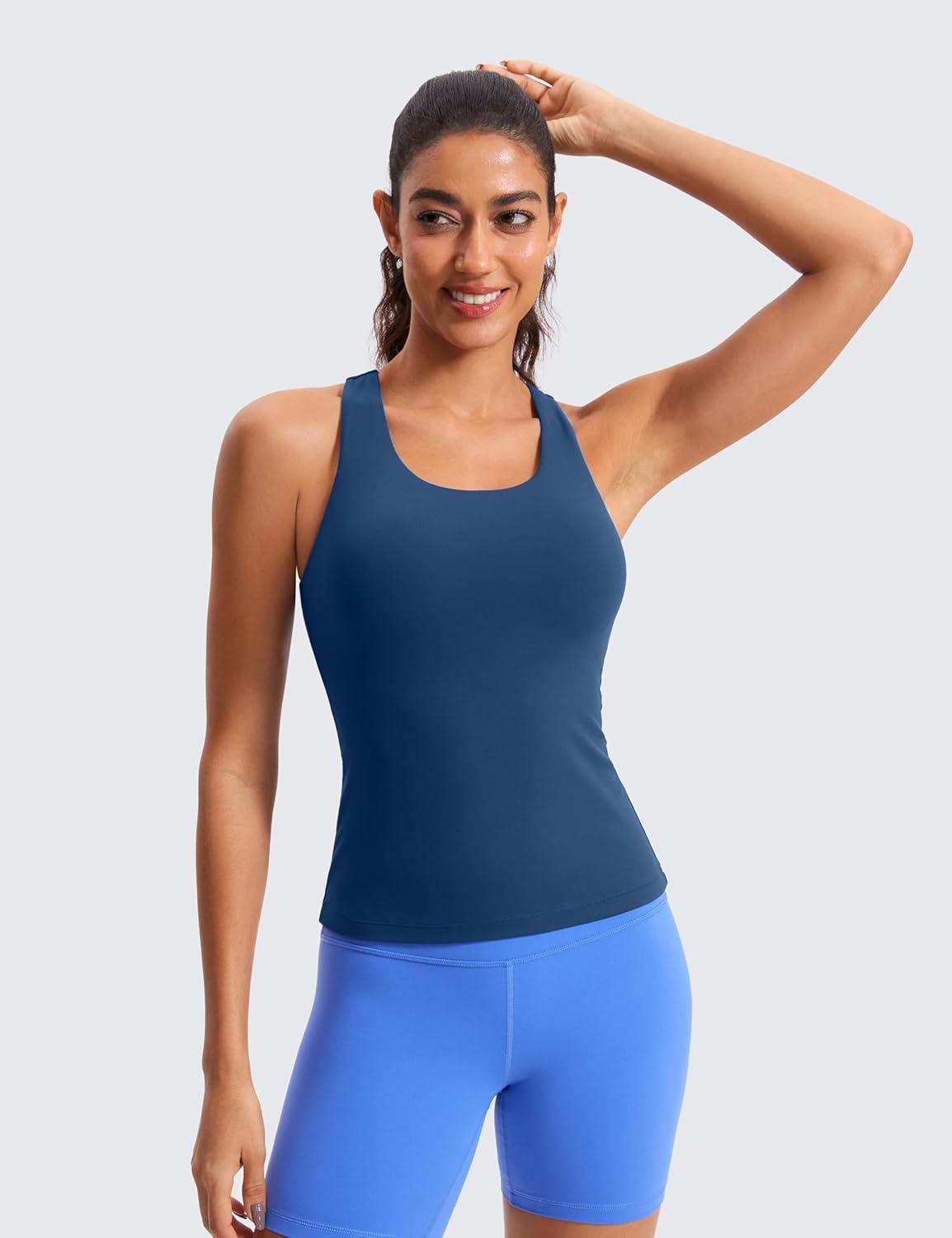 CRZ YOGA Butterluxe Workout Racerback Tank Tops for Women – Padded Athletic Spandex Yoga Shirts with Built in Bra(French Navy)