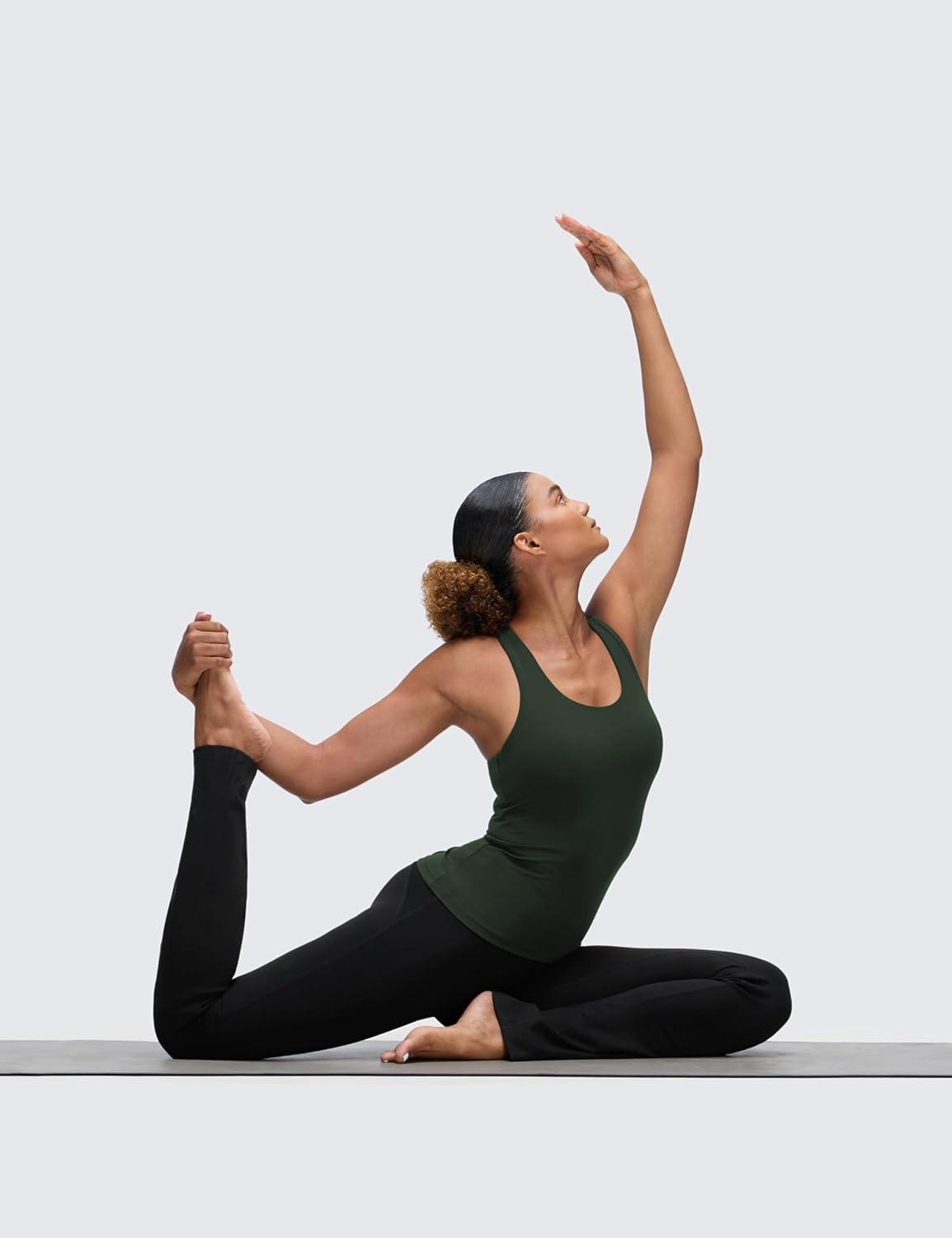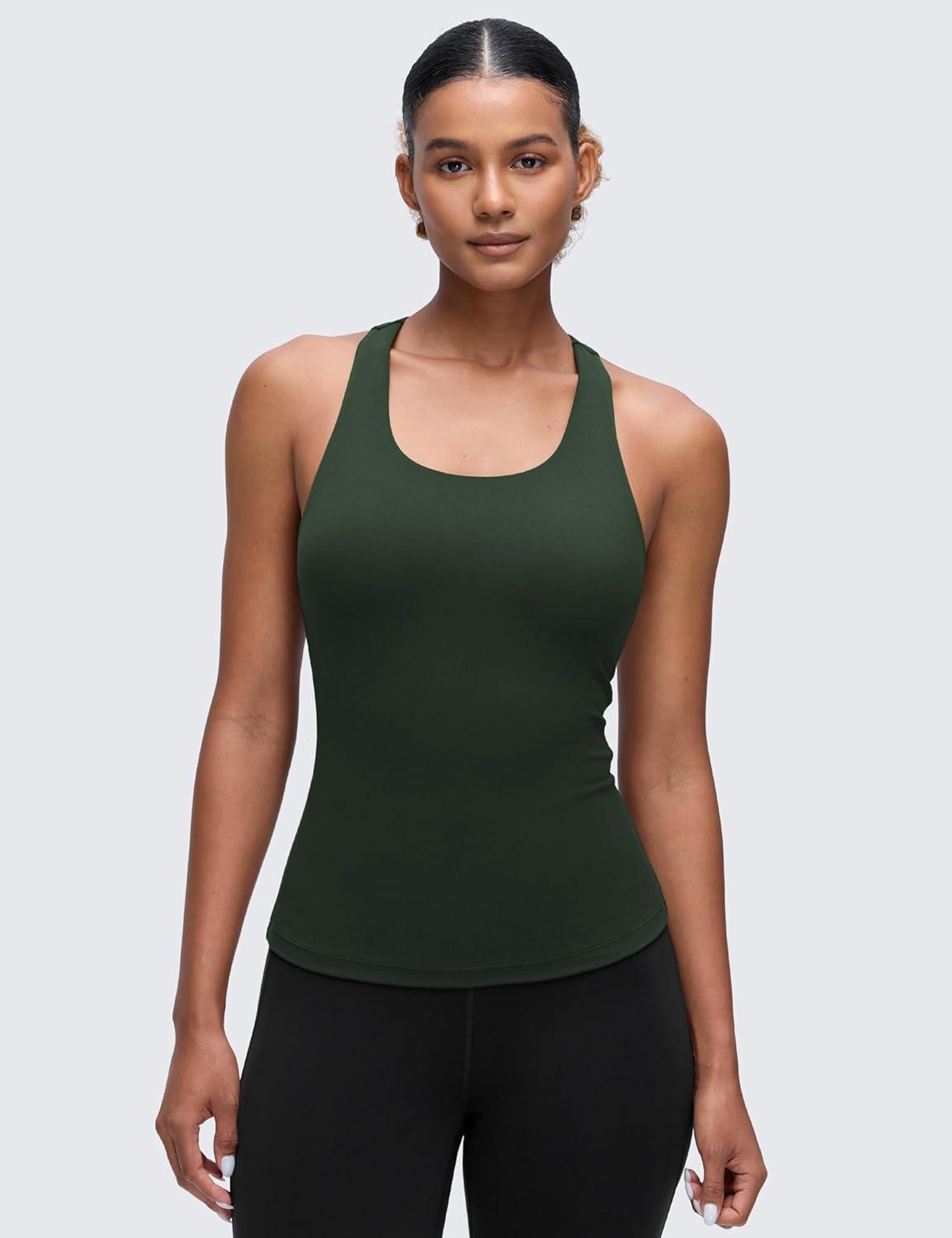 CRZ YOGA Butterluxe Workout Racerback Tank Tops for Women – Padded Athletic Spandex Yoga Shirts with Built in Bra(Legend Green)