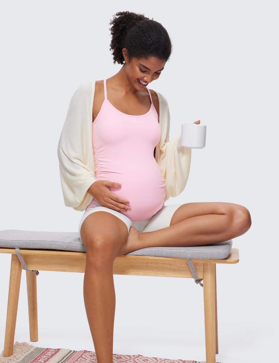 CRZ YOGA Butterluxe Y Back Maternity Tank Tops for Women Ruched Pregnancy Basic Camisole Sleeveless Athletic Yoga Shirts(Pink Peony)