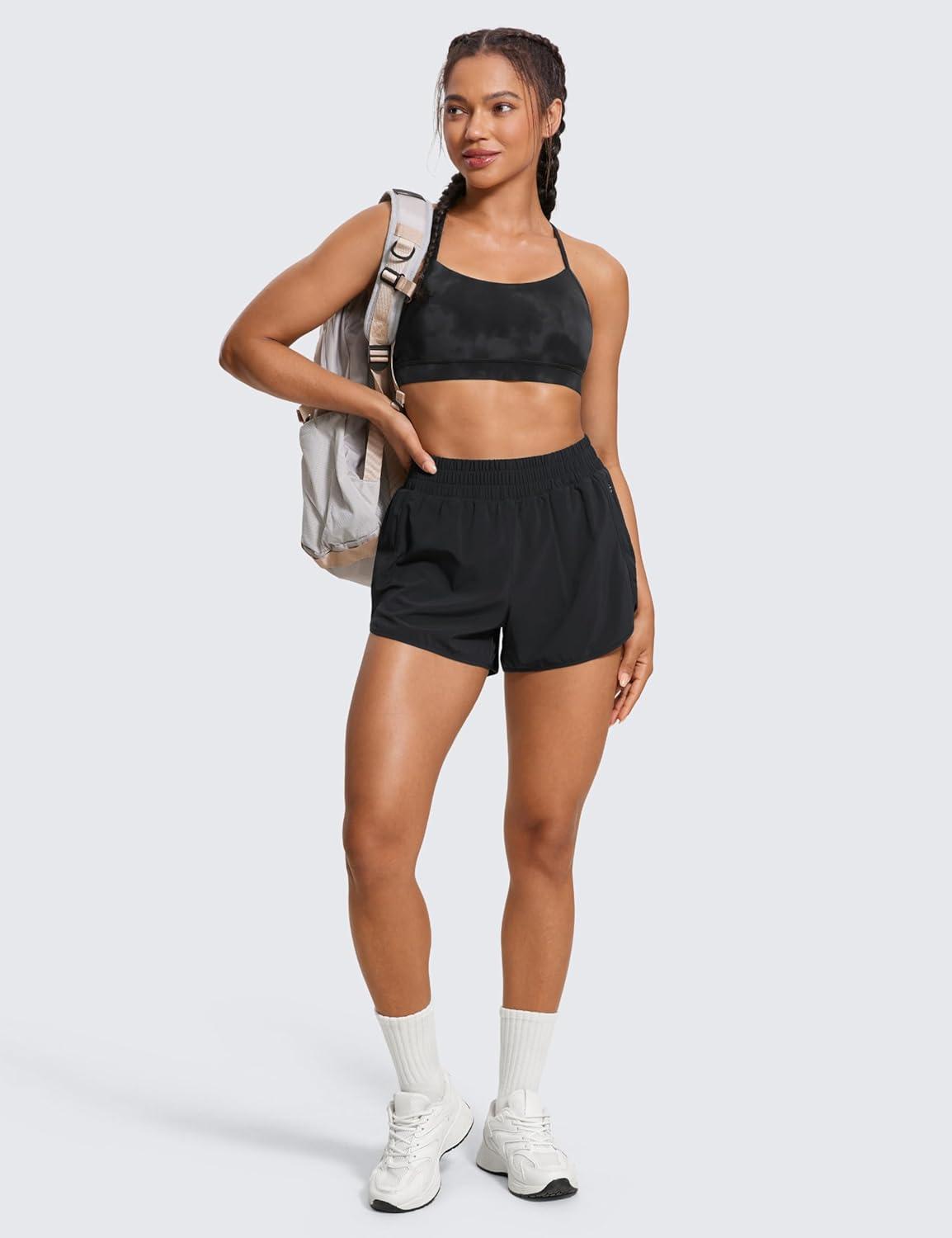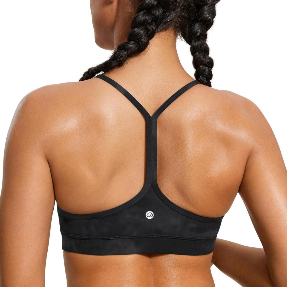 CRZ YOGA Butterluxe Y Back Sports Bras for Women – Padded Racerback Low Impact Spaghetti Thin Strap Workout Yoga Top(Black Tie Dye Flowers)