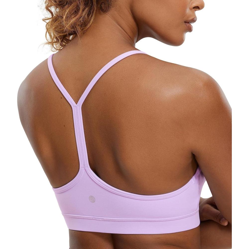 CRZ YOGA Butterluxe Y Back Sports Bras for Women – Padded Racerback Low Impact Spaghetti Thin Strap Workout Yoga Top(Elfin Purple)