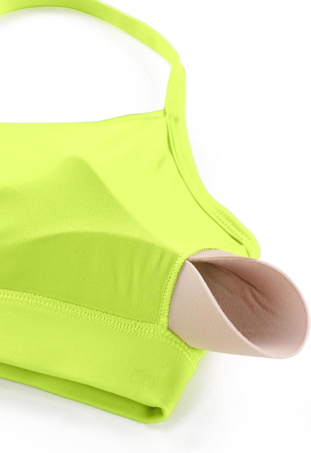 CRZ YOGA Butterluxe Y Back Sports Bras for Women – Padded Racerback Low Impact Spaghetti Thin Strap Workout Yoga Top(Neon Yellow)