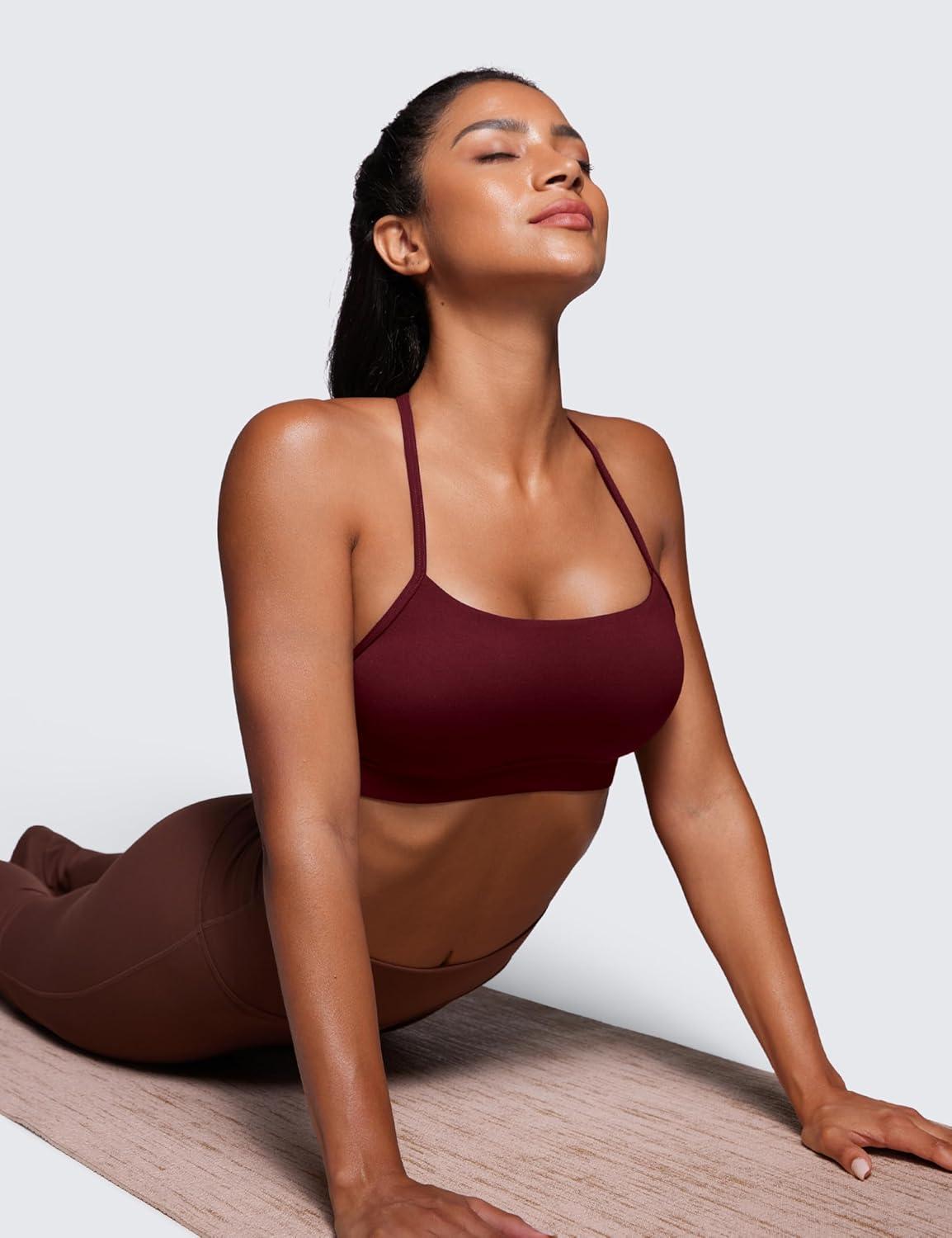 CRZ YOGA Butterluxe Y Back Sports Bras for Women – Padded Racerback Low Impact Spaghetti Thin Strap Workout Yoga Top(Red Merlot)