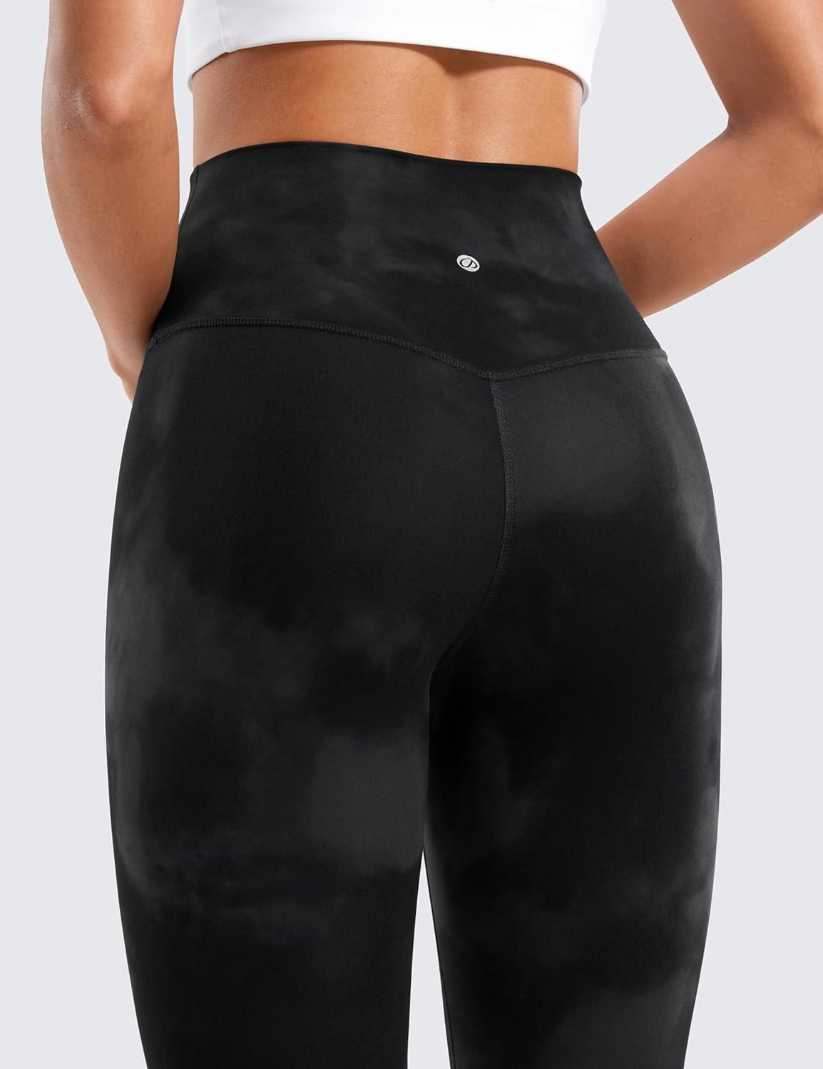 CRZ YOGA Butterluxe Yoga Leggings 25″ – High Waisted Buttery Soft Womens Workout Lounge Pants(Black Tie Dye Flowers)