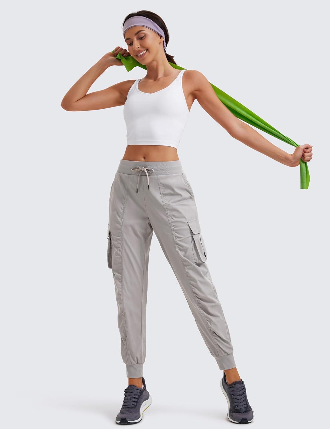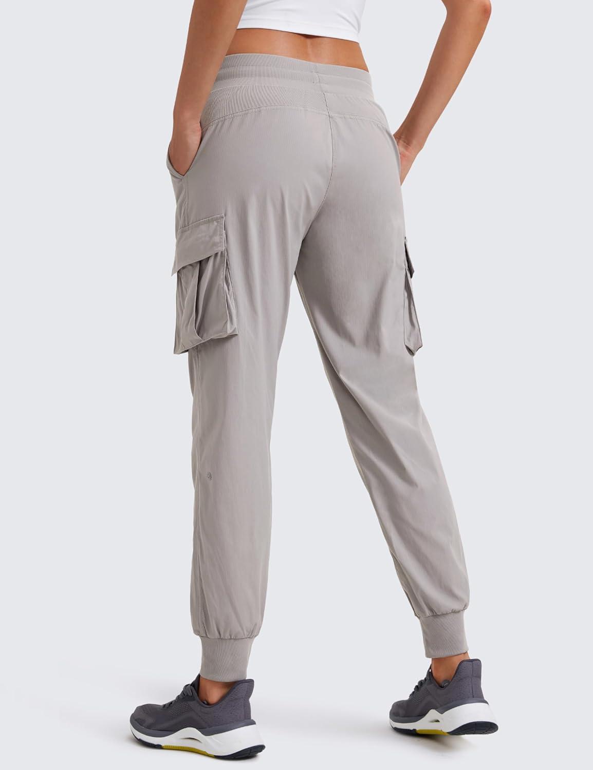 CRZ YOGA Cargo Joggers for Women Lightweight Ruched Workout Casual Travel Athletic Hiking Pants with Pockets(Dark Chrome)