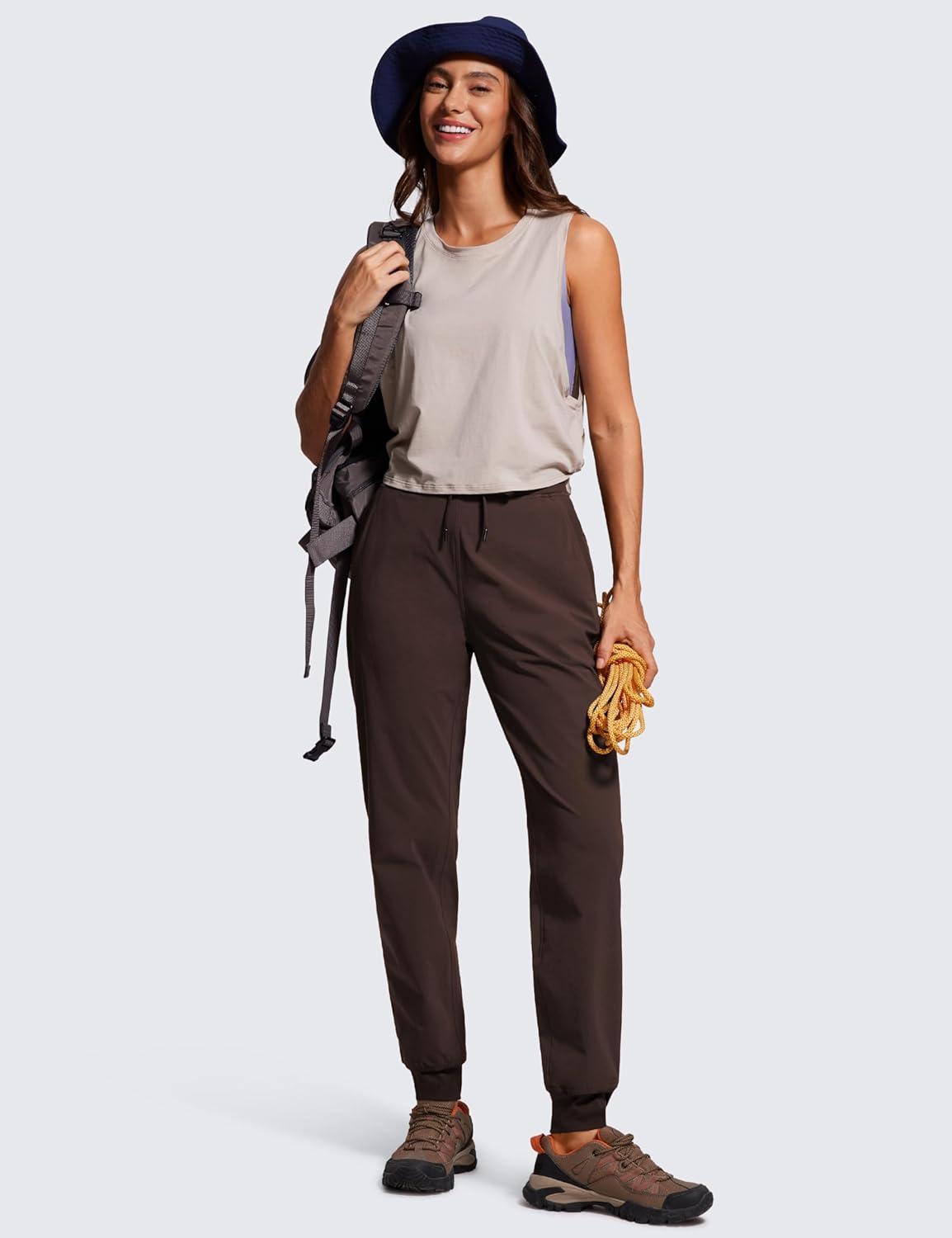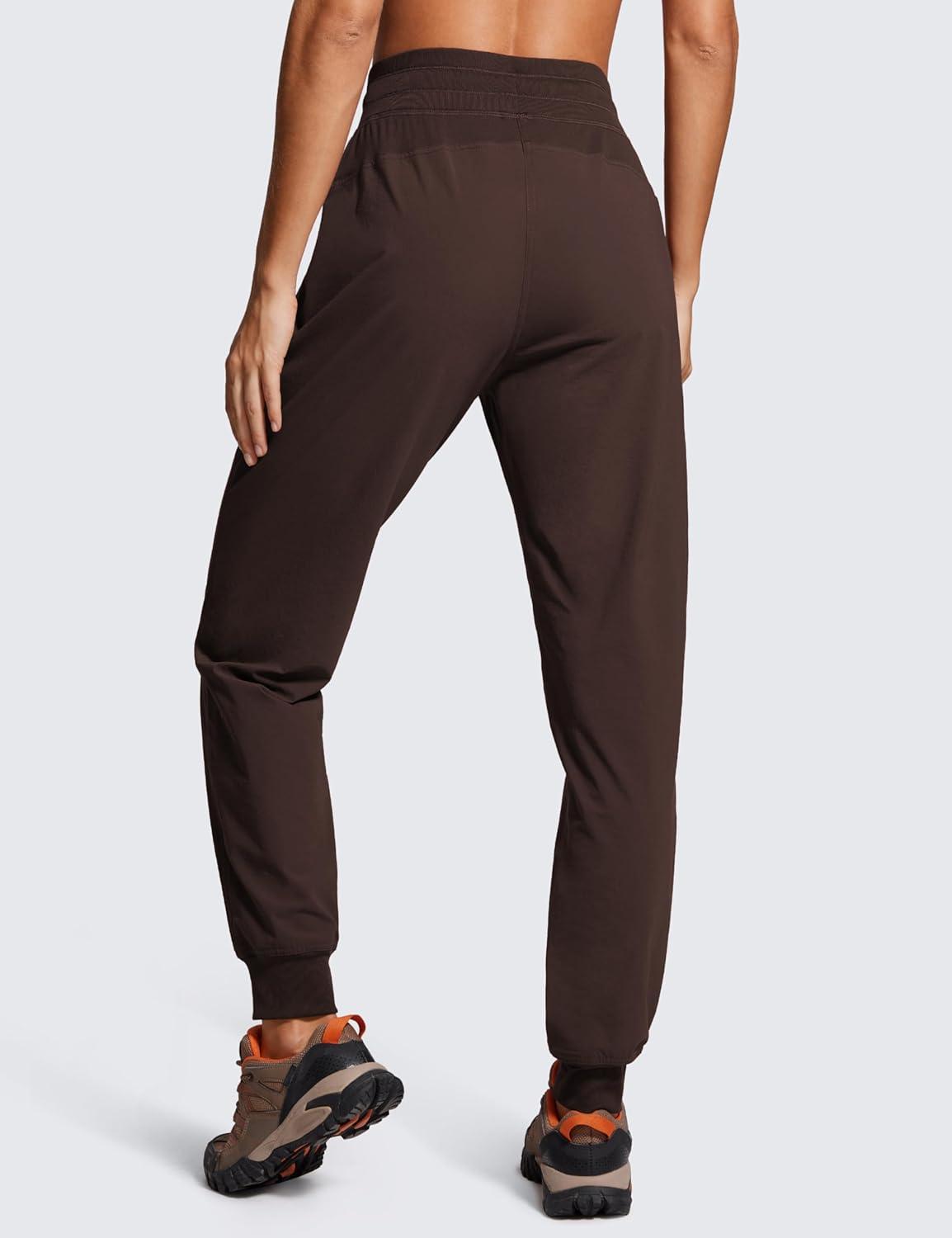 CRZ YOGA Casual Workout Jogger for Women 28.5″ – Tapered Lightweight Stretch Athletic Outdoor Pants with Pockets(Hot Fudge Brown)