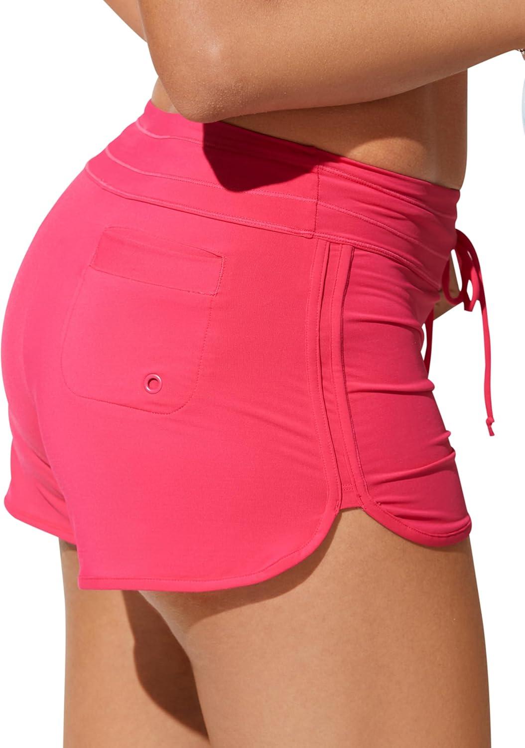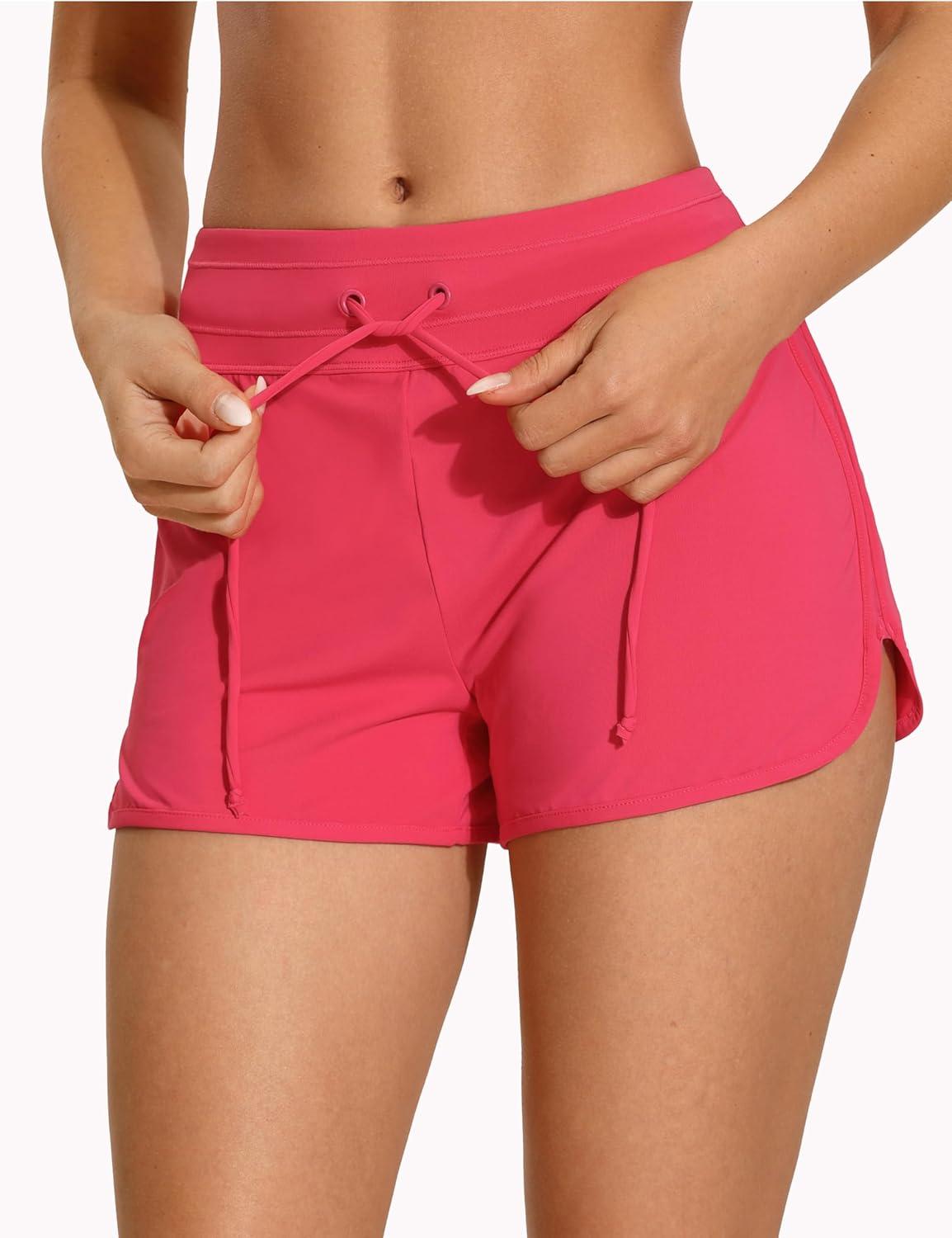 CRZ YOGA Classic Fit Dolphin Board Shorts for Women 3” – High Waisted Beach Swimwear Bottoms Bathing Trunks with Liner(Magenta)