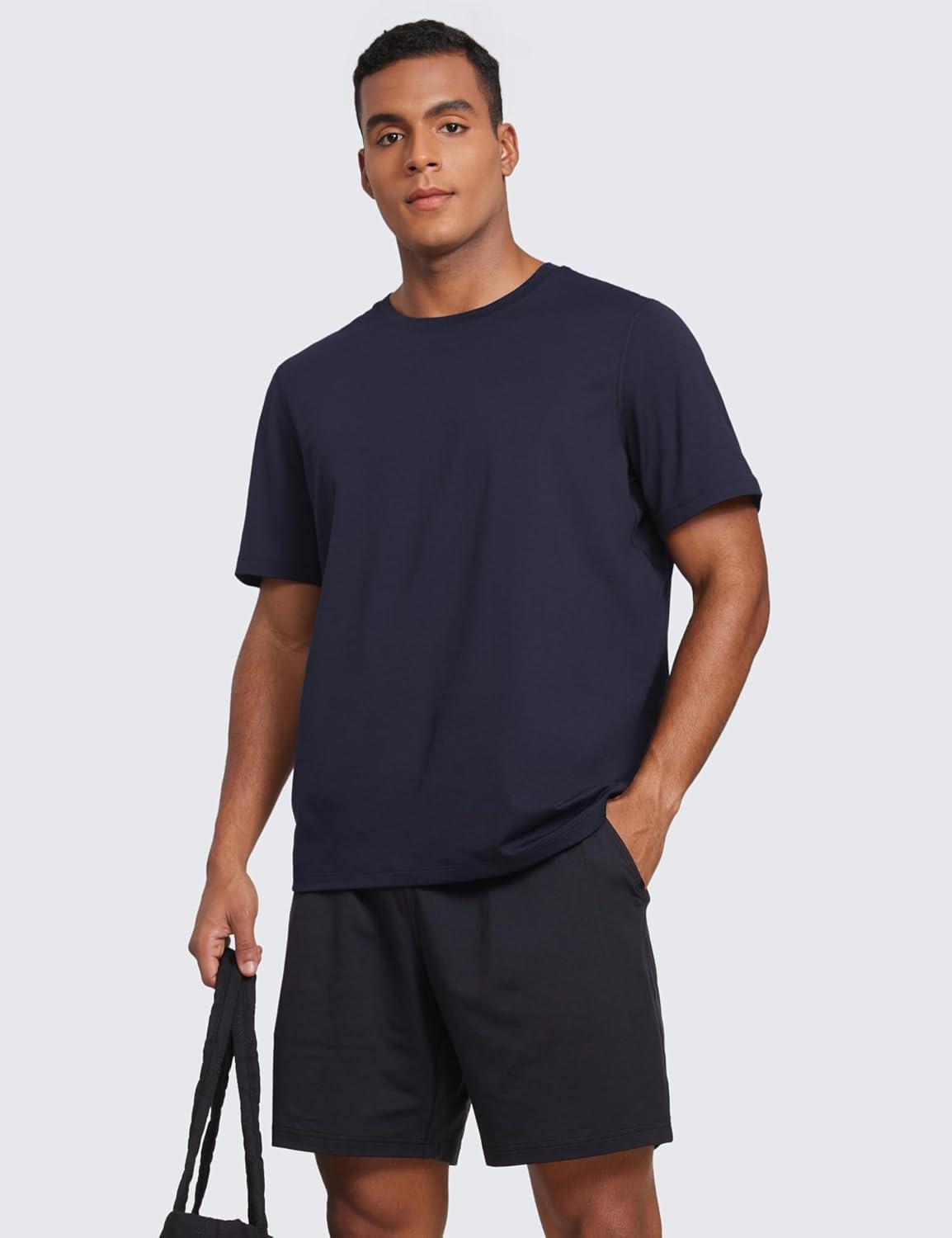 CRZ YOGA Cloud Jersey Midweight Shirts for Men – Short Sleeve Soft Breathable Lounge Casual Athletic Basic T-Shirts Tops(Navy)
