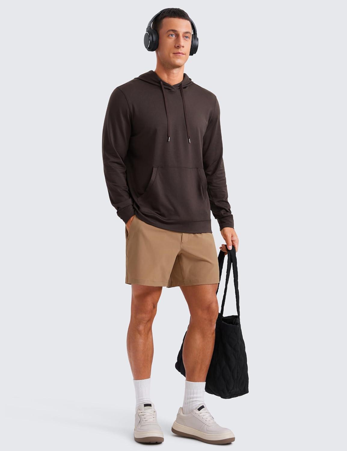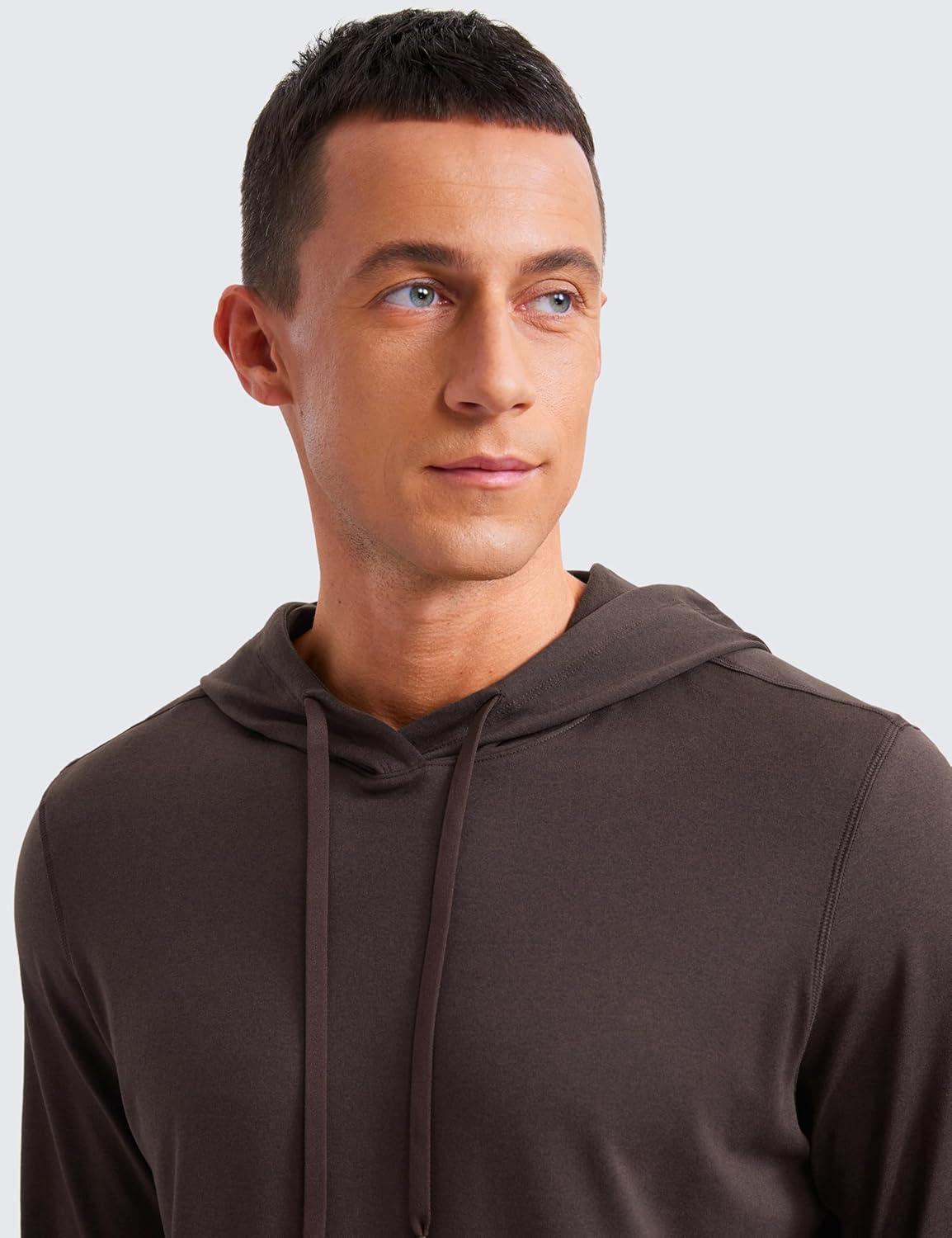CRZ YOGA Cloud Jersey Pullover Hoodies for Men – Casual Workout Long Sleeve Basic Hooded Sweatshirts with Pocket(Hot Fudge Brown)