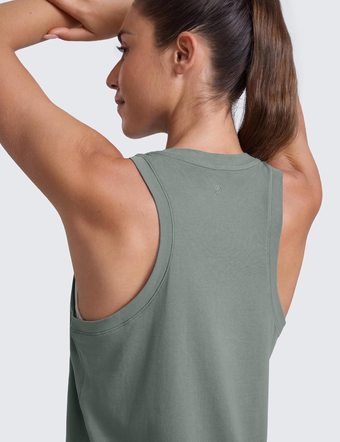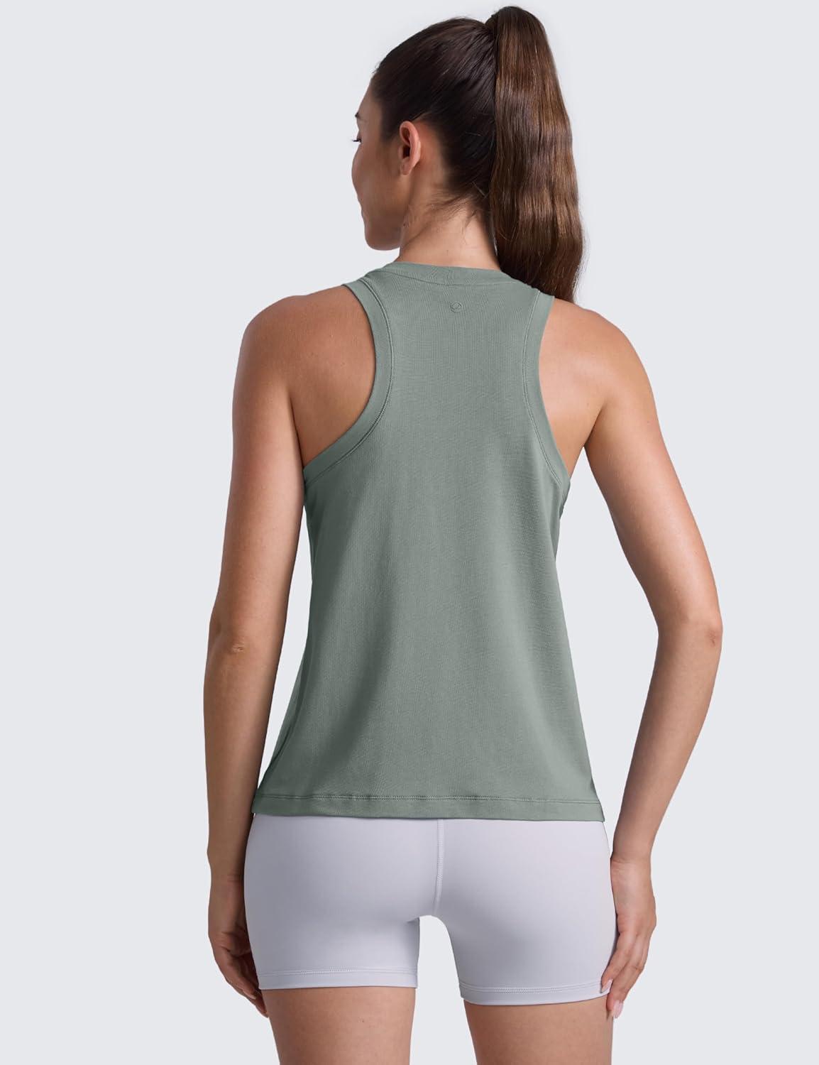 CRZ YOGA Cotton-Blend Workout Racerback Tank for Women Athletic High Neck Breathable Tops Casual Basic Sleeveless Shirts(Grey Sage)