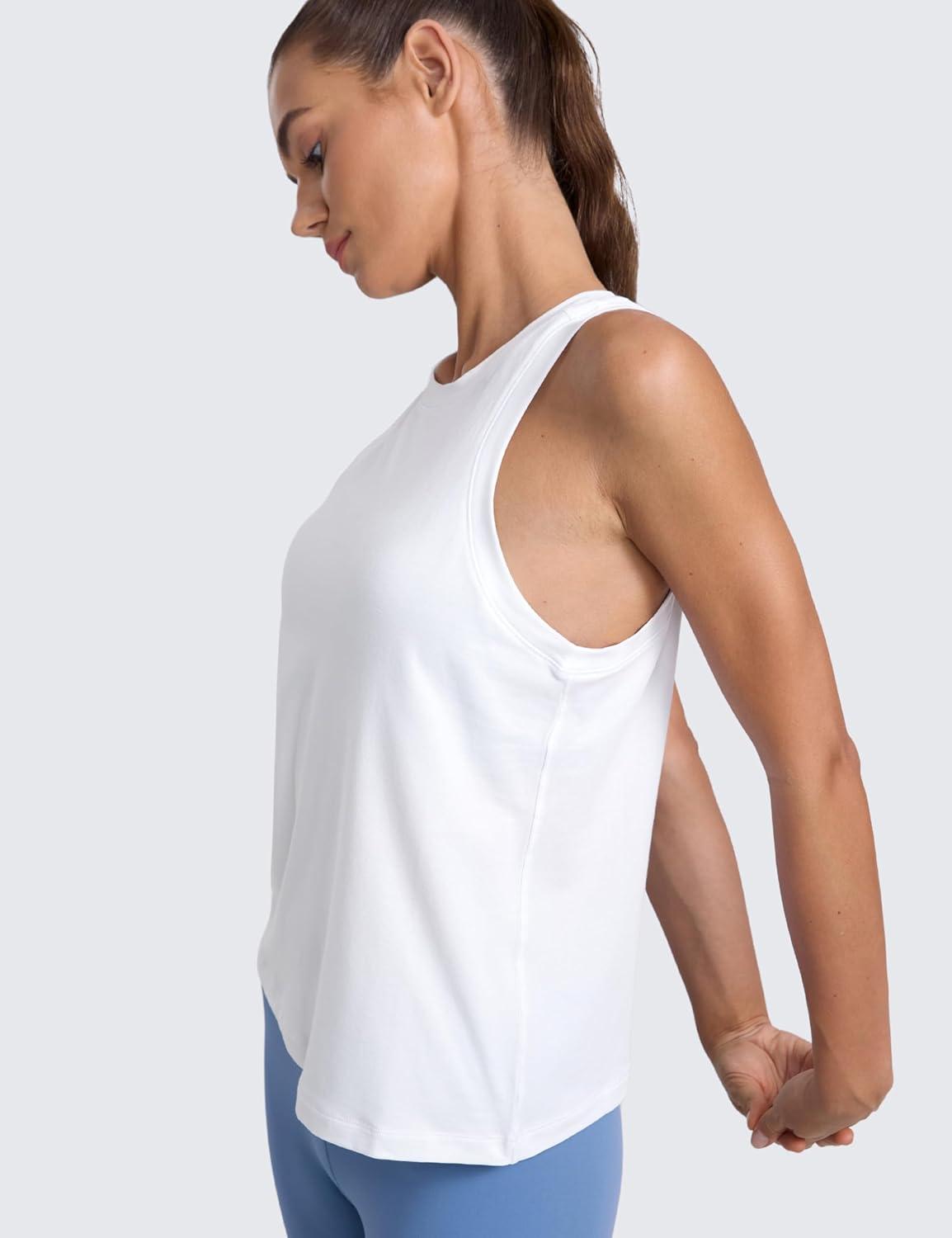 CRZ YOGA Cotton-Blend Workout Racerback Tank for Women Athletic High Neck Breathable Tops Casual Basic Sleeveless Shirts(White)