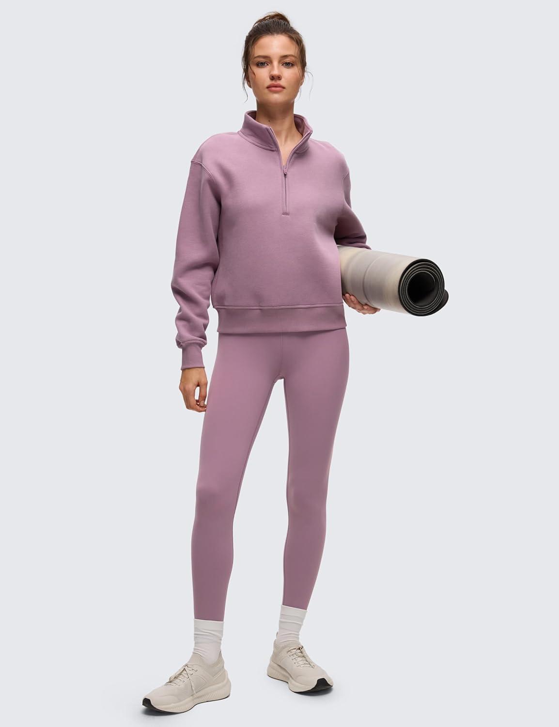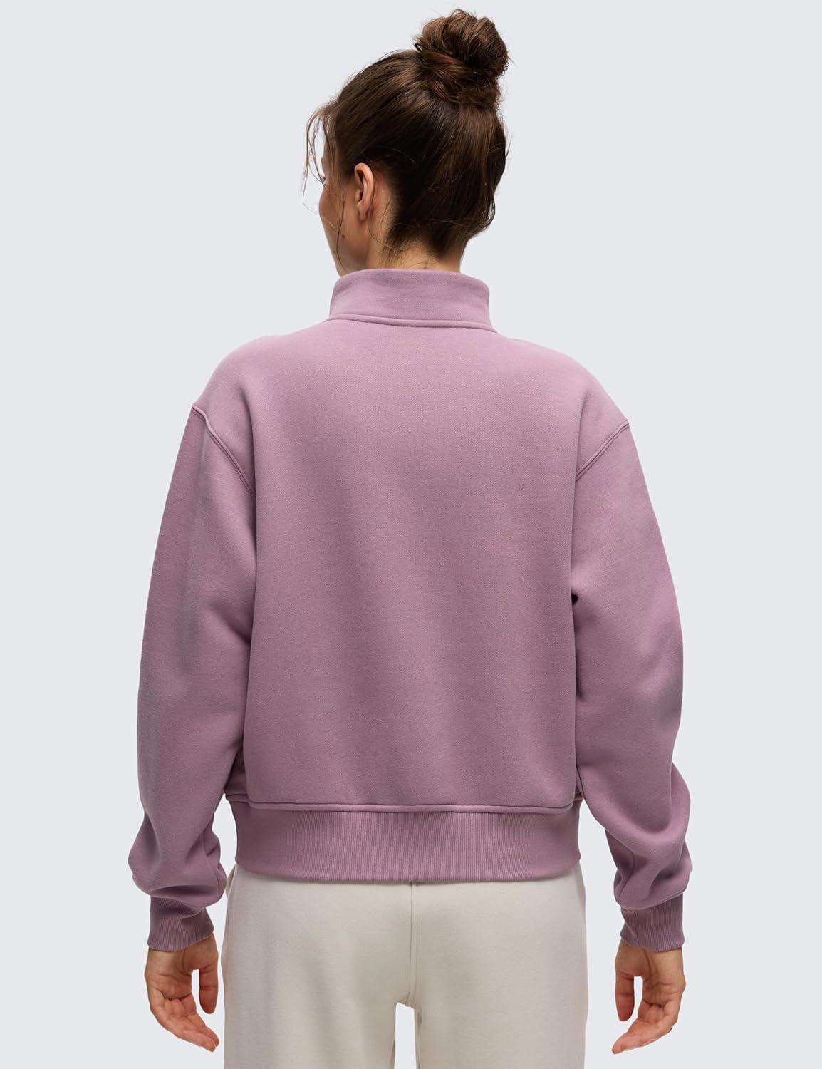 CRZ YOGA Cotton Fleece Lined Half Zip Sweatshirt for Women – Pullover Funnel Neck Workout Casual Sweat Shirts with Pocket(Light Lavender)