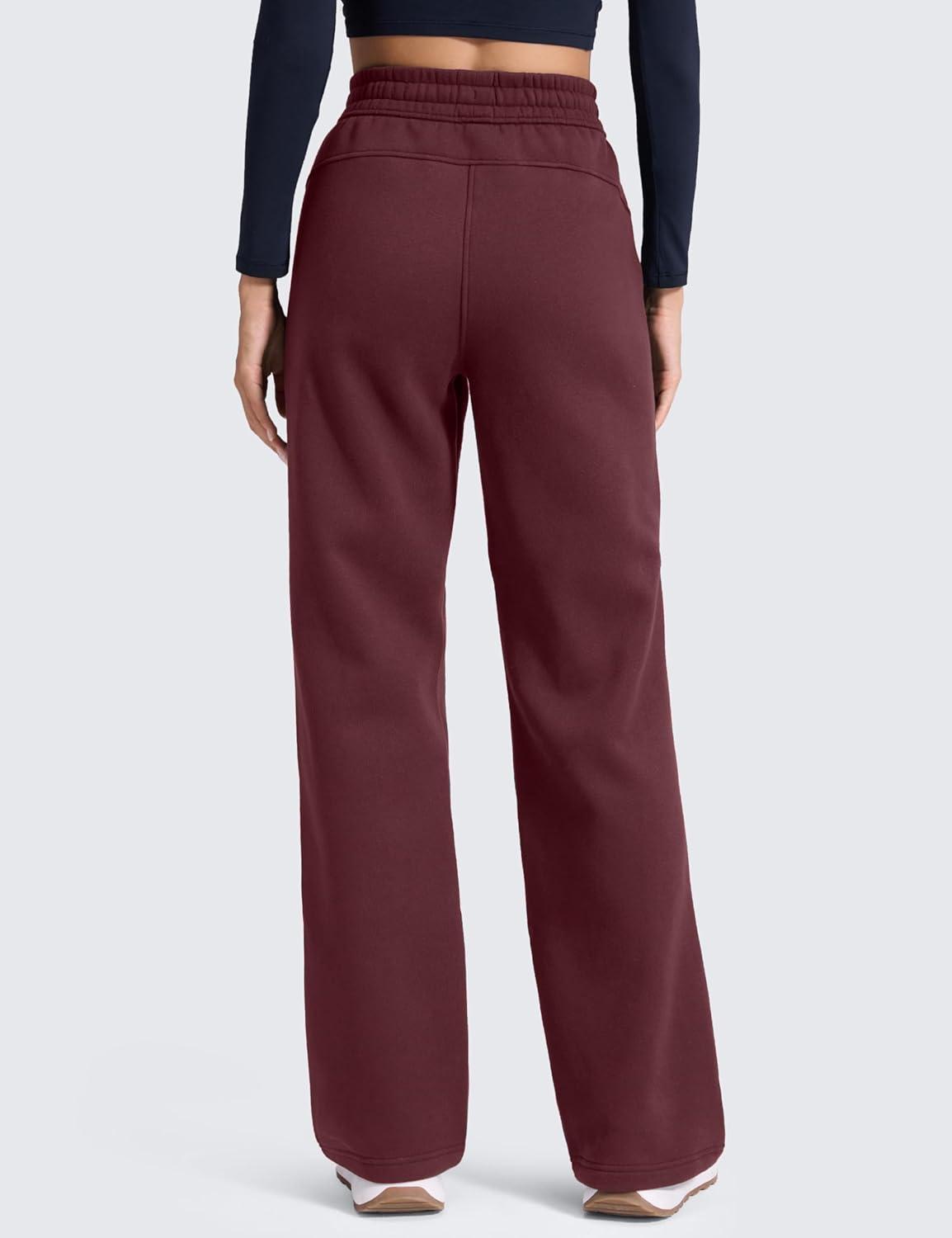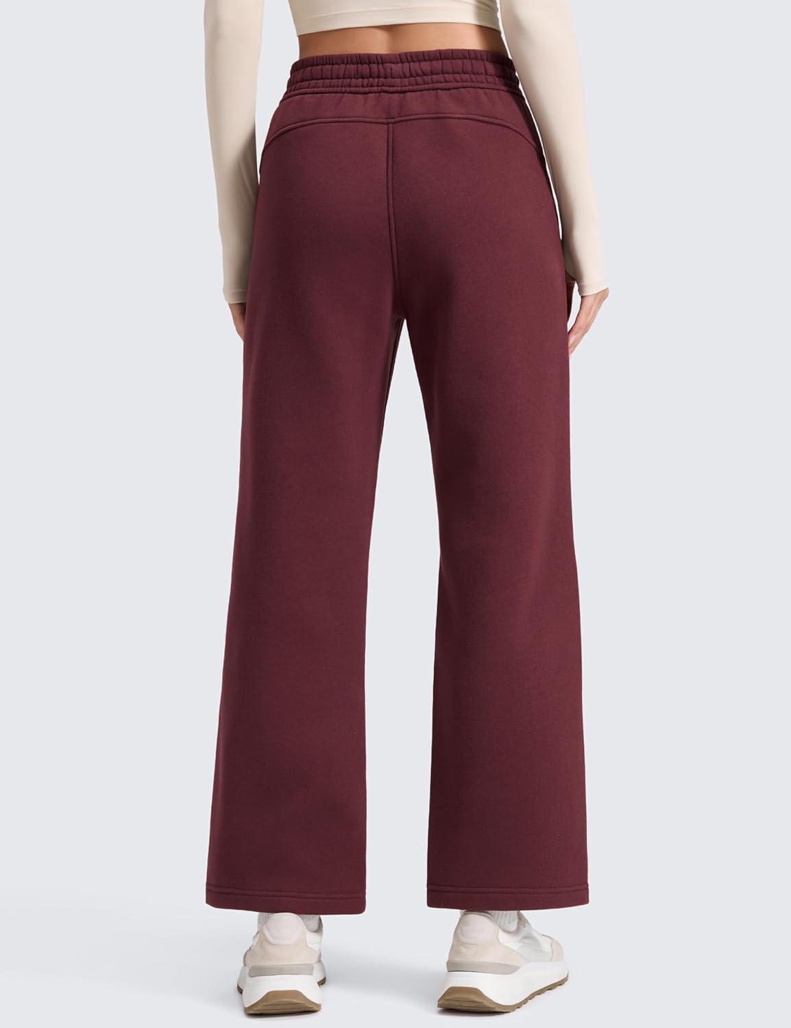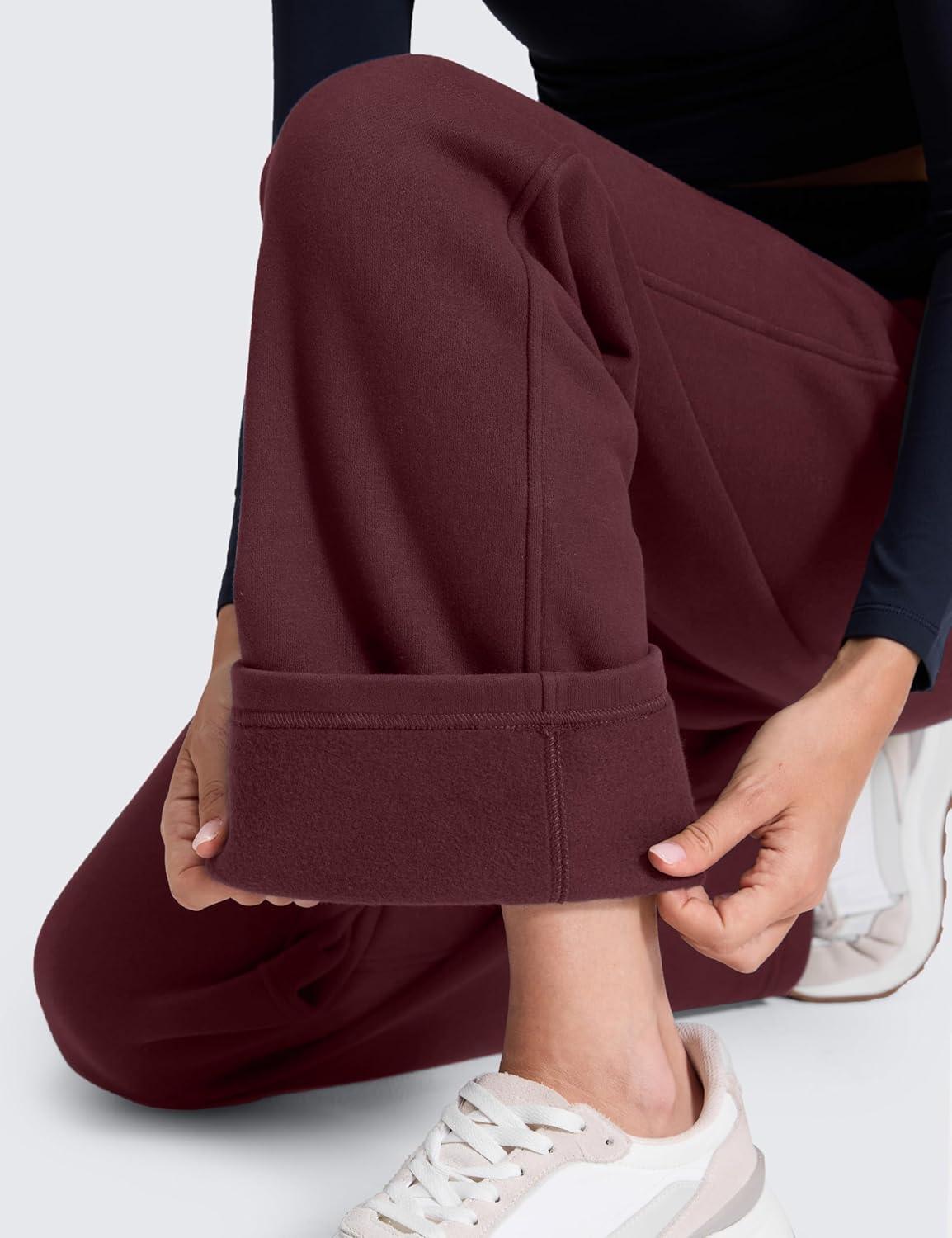 CRZ YOGA Cotton Fleece Lined Sweatpants Women 28″/30″/32″ – Straight Leg Casual Lounge Pants with Pockets Winter Warm(Dark Red)
