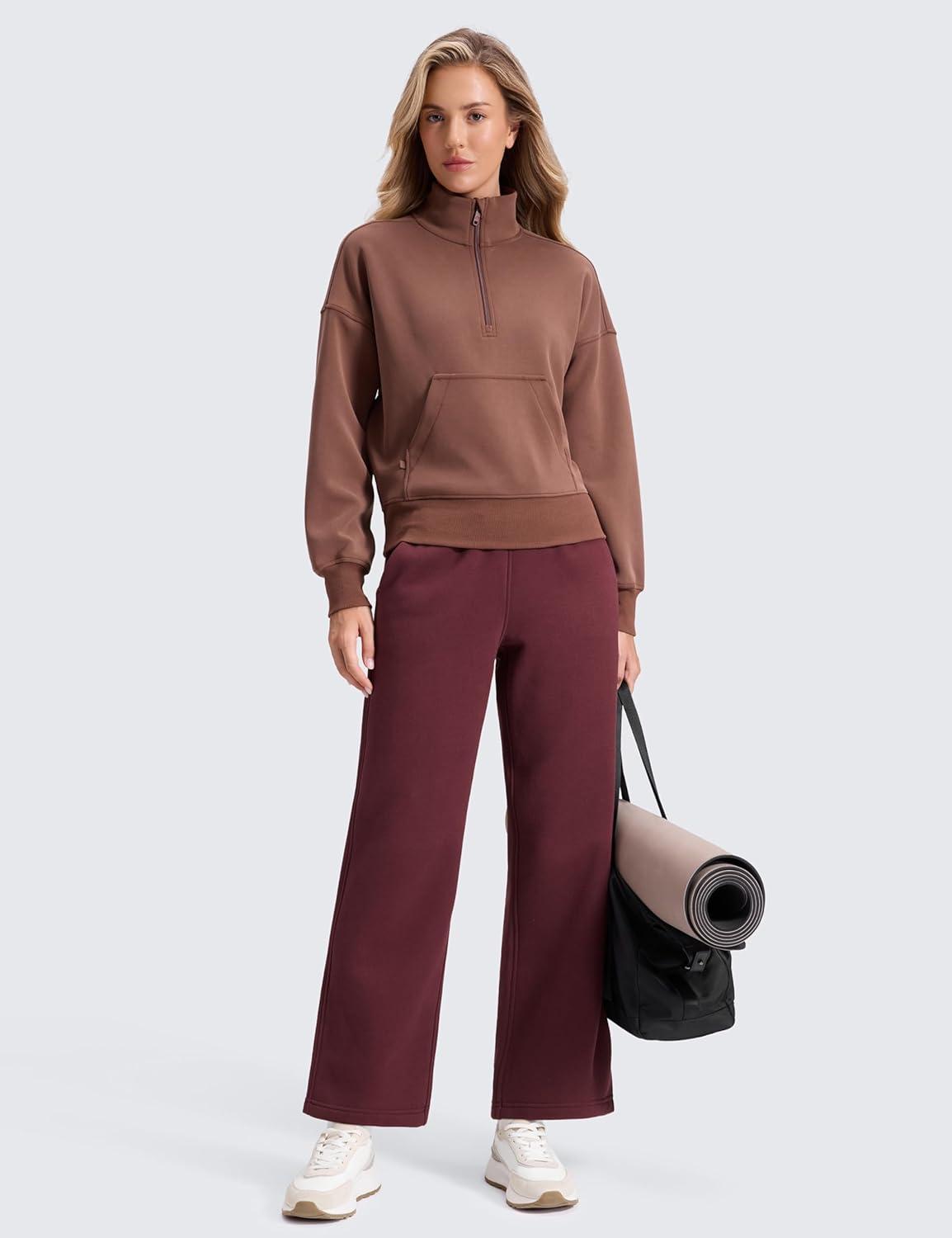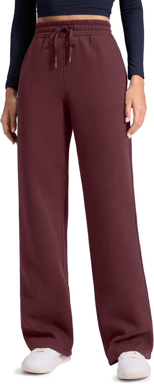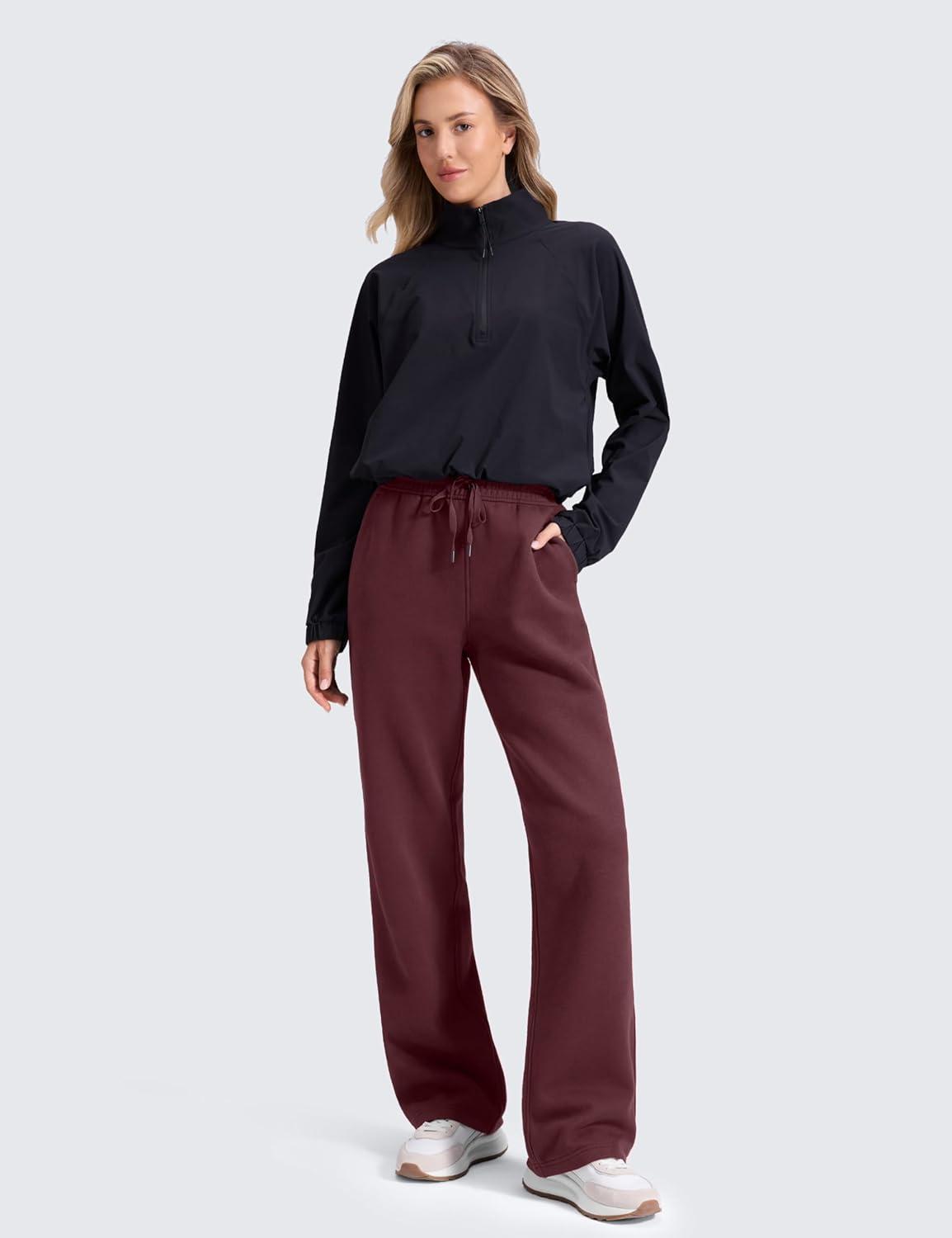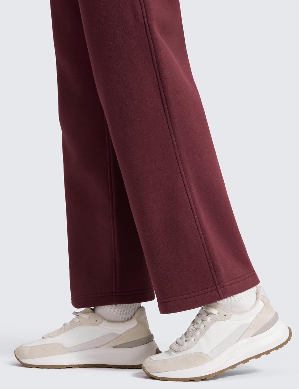 CRZ YOGA Cotton Fleece Lined Sweatpants Women 28″/30″/32″ – Straight Leg Casual Lounge Pants with Pockets Winter Warm(Dark Red)
