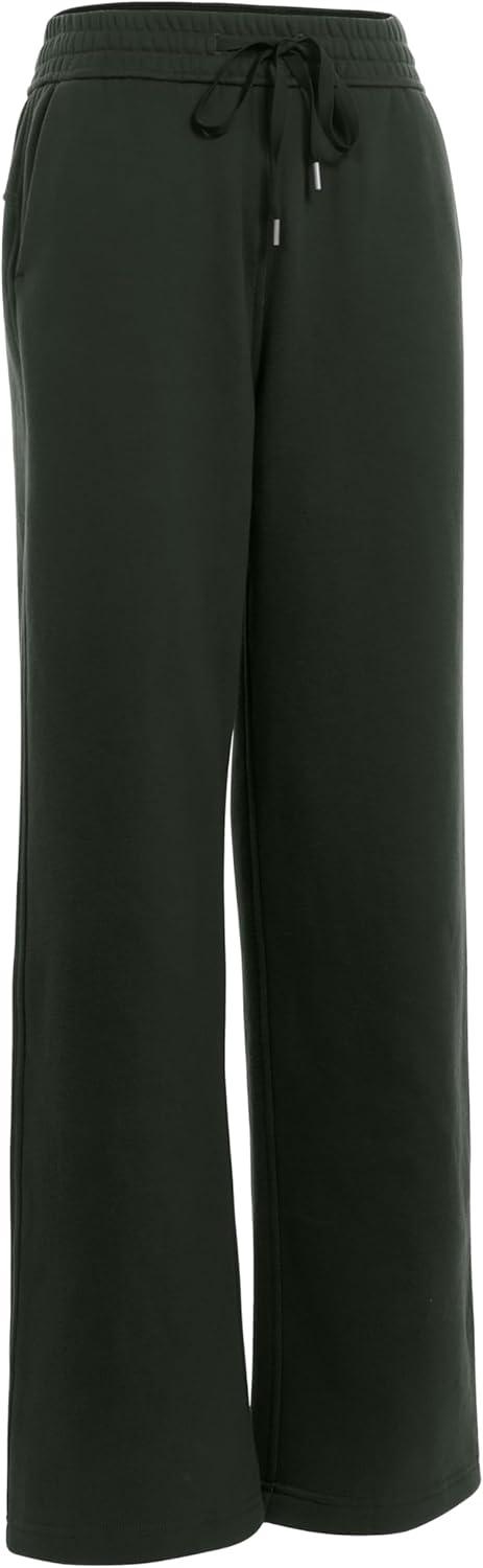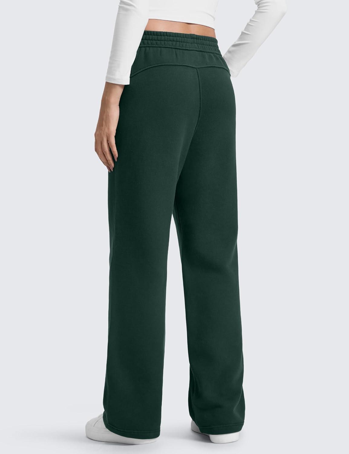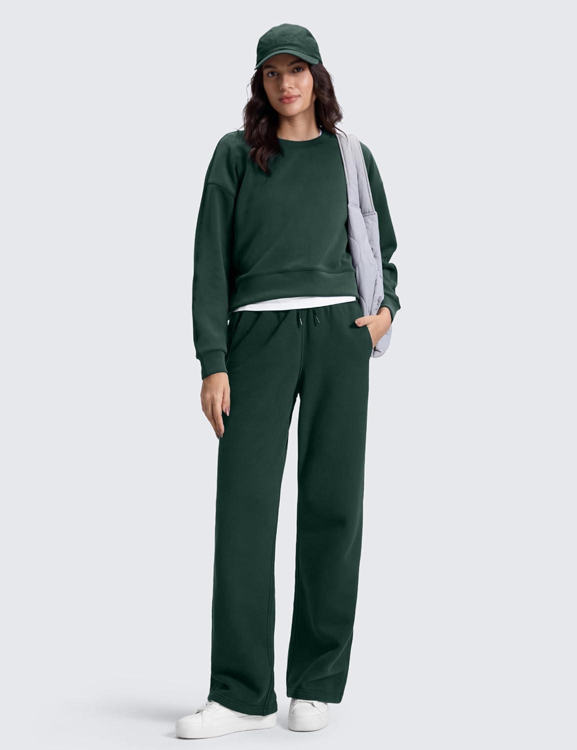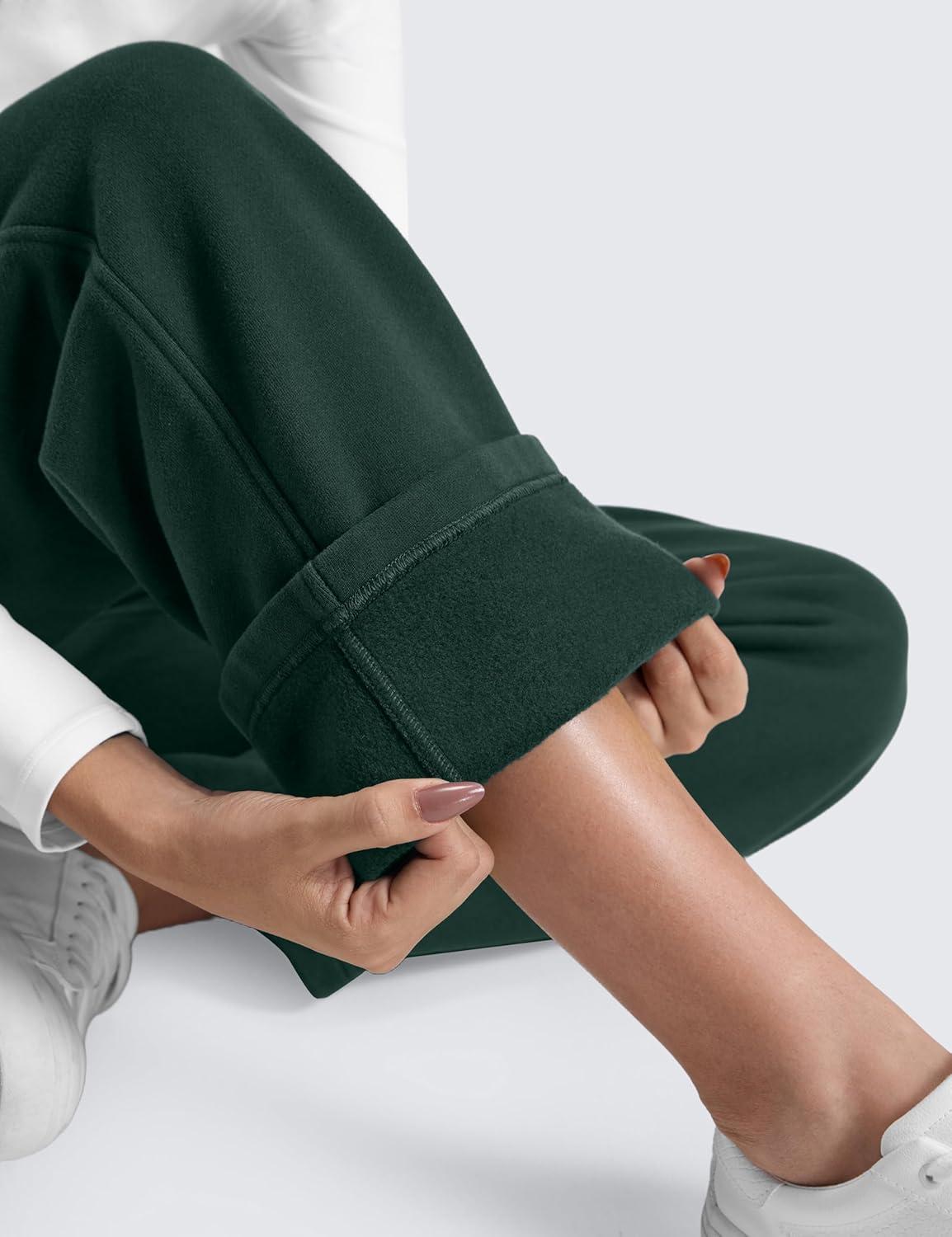CRZ YOGA Cotton Fleece Lined Sweatpants Women 28″/30″/32″ – Straight Leg Casual Lounge Pants with Pockets Winter Warm(Legend Green)
