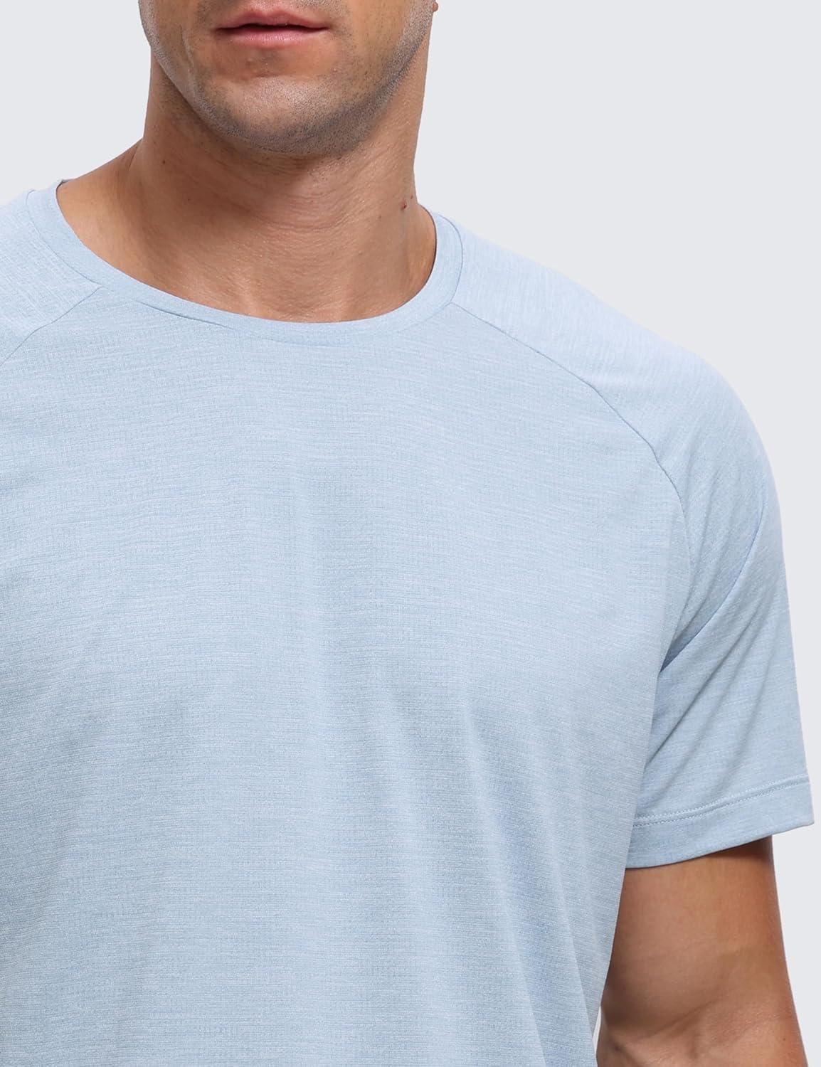 CRZ YOGA Crewneck Workout Shirts for Men – Quick Dry Running Athletic T-Shirts Lightweight Basic Tops(Chambray Blue Heather)