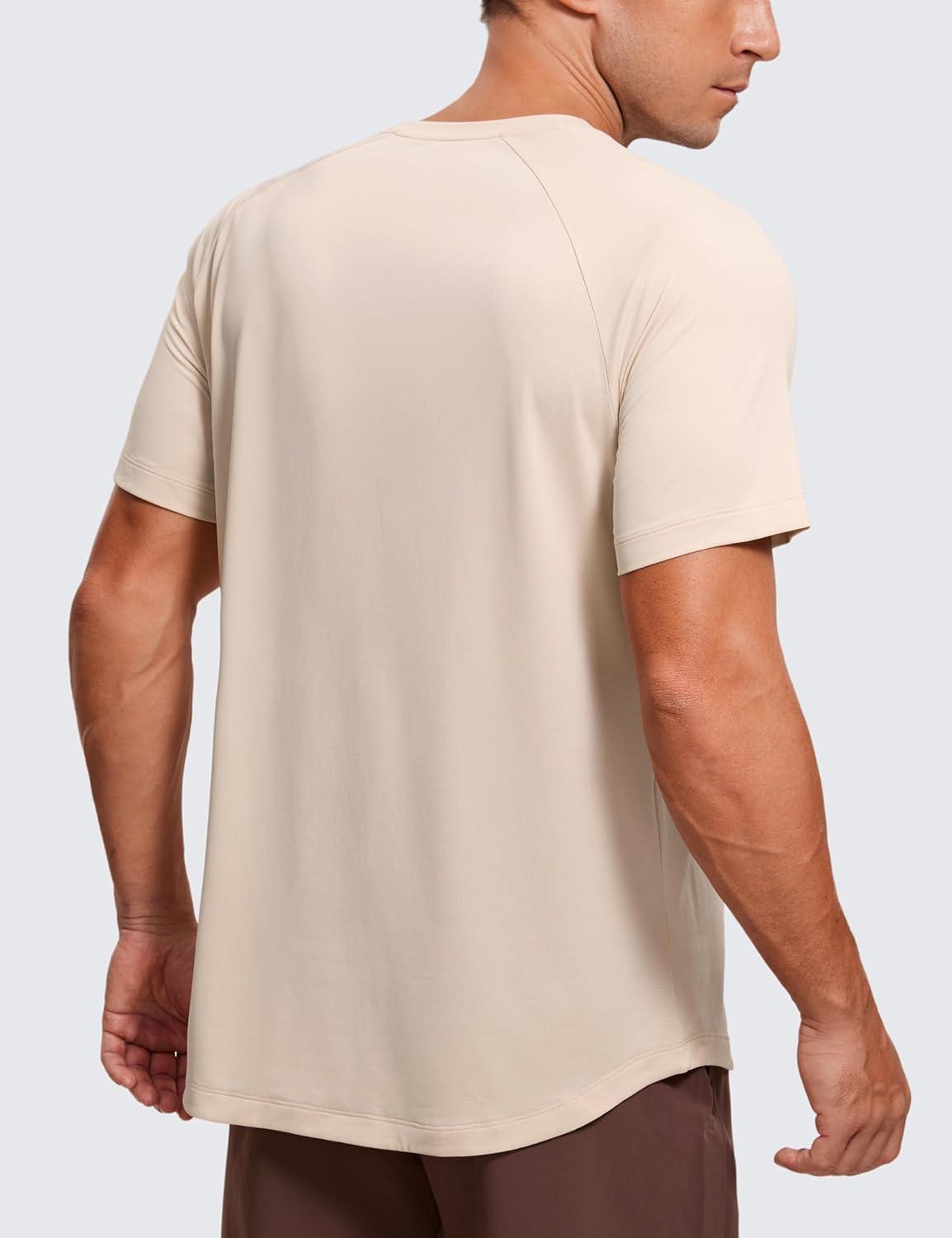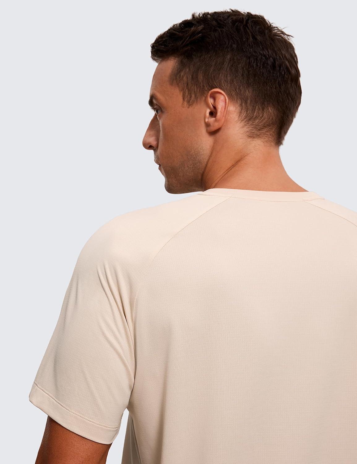 CRZ YOGA Crewneck Workout Shirts for Men – Quick Dry Running Athletic T-Shirts Lightweight Basic Tops(White Opal)