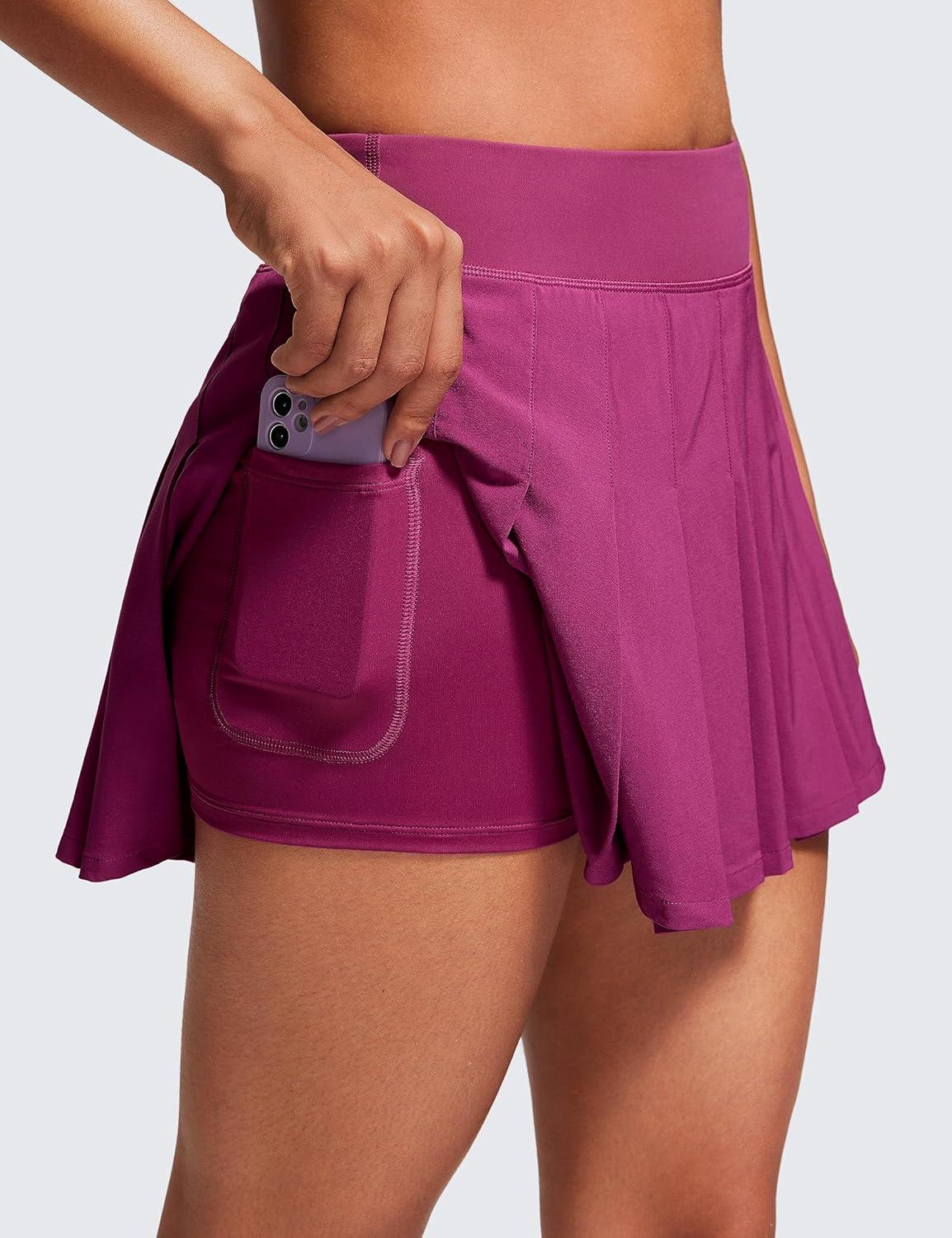 CRZ YOGA Cute Pleated Skirts for Women High Waisted Tennis Golf Skorts with Pockets Casual Athletic Workout Skater(Magenta Purple)