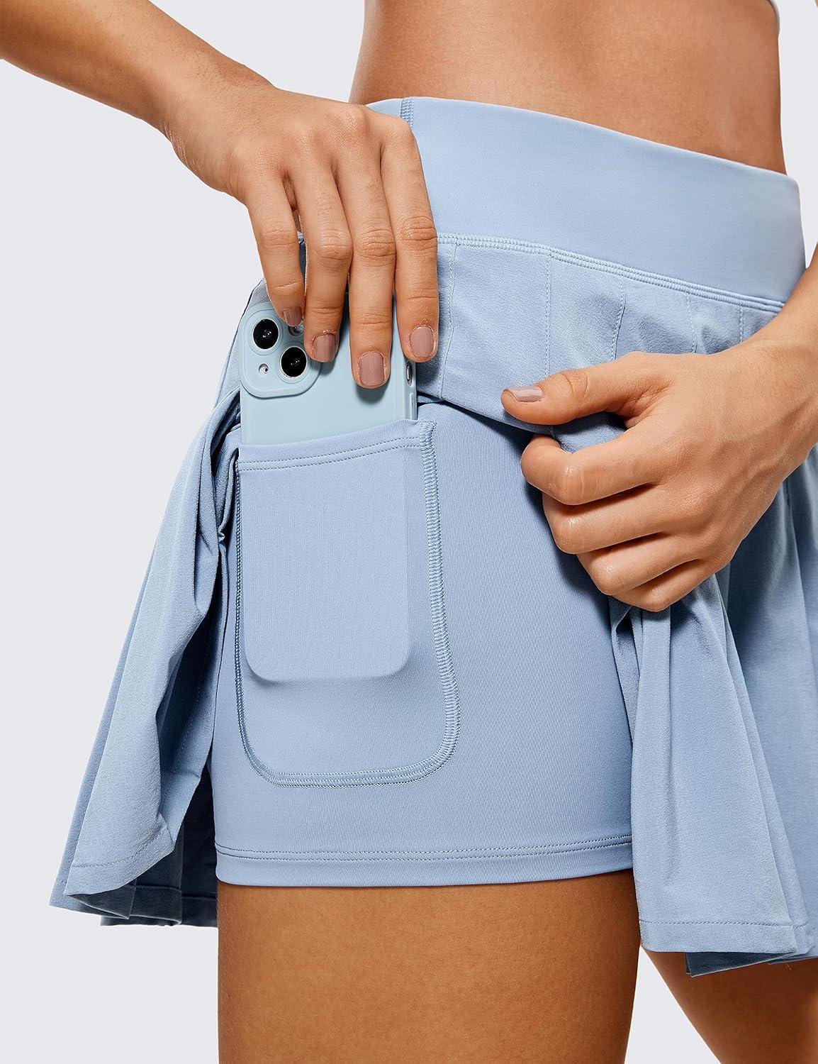 CRZ YOGA Cute Pleated Skirts for Women High Waisted Tennis Golf Skorts with Pockets Casual Athletic Workout Skater(The Breeze Blue)