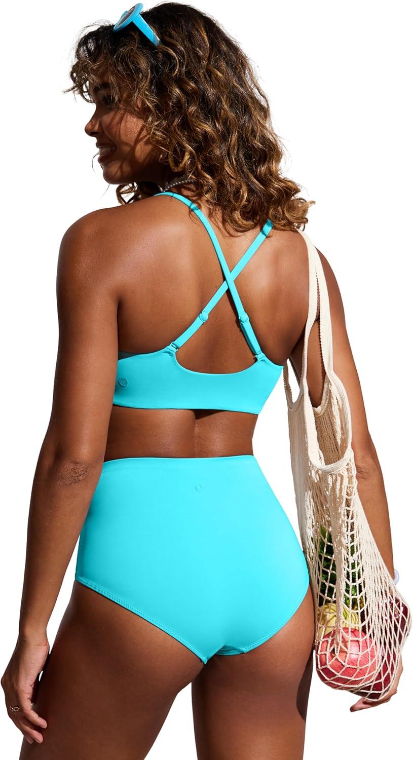 CRZ YOGA D-DD Scoop Neck Bikini Tops for Women – Padded Adjustable Spaghetti Straps Bathing Swimsuit Sports Bra(Turquoise)