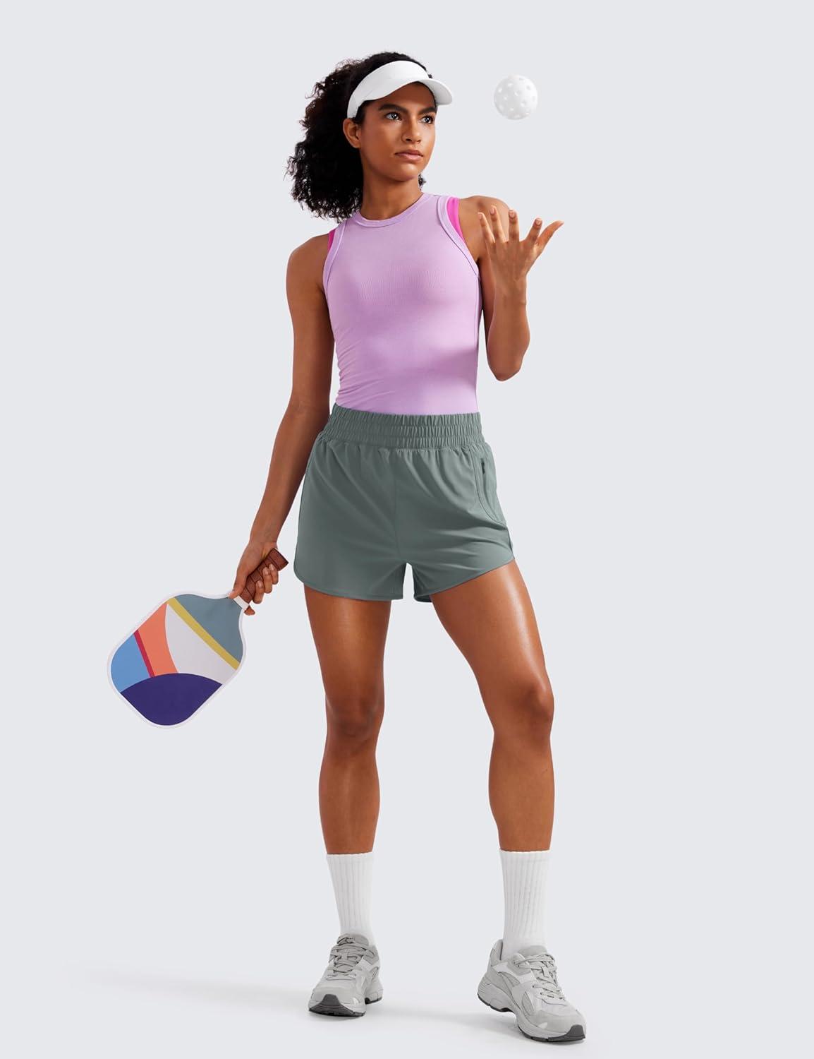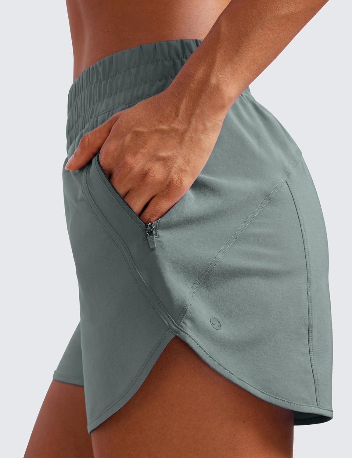 CRZ YOGA Dolphin Athletic Shorts for Women 3″ – High Waisted Quick Dry for Running Workout Gym Track with Zip Pocket(Grey Sage)
