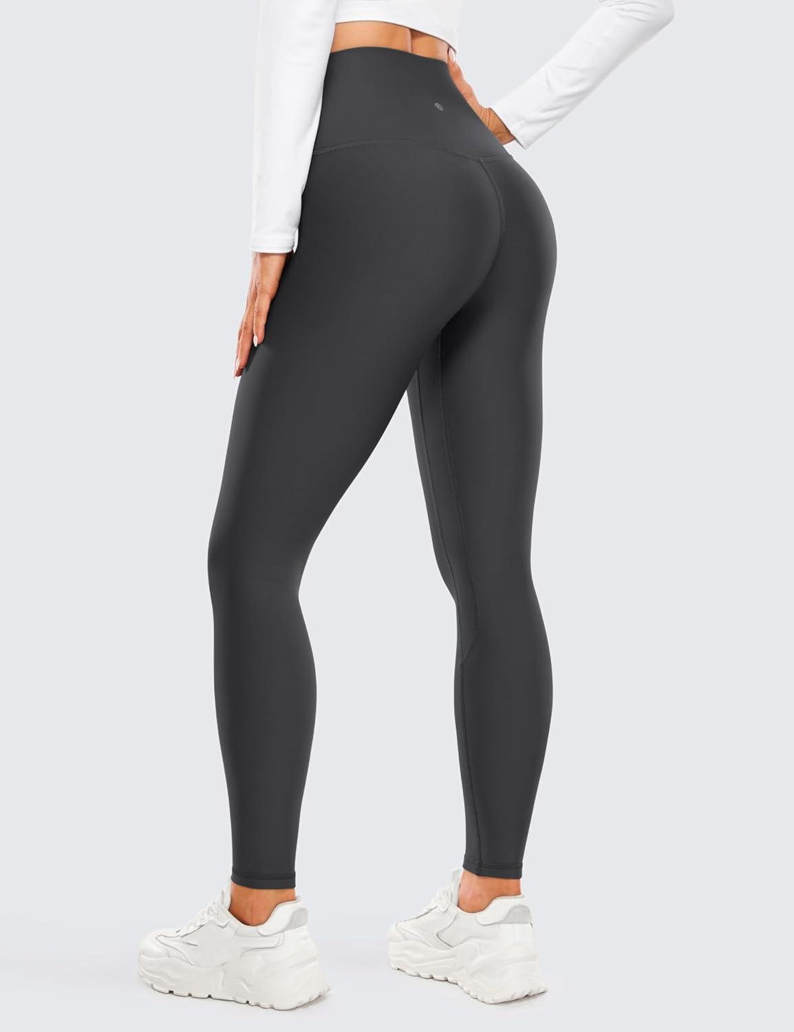 CRZ YOGA Fleece Lined Leggings 28” – Thermal Casual Lounge Workout Yoga Womens Full Length Pants Winter Warm(Mysterious Grey)