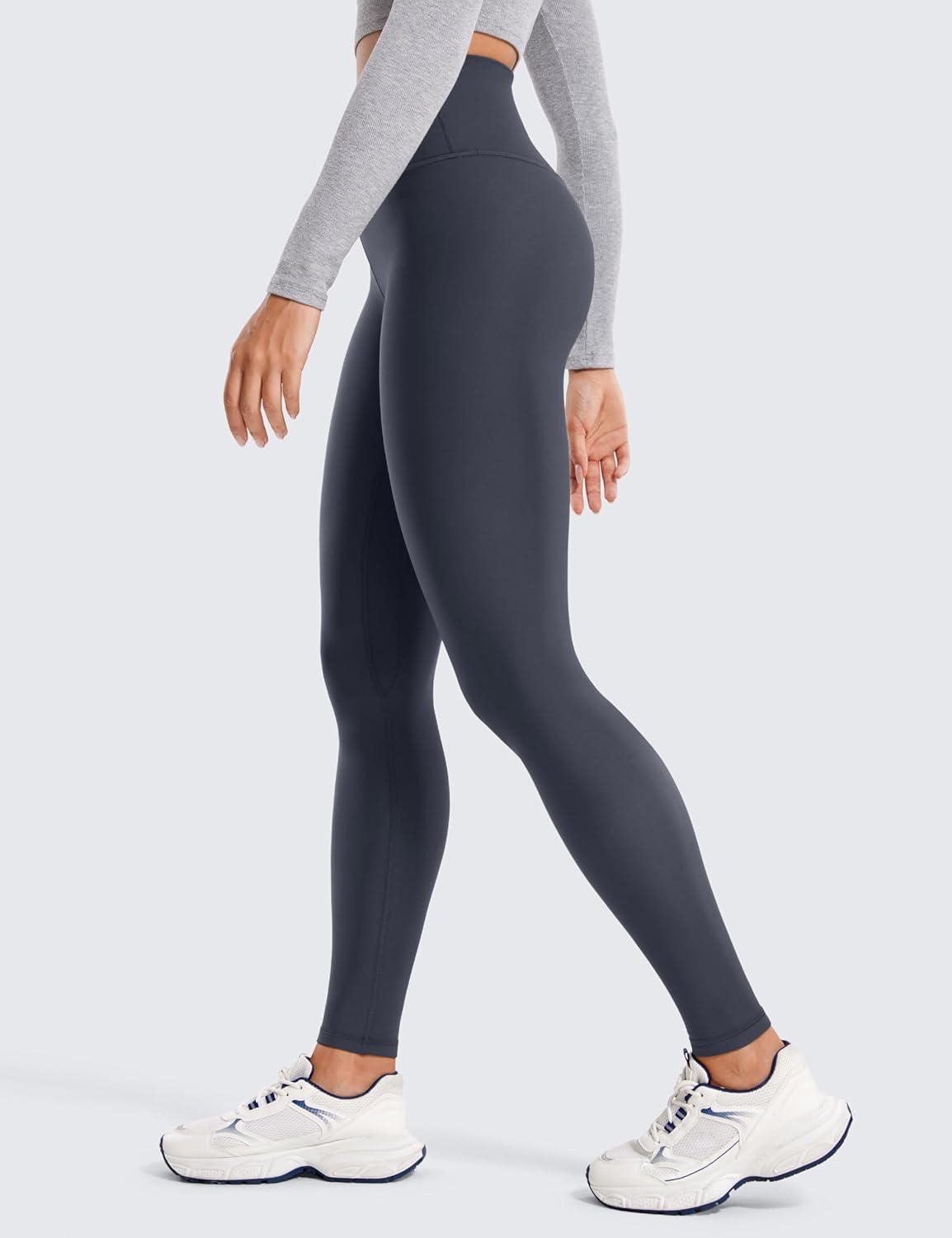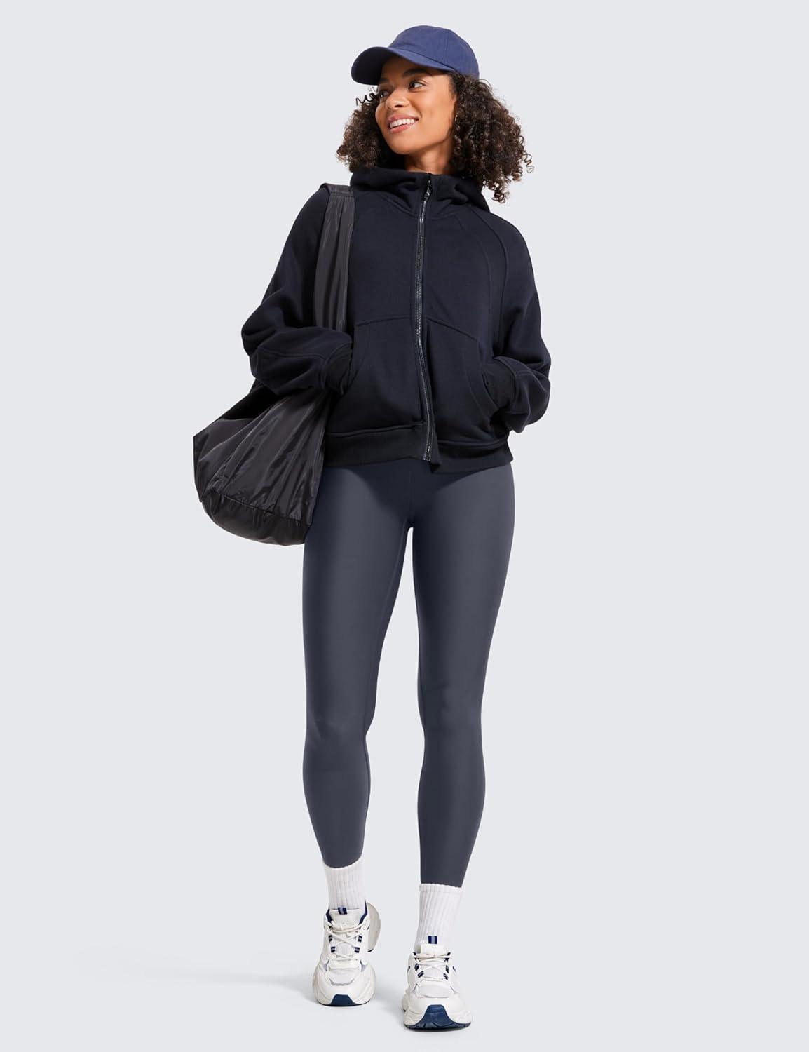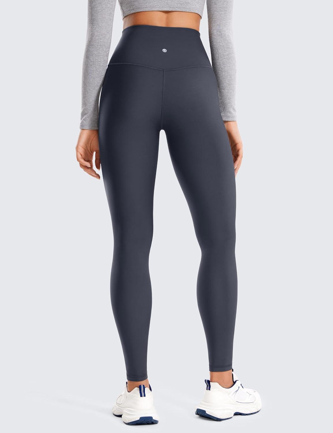CRZ YOGA Fleece Lined Leggings 28” – Thermal Casual Lounge Workout Yoga Womens Full Length Pants Winter Warm(Navy)