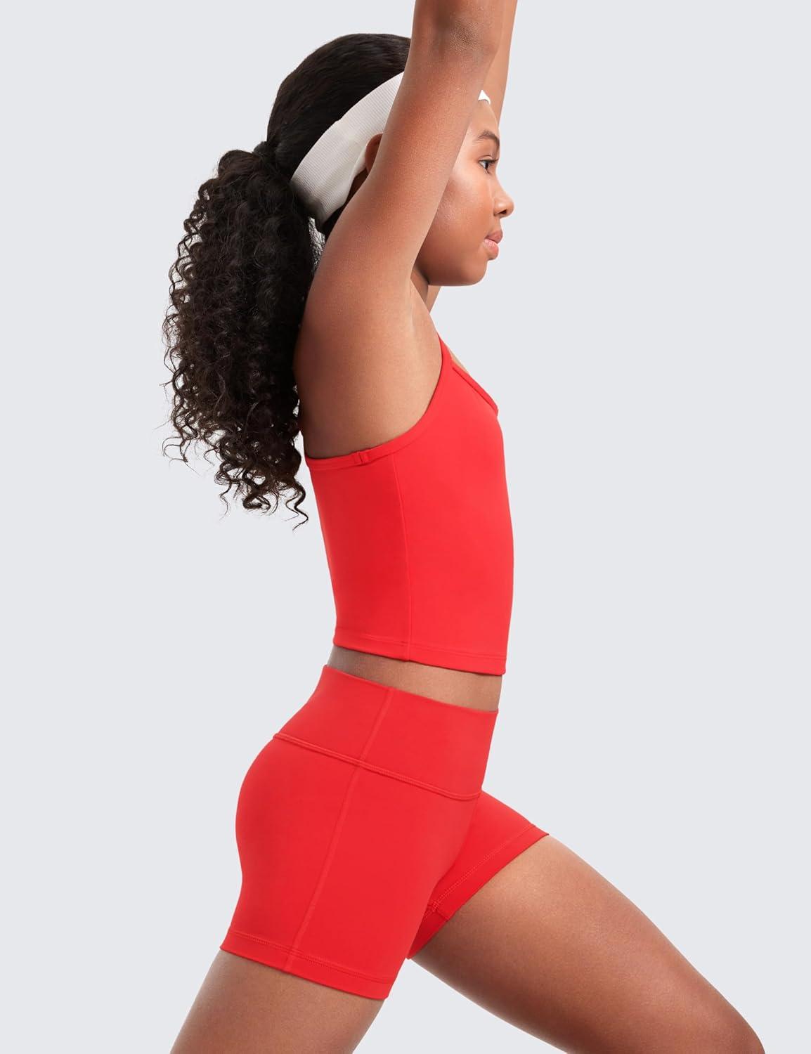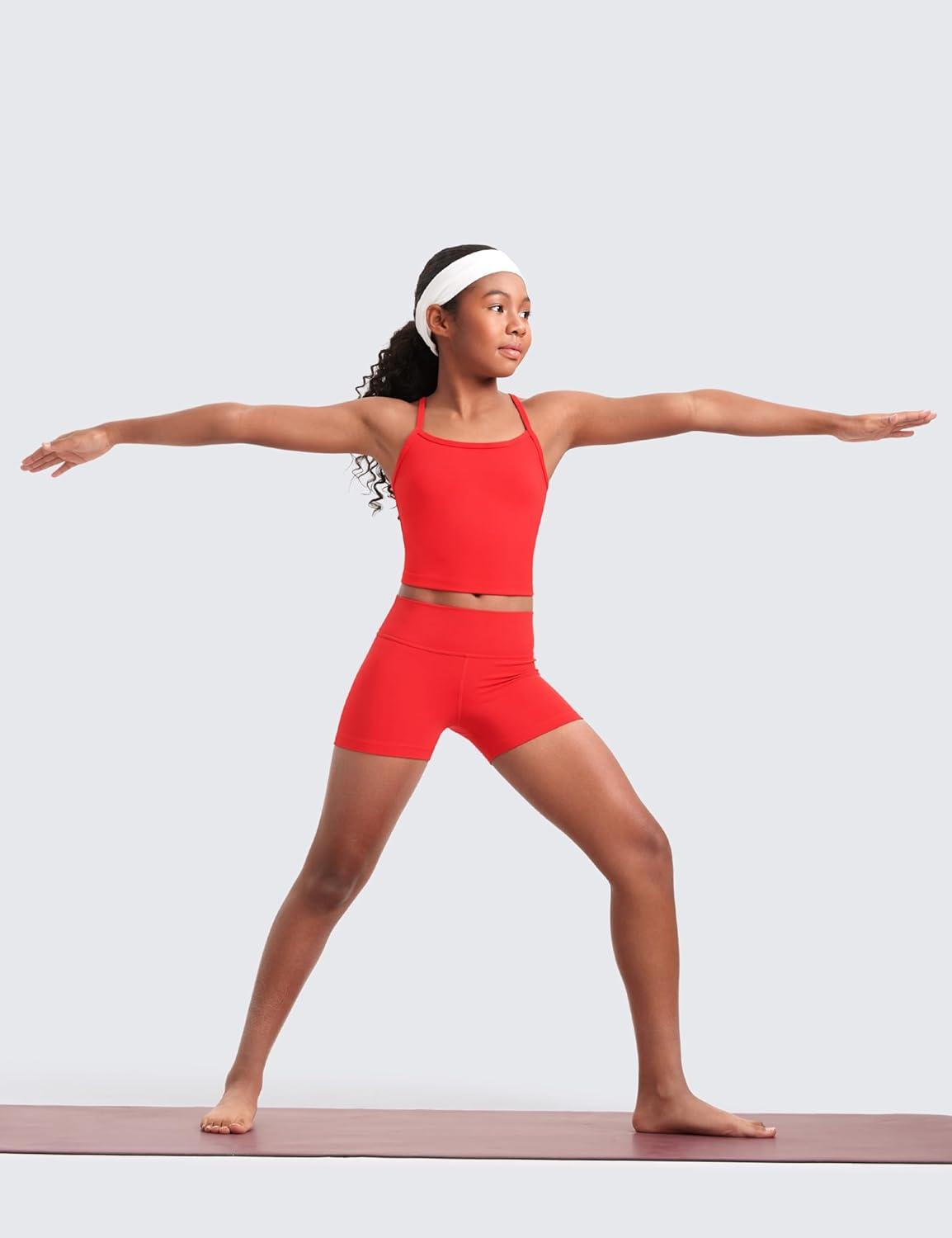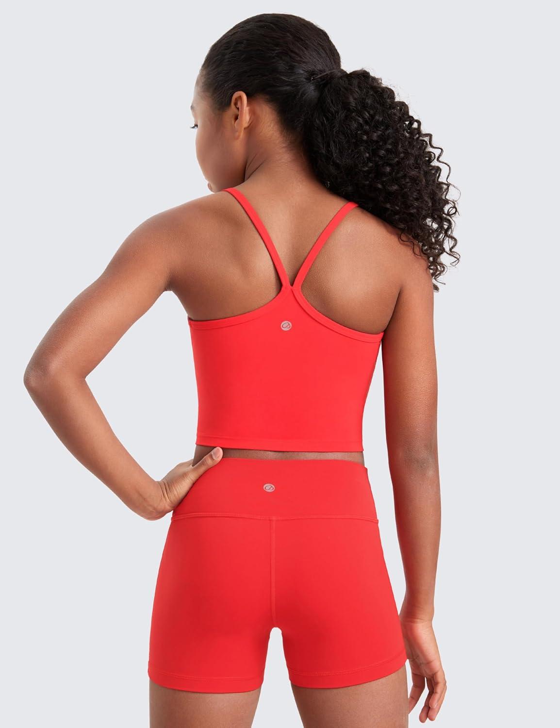 CRZ YOGA Girls Butterluxe Double Lined Camisole Tank Tops Crop – Dance Yoga Athletic Casual Spaghetti Y Back Kids Teen(Deep Red)