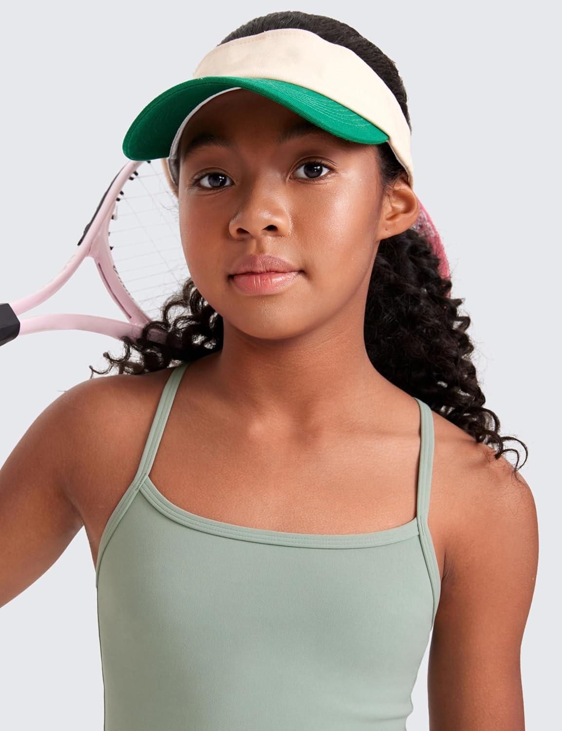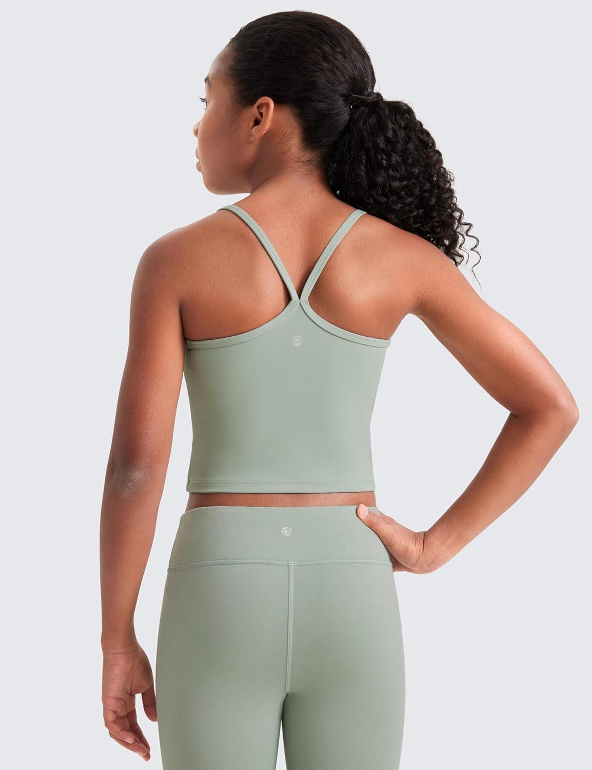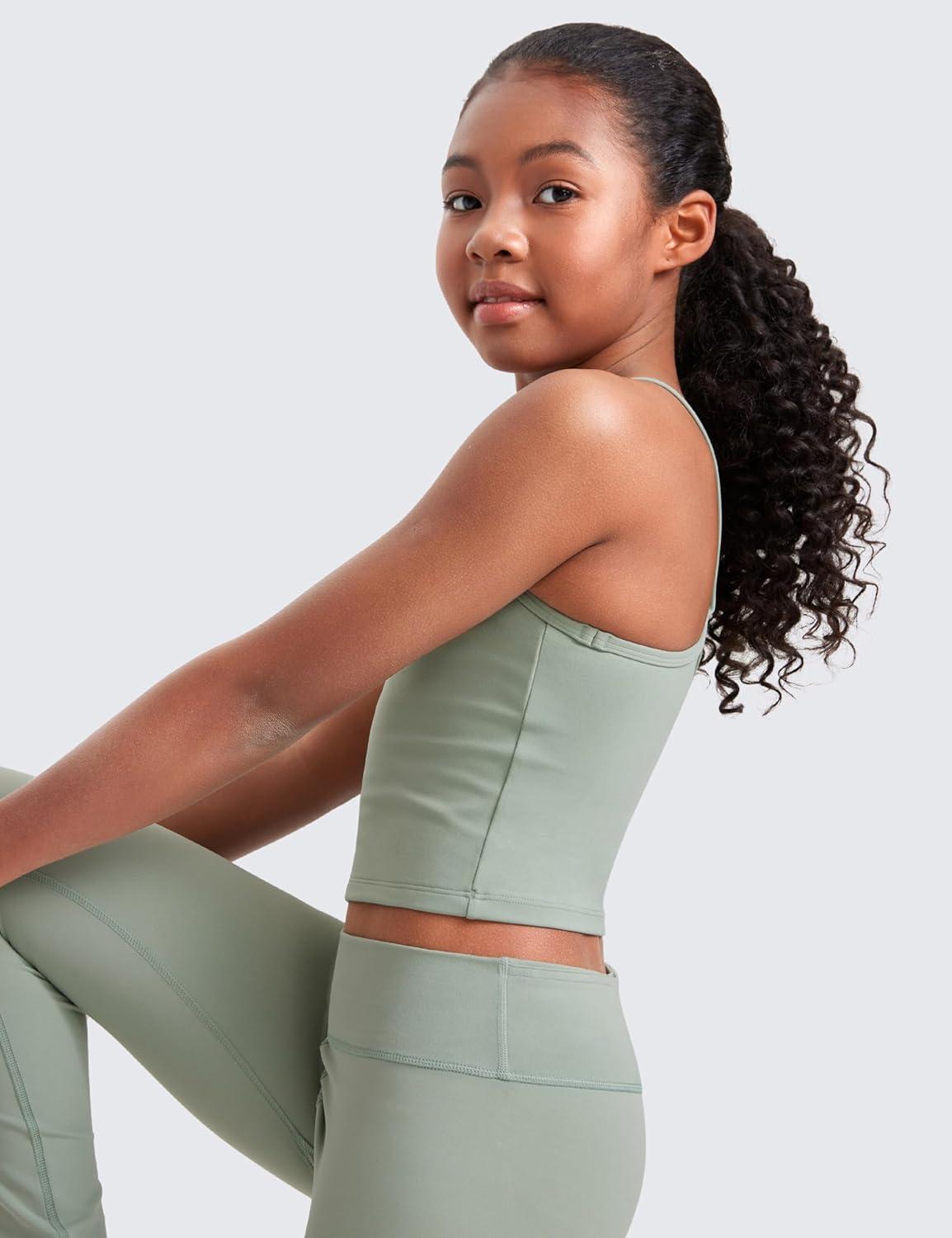 CRZ YOGA Girls Butterluxe Double Lined Camisole Tank Tops Crop – Dance Yoga Athletic Casual Spaghetti Y Back Kids Teen(Green Palm Court)