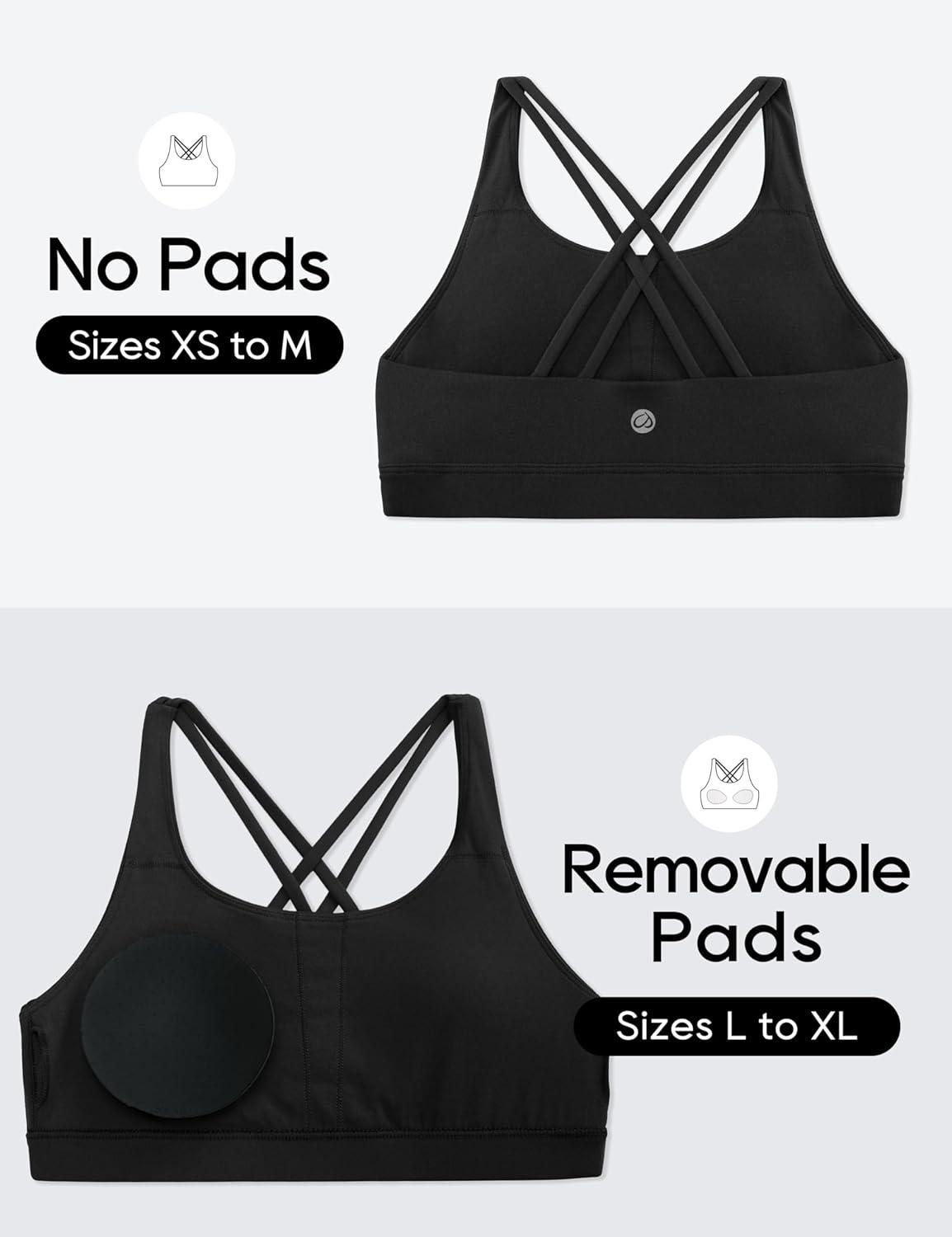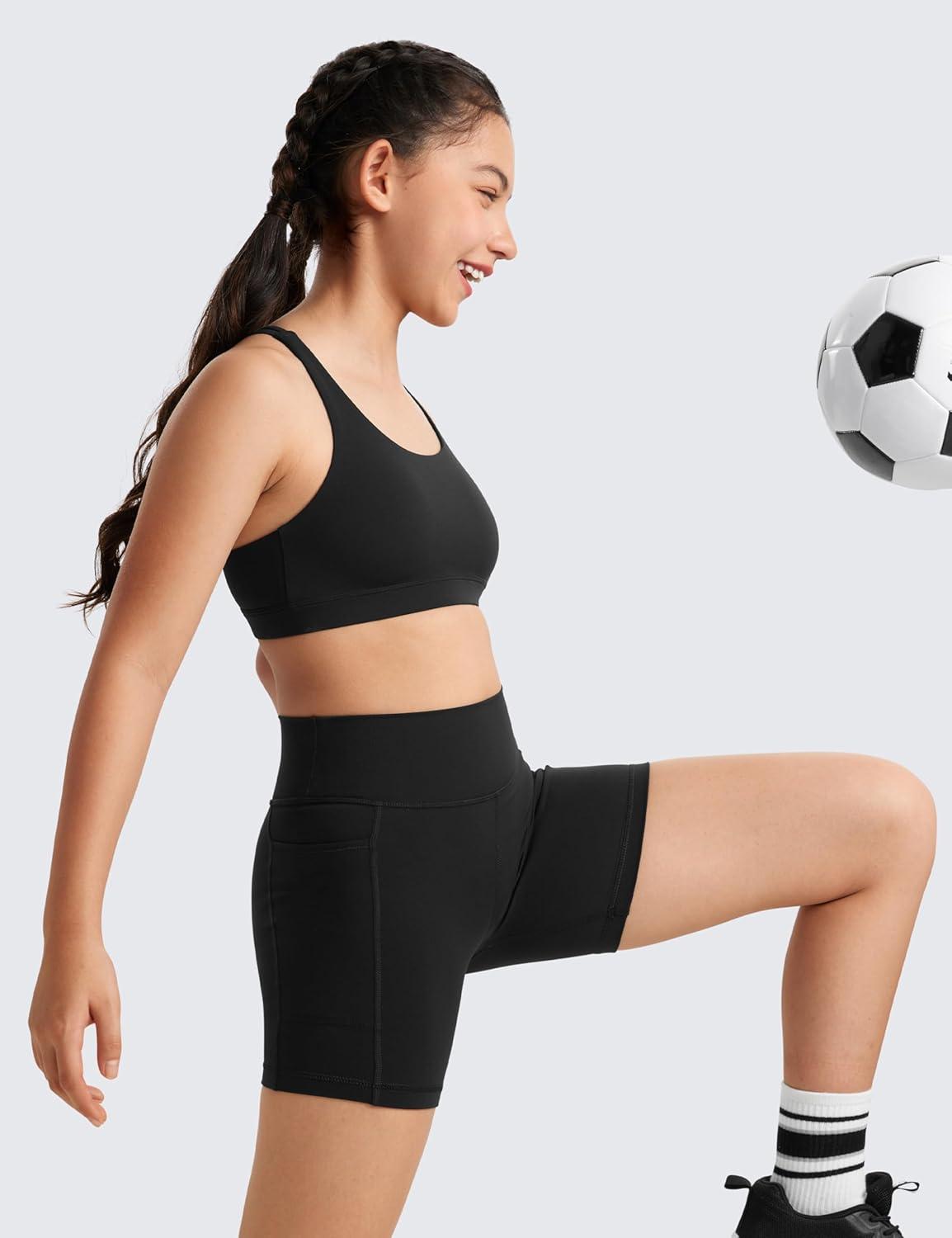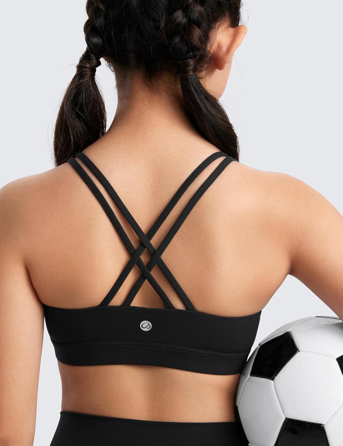 CRZ YOGA Girls Butterluxe Strappy Back Sports Bra – Yoga Athletic Casual Tops Scoop Neck Padded Crop Kids Teen(Black)