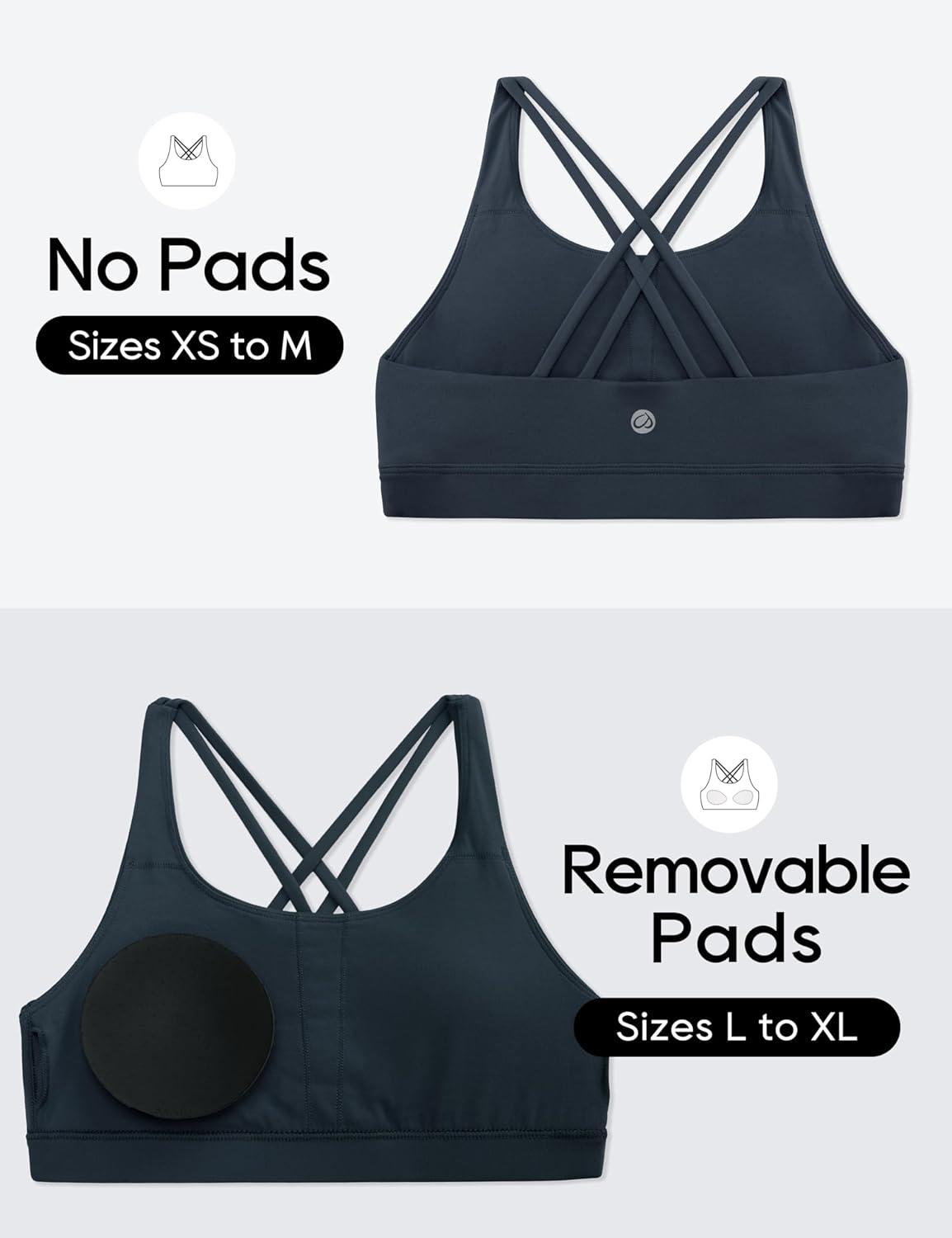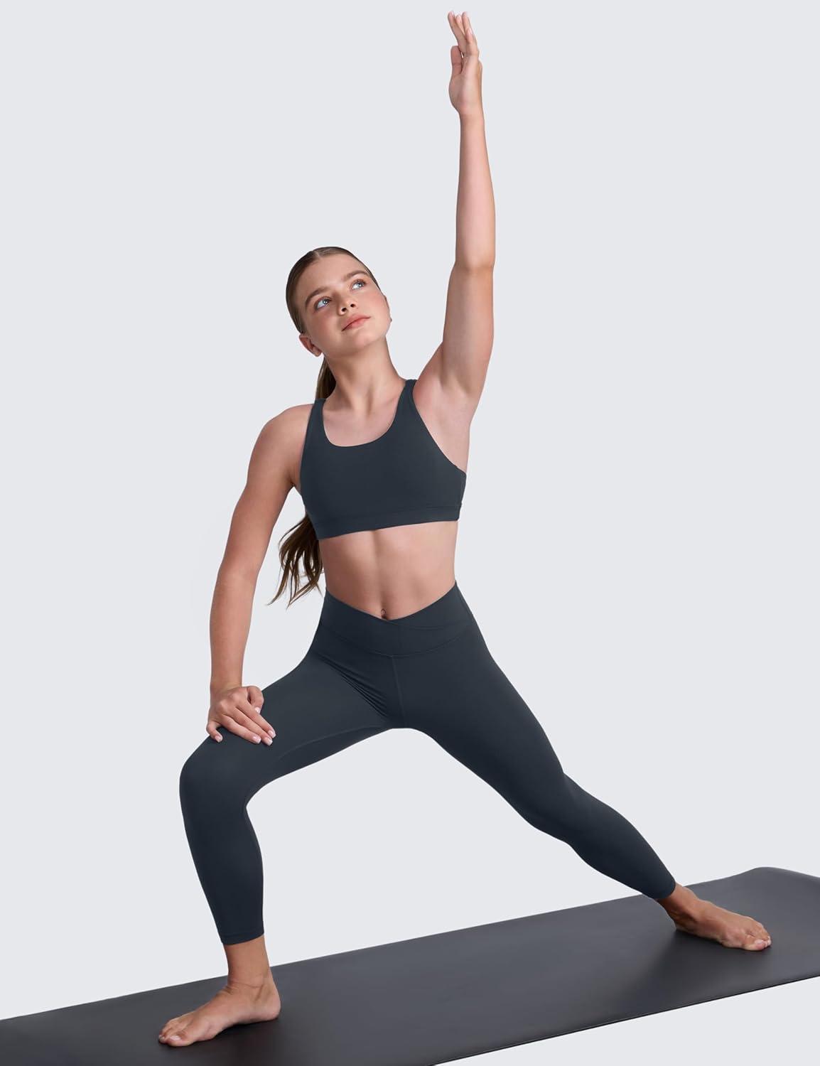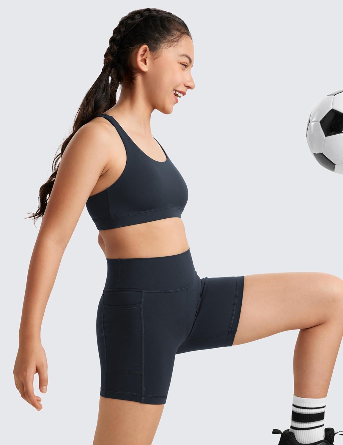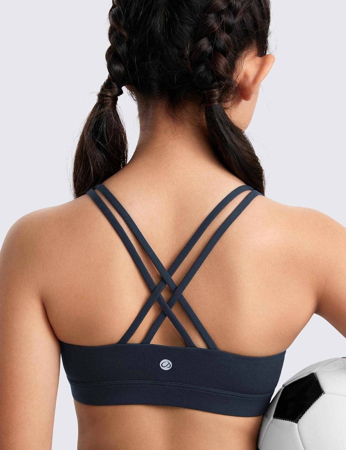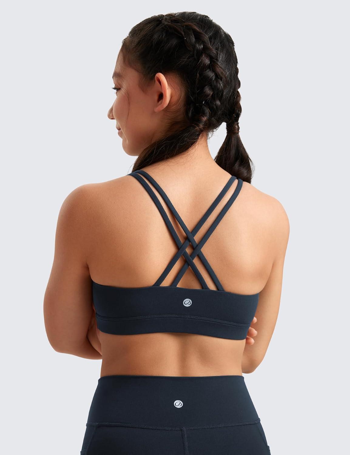 CRZ YOGA Girls Butterluxe Strappy Back Sports Bra – Yoga Athletic Casual Tops Scoop Neck Padded Crop Kids Teen(True Navy)