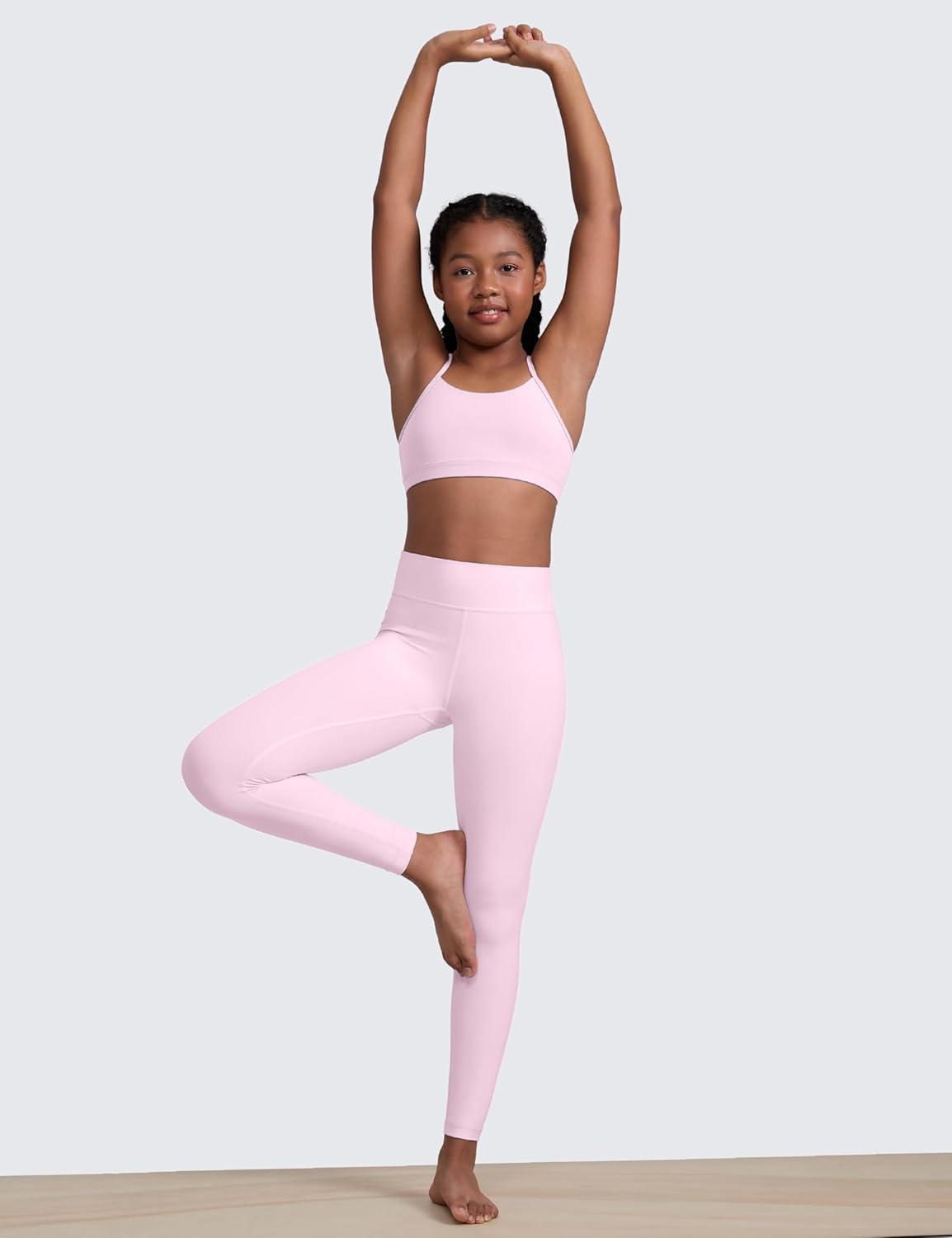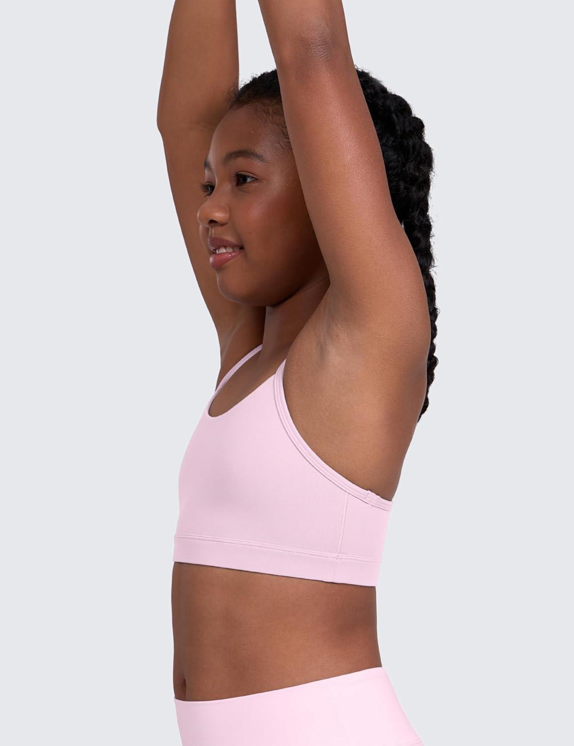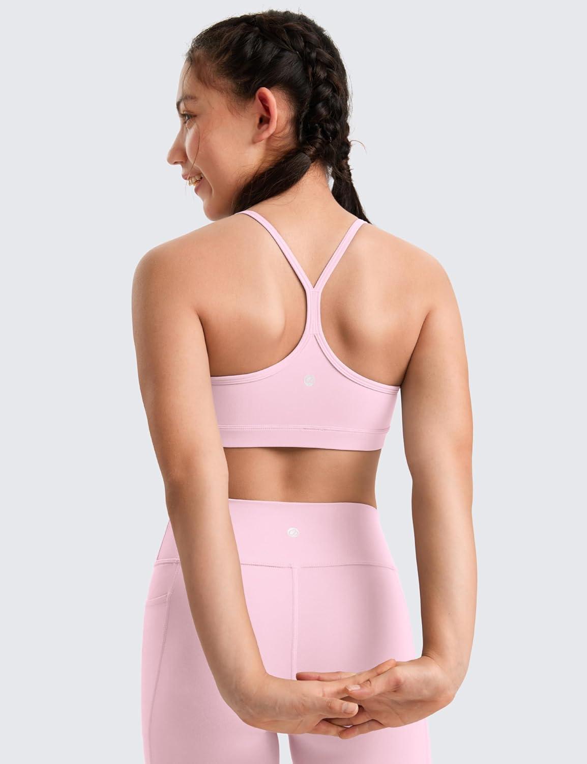 CRZ YOGA Girls Butterluxe Y Back Sports Bra – Yoga Athletic Casual Tops Scoop Neck Spaghetti Strap Padded Crop Kids Teen(Pink Peony)