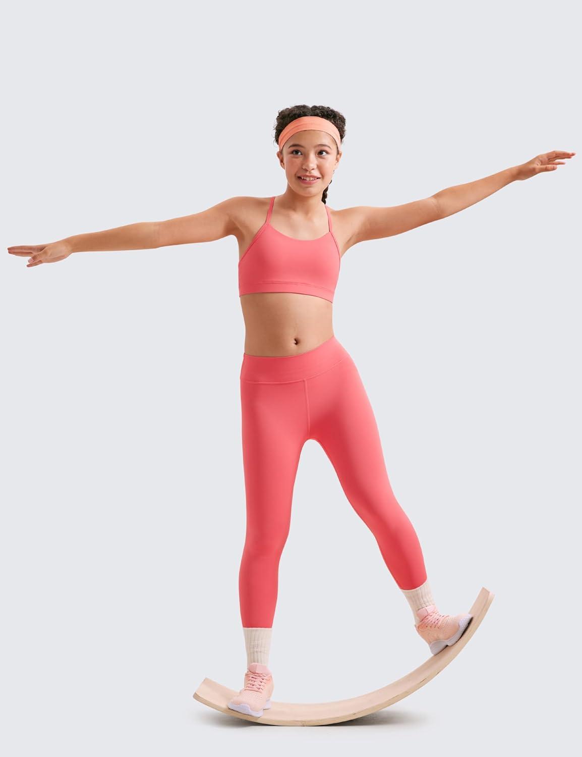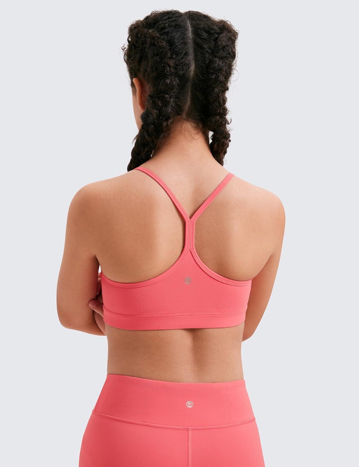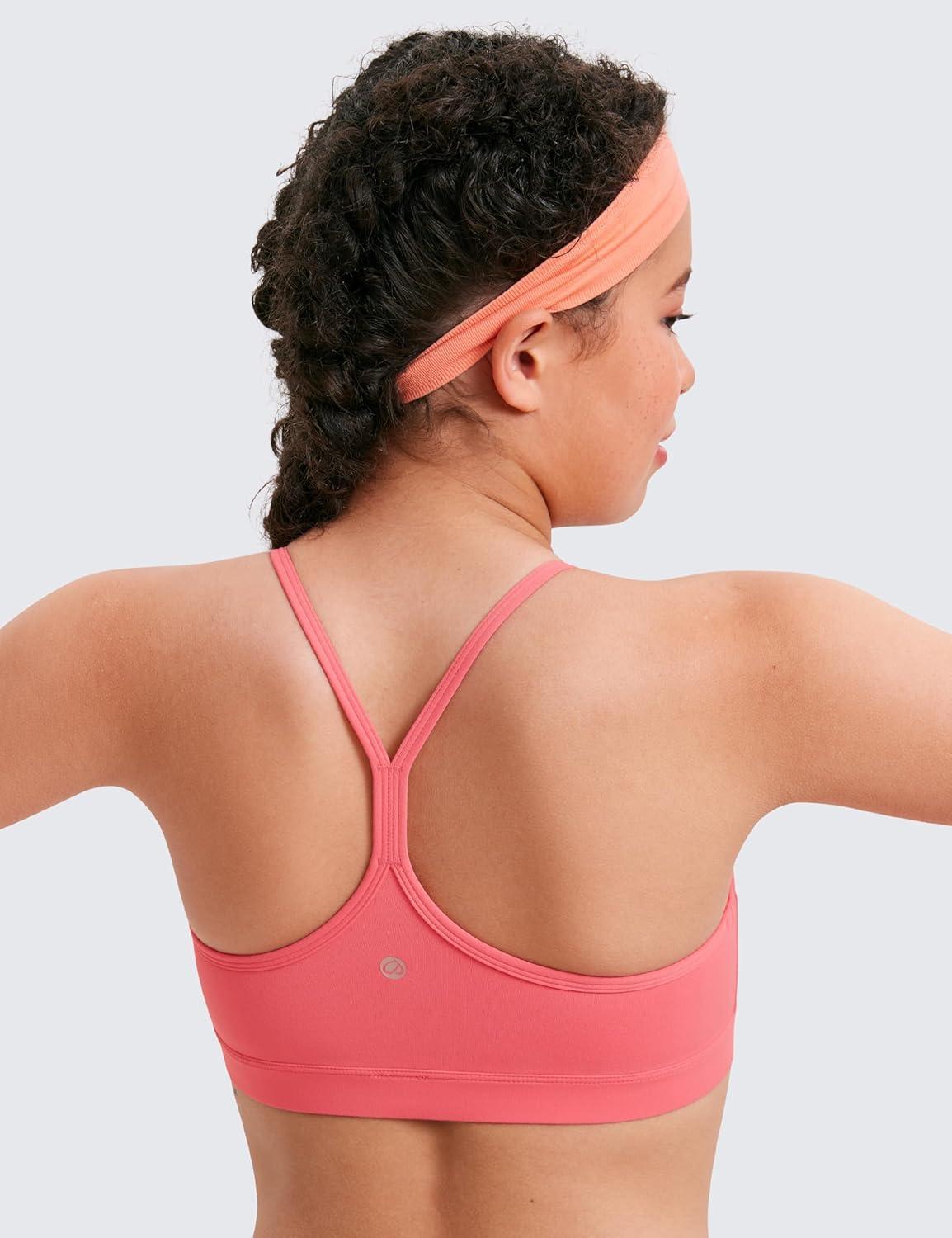 CRZ YOGA Girls Butterluxe Y Back Sports Bra – Yoga Athletic Casual Tops Scoop Neck Spaghetti Strap Padded Crop Kids Teen(Raspberry Sorbet)