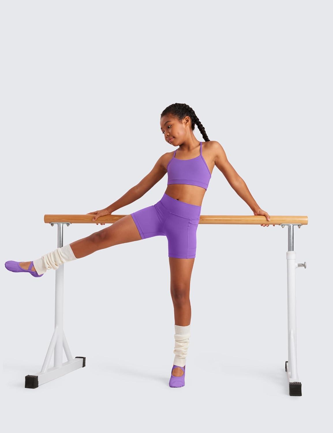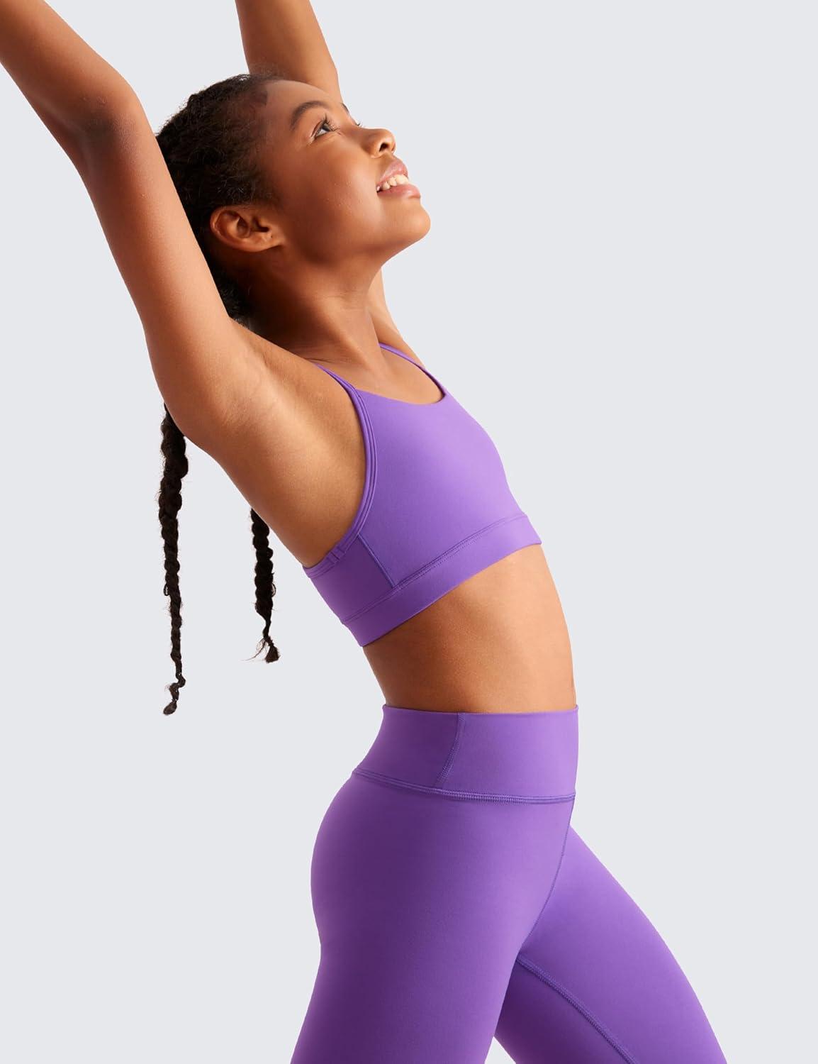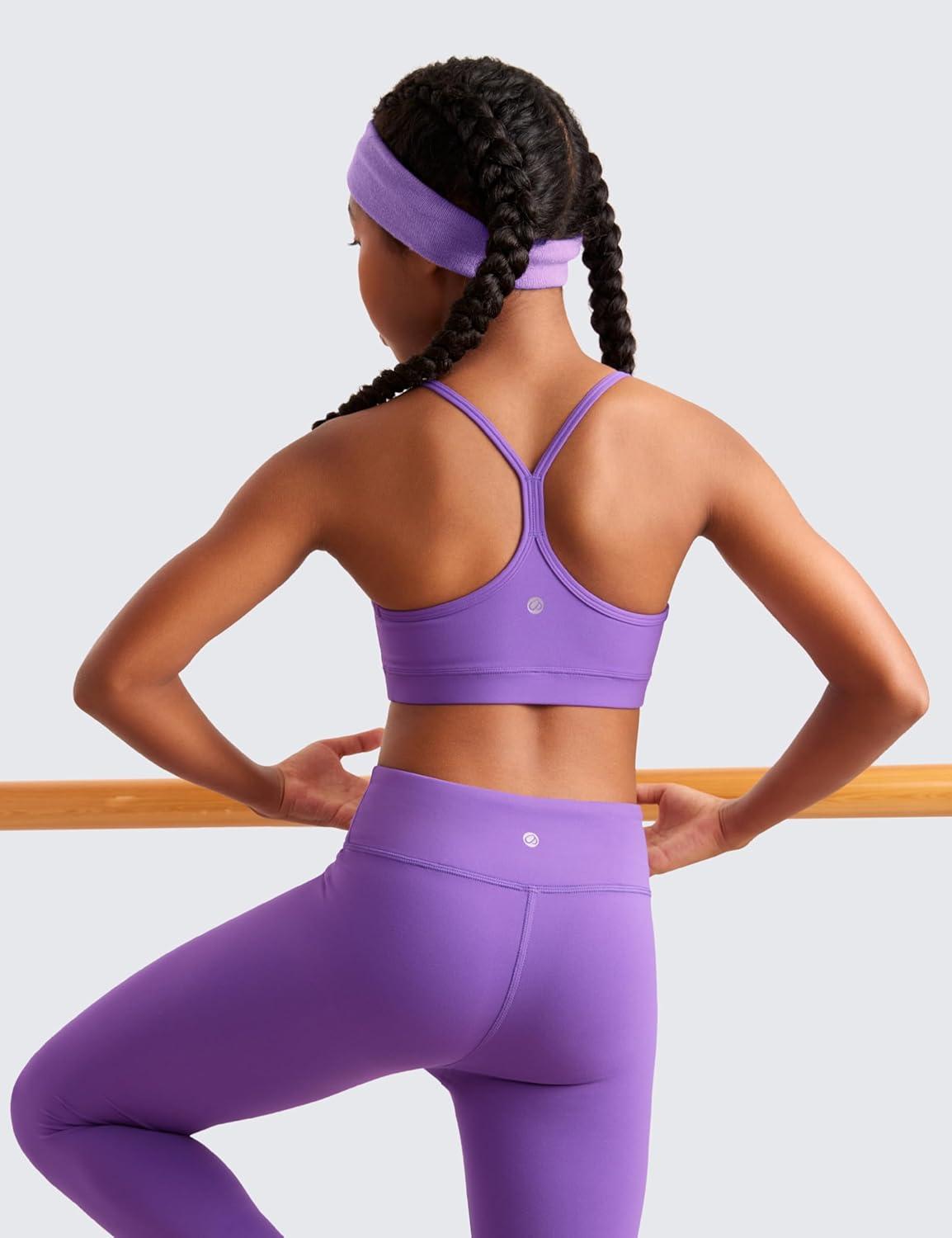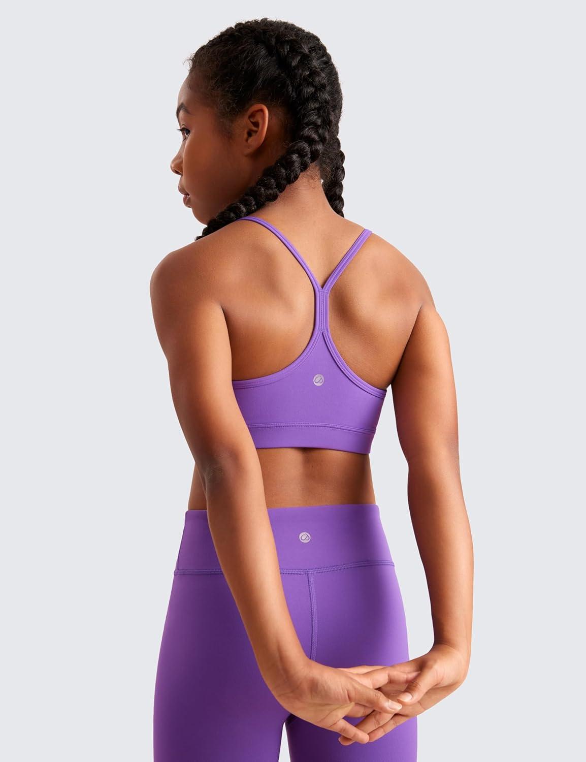 CRZ YOGA Girls Butterluxe Y Back Sports Bra – Yoga Athletic Casual Tops Scoop Neck Spaghetti Strap Padded Crop Kids Teen(Royal Lilac)