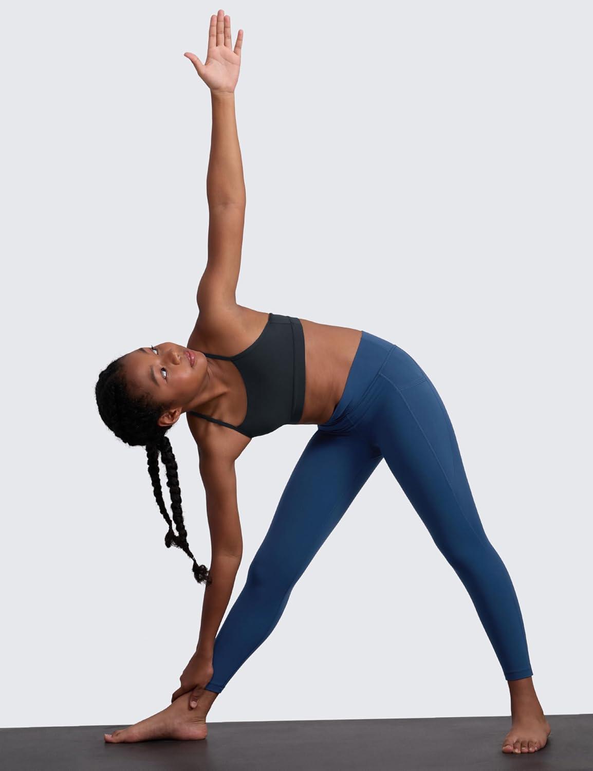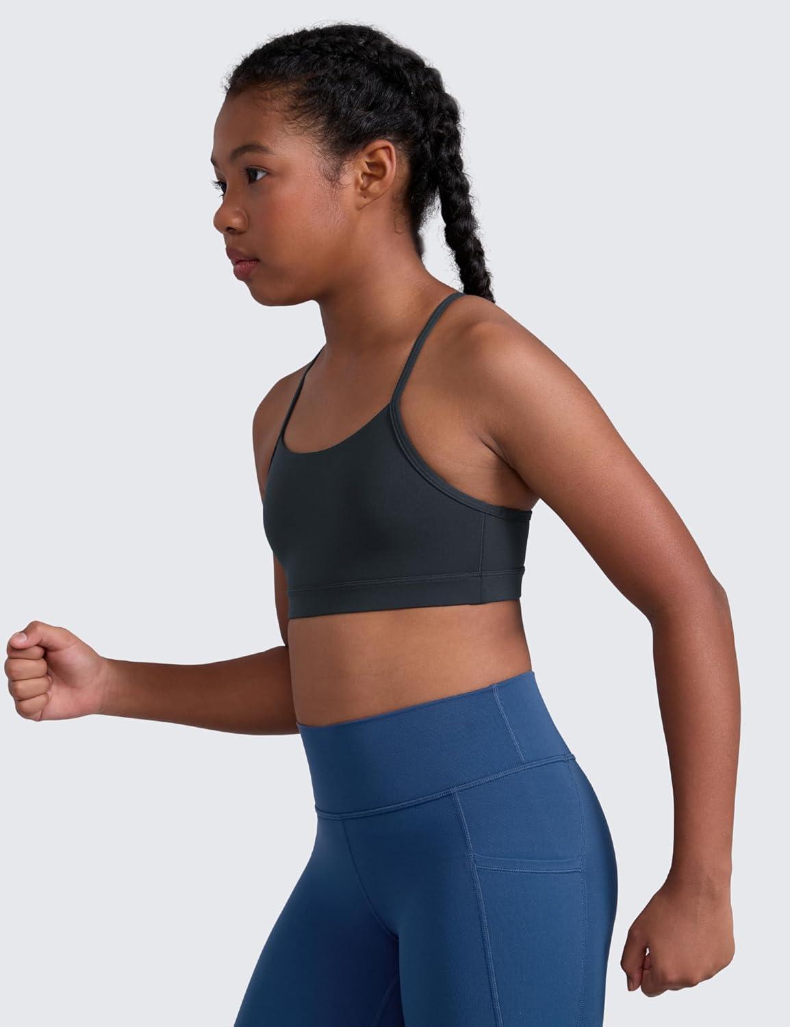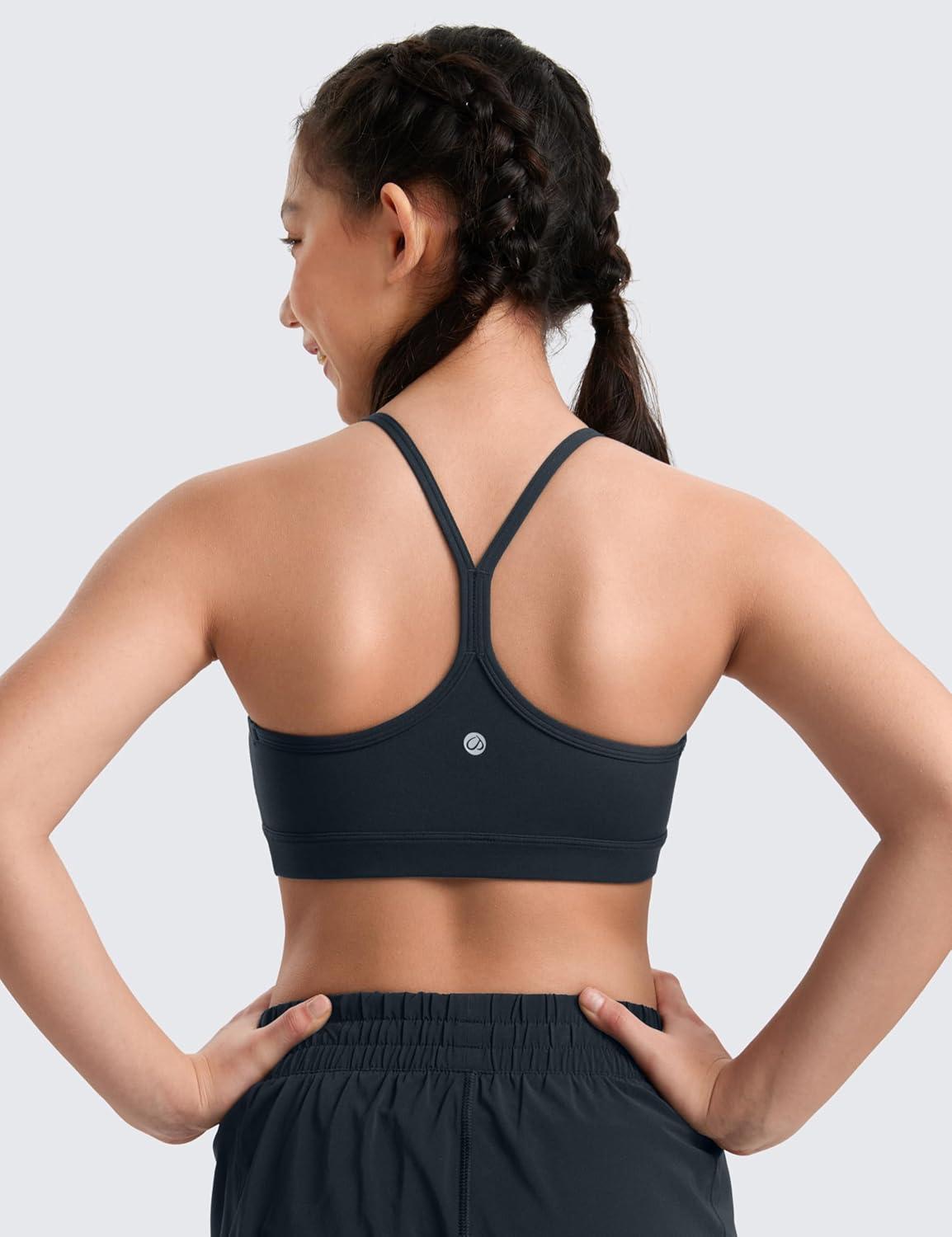 CRZ YOGA Girls Butterluxe Y Back Sports Bra – Yoga Athletic Casual Tops Scoop Neck Spaghetti Strap Padded Crop Kids Teen(True Navy)