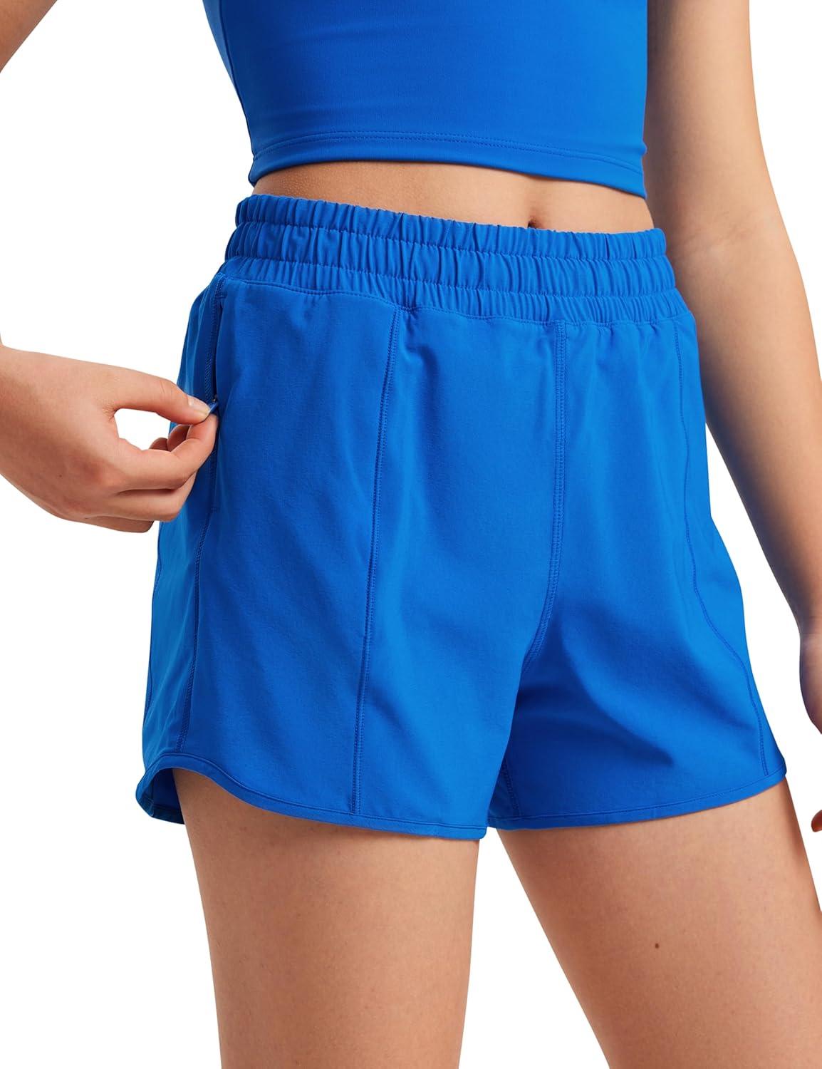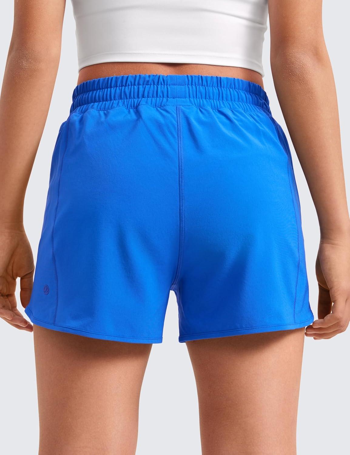 CRZ YOGA Girls Feathery-Fit Soft Athletic Shorts with Zipper Pocket – Tennis Soccer Running Casual Liner Kids Teen(Sparkle Blue)