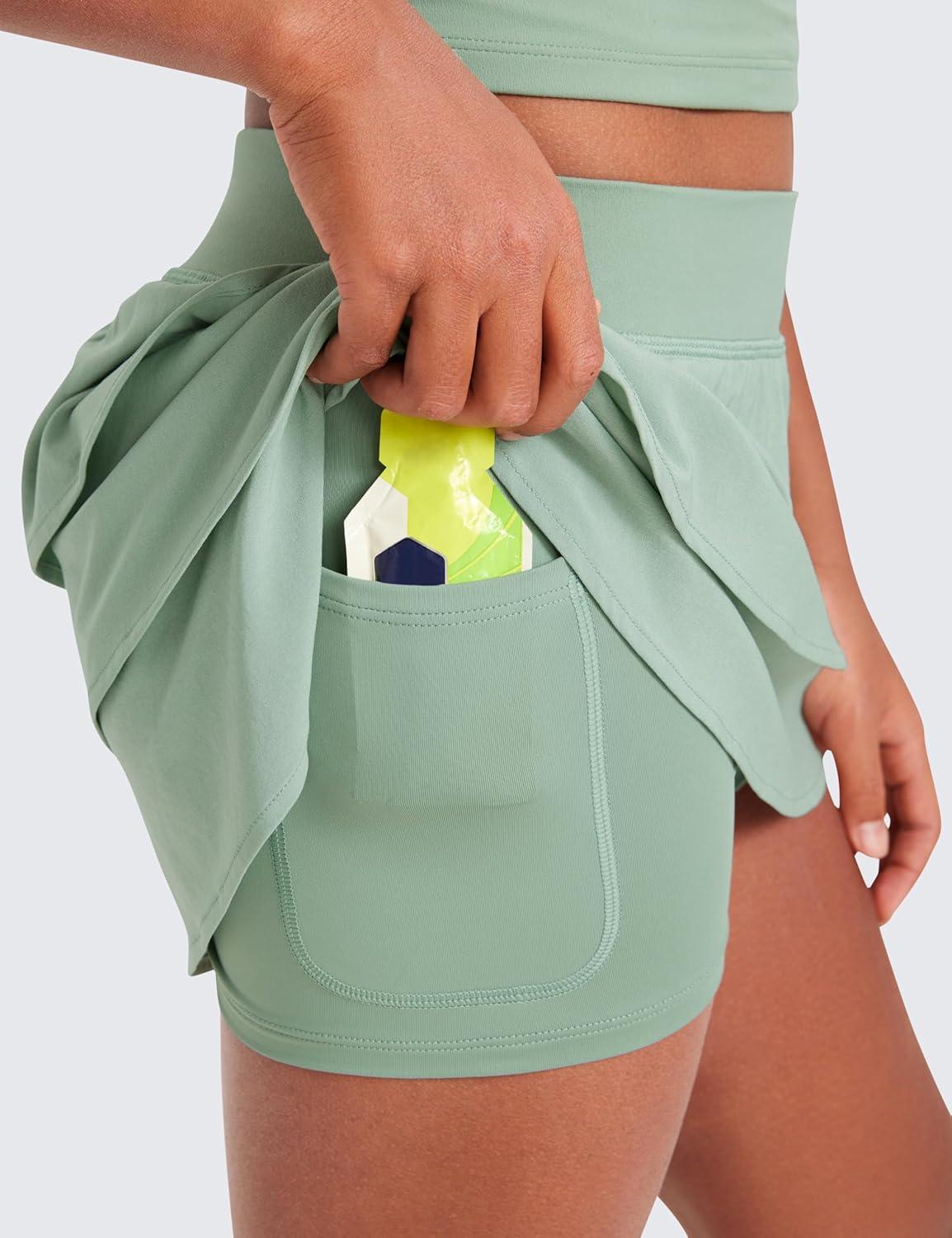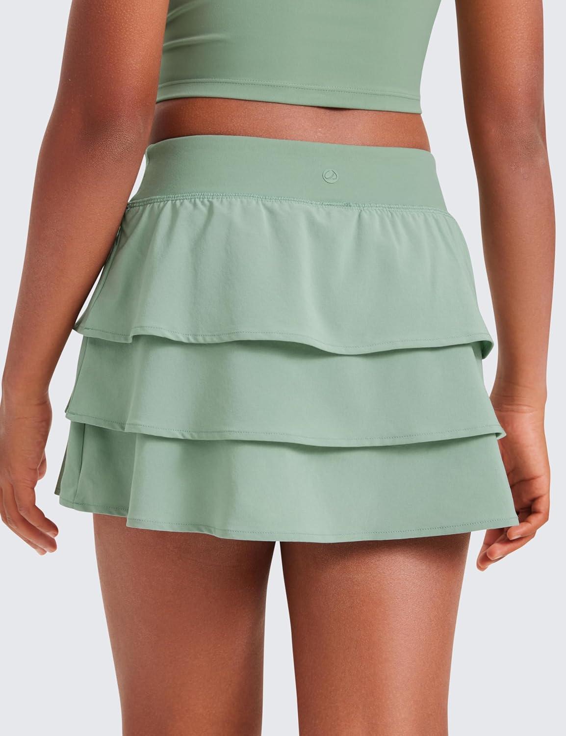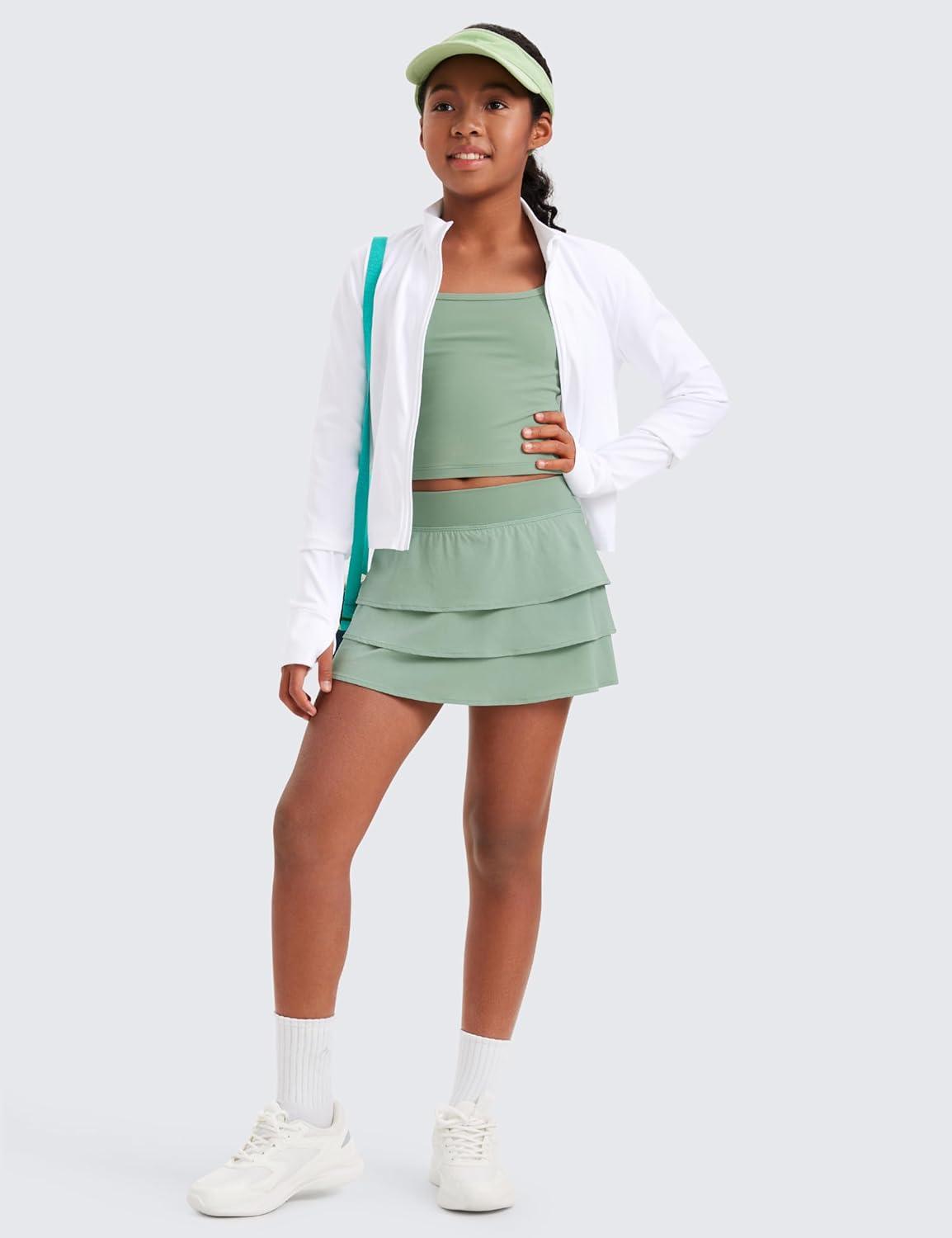 CRZ YOGA Girls Feathery-Fit Soft Ruffle Athletic Skirts – Tennis School Casual Skorts with Pockets Liner Kids Teen(Green Palm Court)