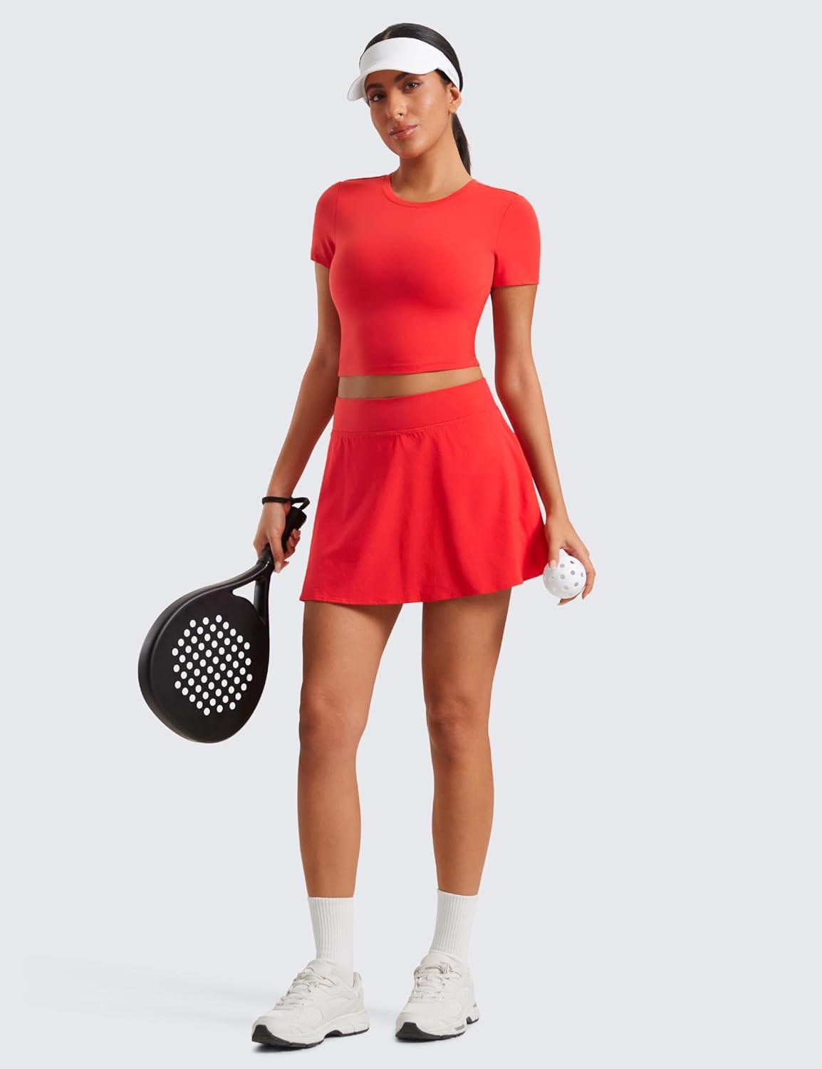 CRZ YOGA High Waisted Flowy Tennis Skirts for Women – Mini Lined Pickleball Casual A Line Skorts with Pockets(Deep Red)