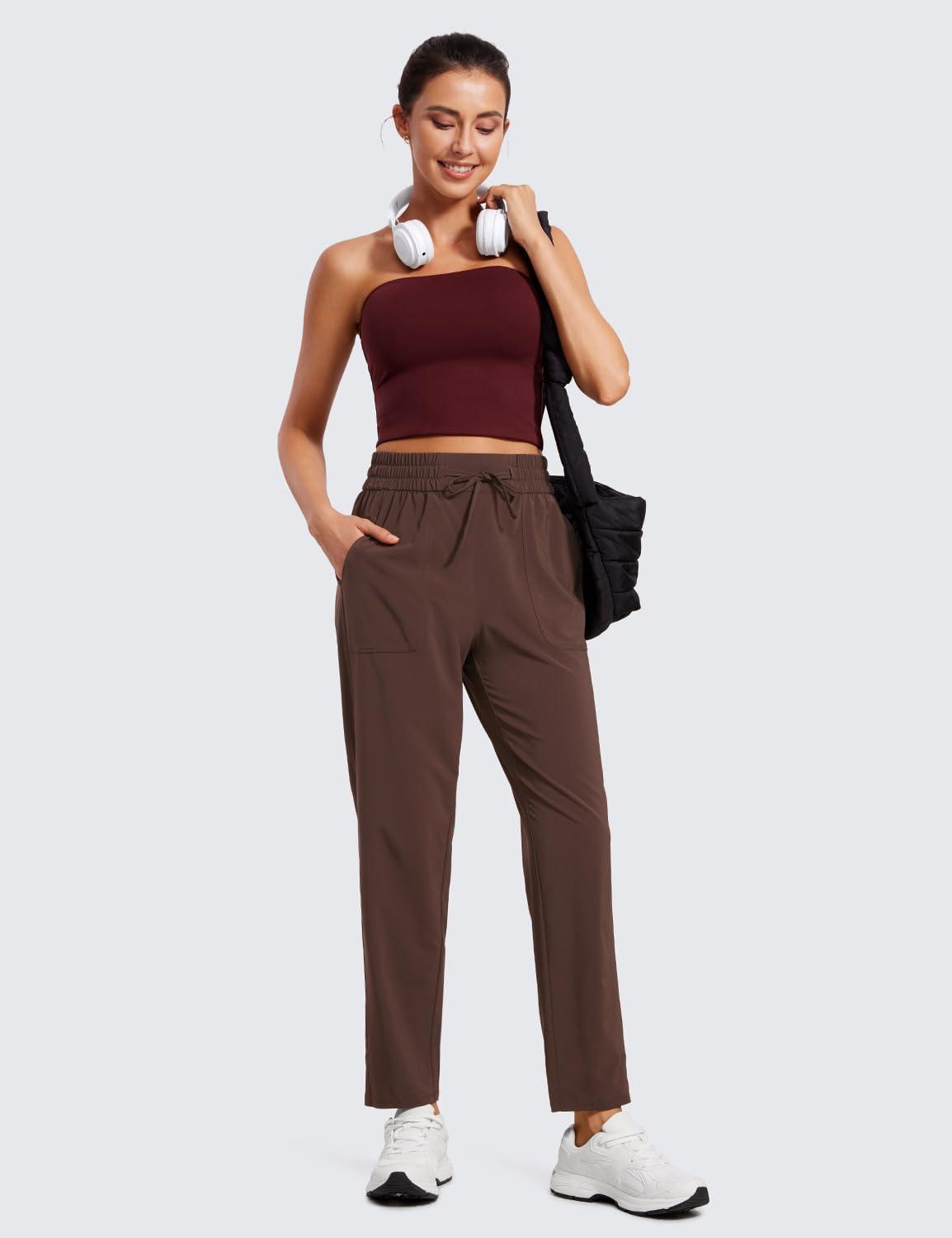 CRZ YOGA Lightweight Ankle Pants for Women 7/8 Casual Lounge Travel Work Trousers with Pockets(Hot Fudge Brown)