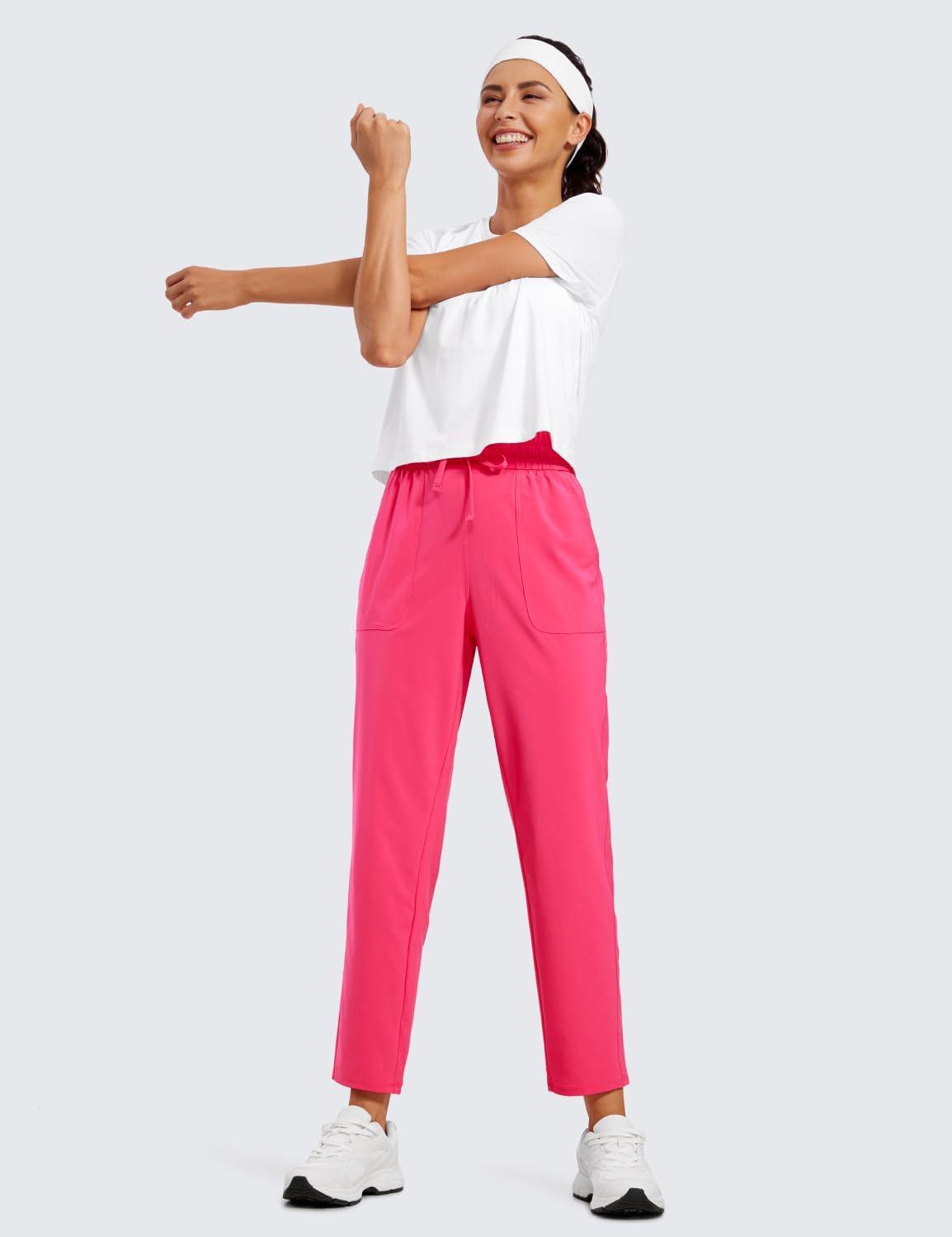CRZ YOGA Lightweight Ankle Pants for Women 7/8 Casual Lounge Travel Work Trousers with Pockets(Lip Gloss Pink)