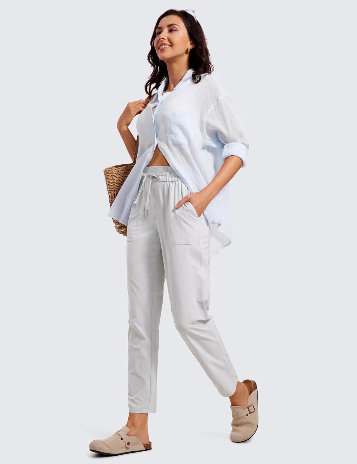 CRZ YOGA Lightweight Ankle Pants for Women 7/8 Casual Lounge Travel Work Trousers with Pockets(Platinum Grey)