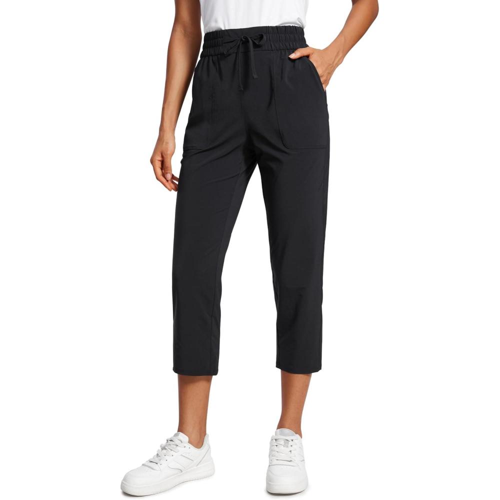 CRZ YOGA Lightweight Capri for Women 23″ Cropped Casual Lounge Work Athletic Travel Pants with Pockets Quick Dry Summer(Black)
