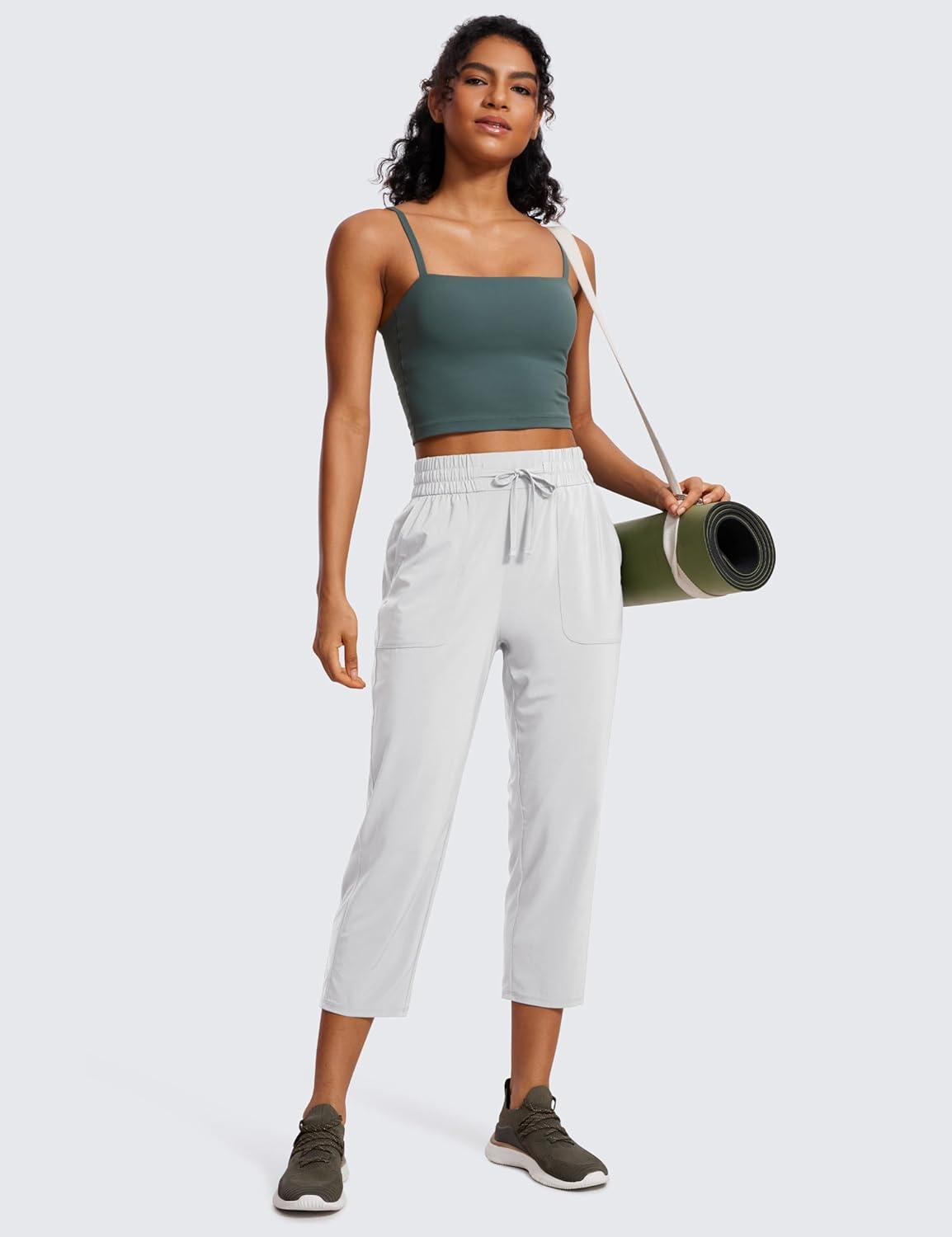 CRZ YOGA Lightweight Capri for Women 23″ Cropped Casual Lounge Work Athletic Travel Pants with Pockets Quick Dry Summer(Platinum Grey)