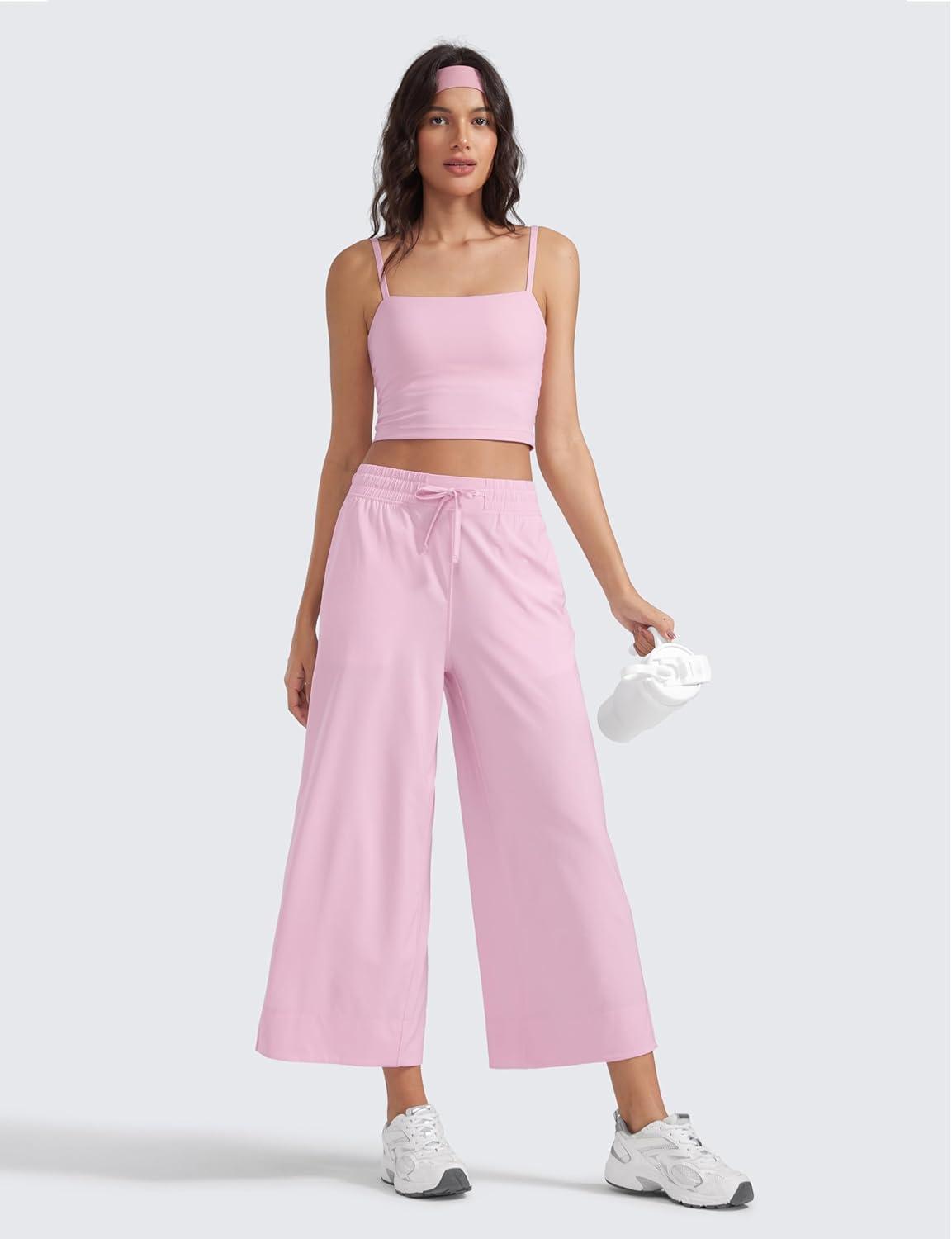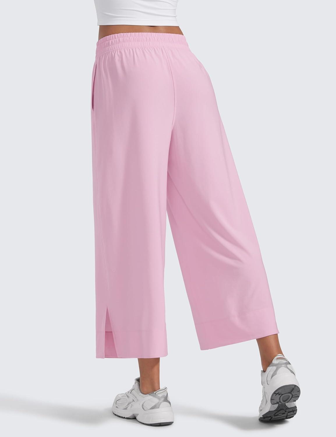 CRZ YOGA Lightweight Wide Leg Cropped Pants for Women 25″ – Casual Travel Work Sweatpants Summer(Pink Peony)