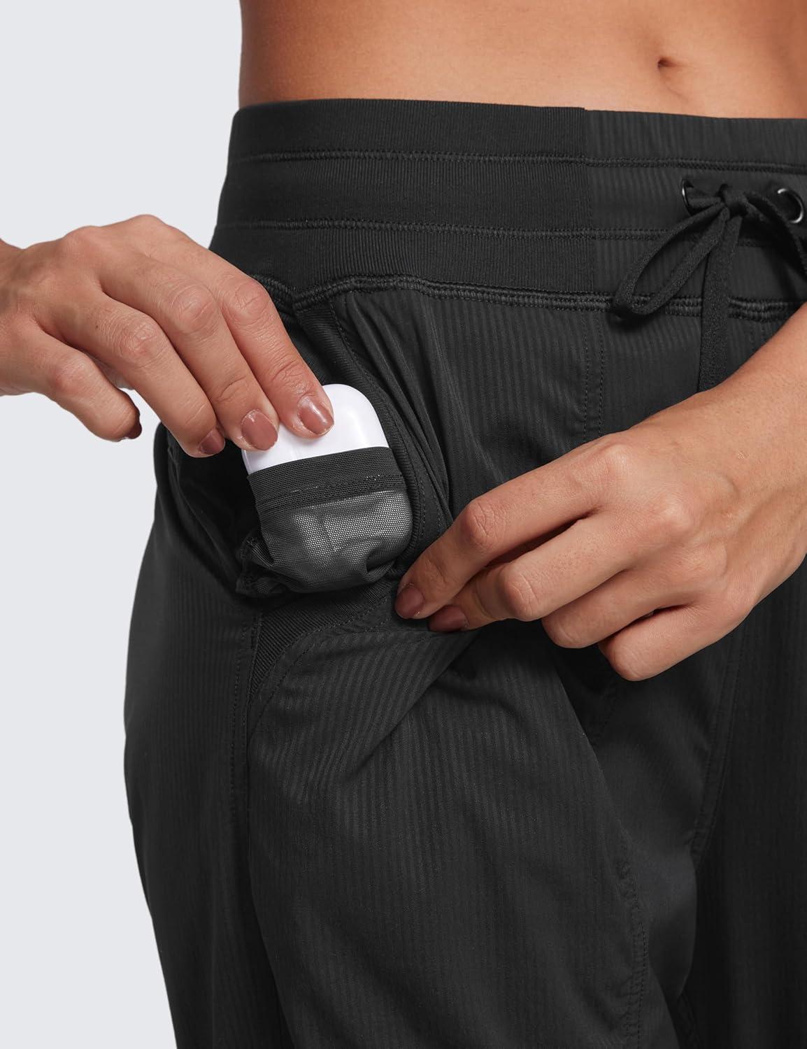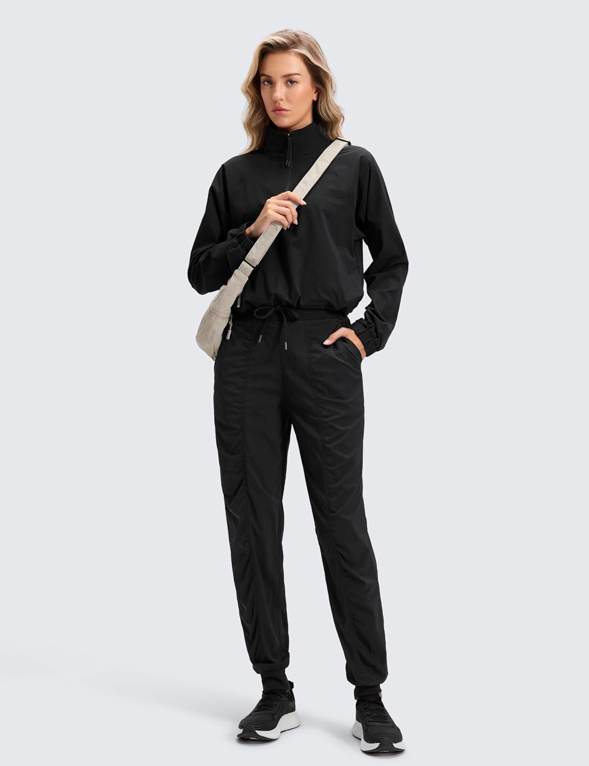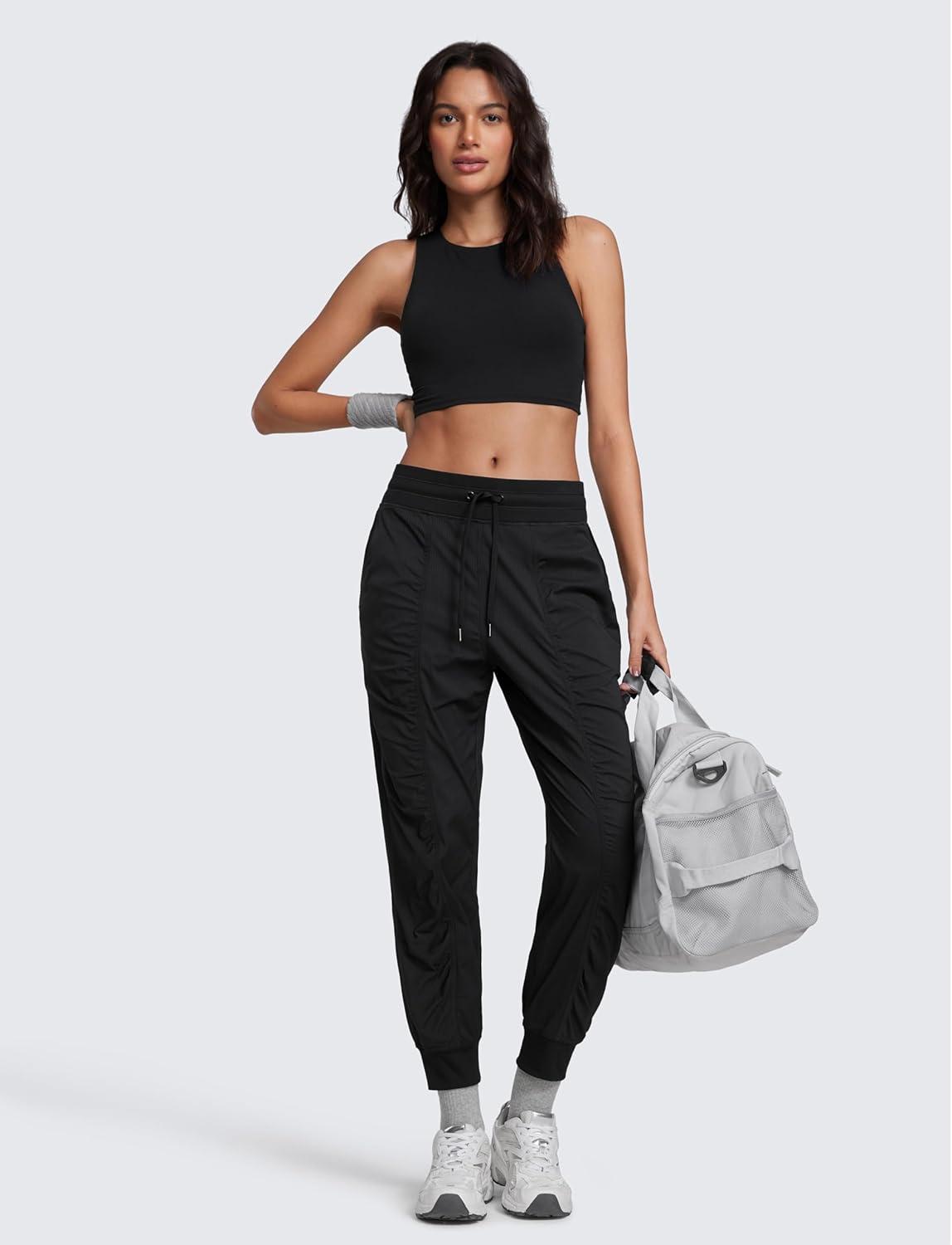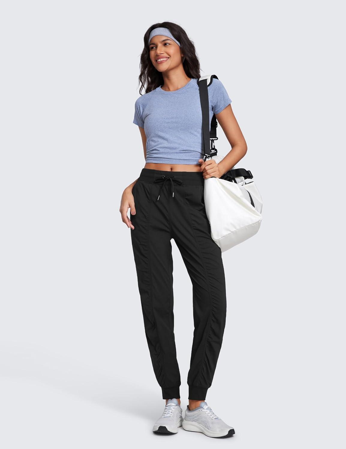 CRZ YOGA Lightweight Workout Joggers for Women 26″/28.5″/30.5″ – Outdoor Running Casual Pants with Pockets(Black)