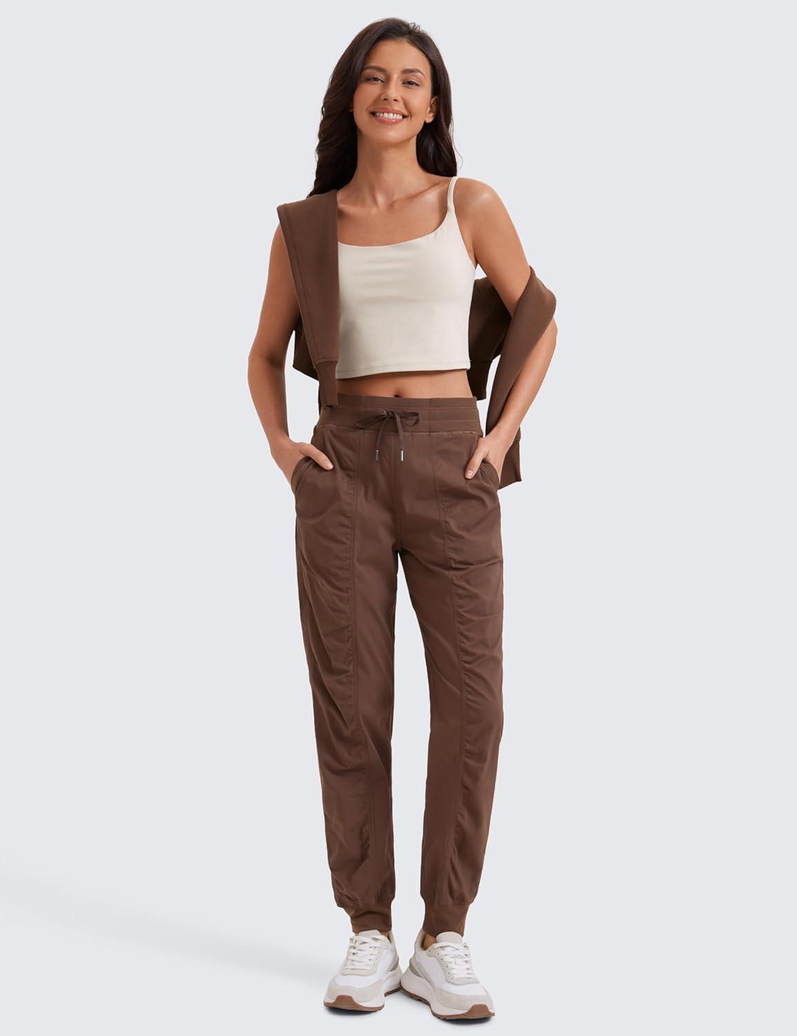 CRZ YOGA Lightweight Workout Joggers for Women 26″/28.5″/30.5″ – Outdoor Running Casual Pants with Pockets(Coffee Brown)