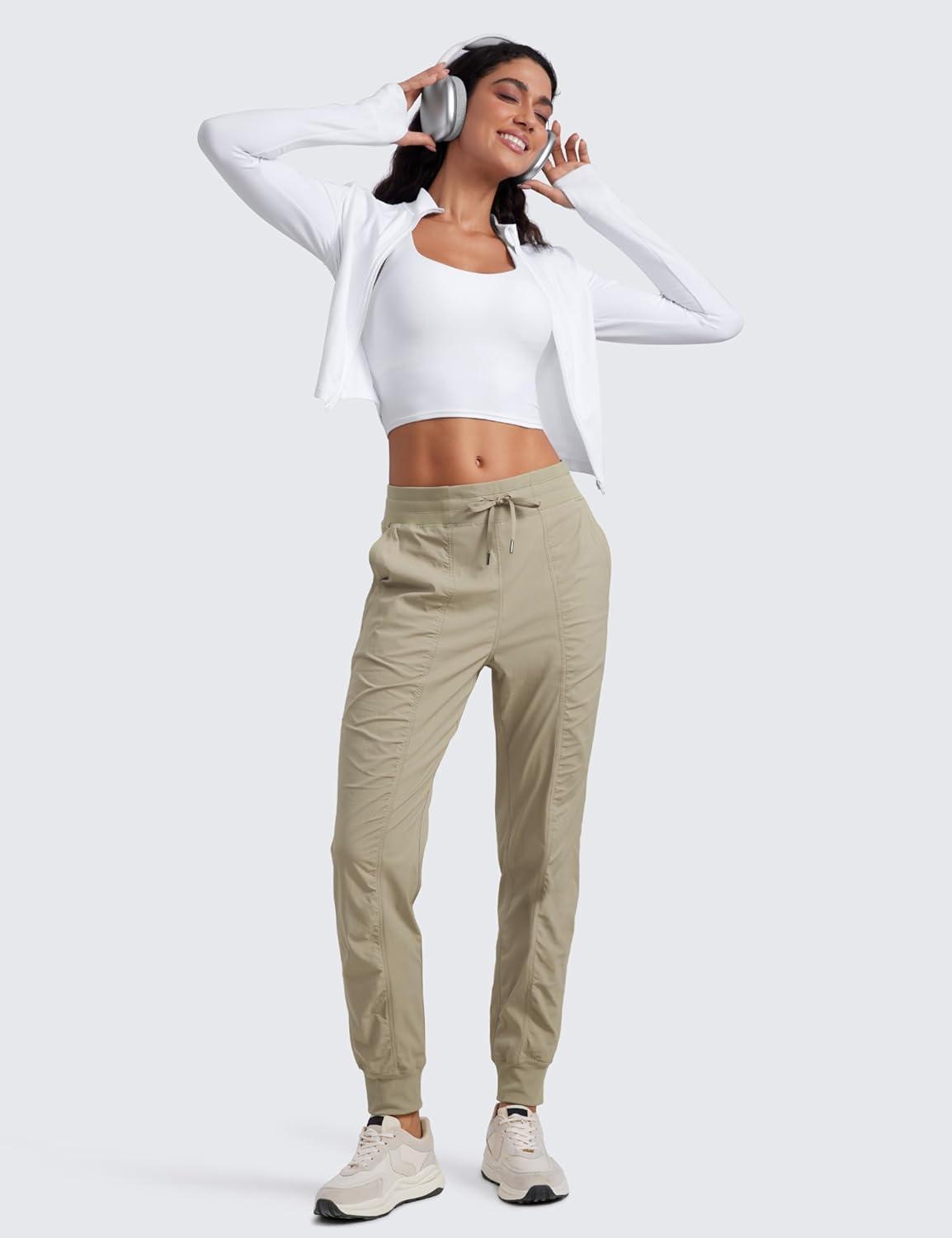 CRZ YOGA Lightweight Workout Joggers for Women 26″/28.5″/30.5″ – Outdoor Running Casual Pants with Pockets(Khali Barley)