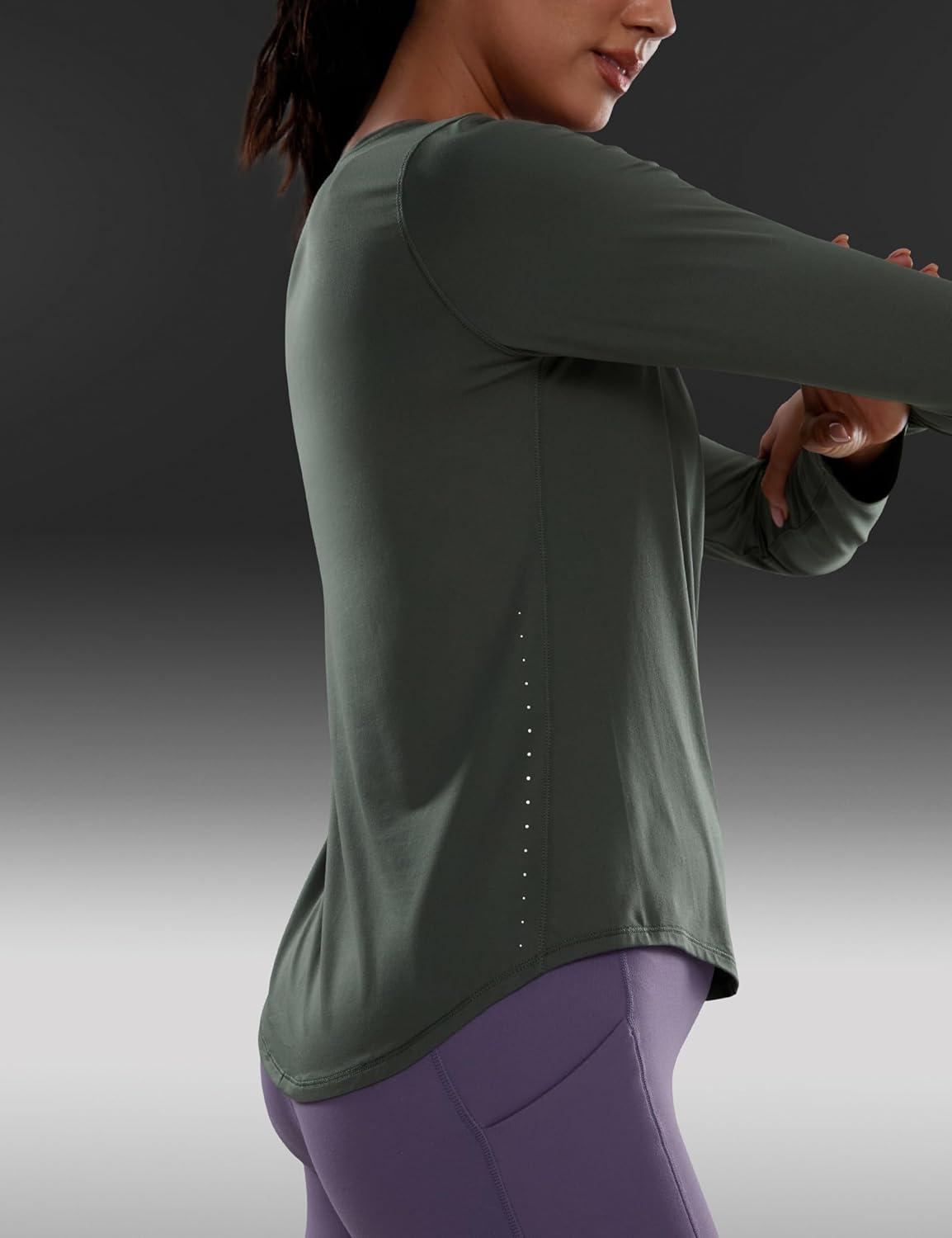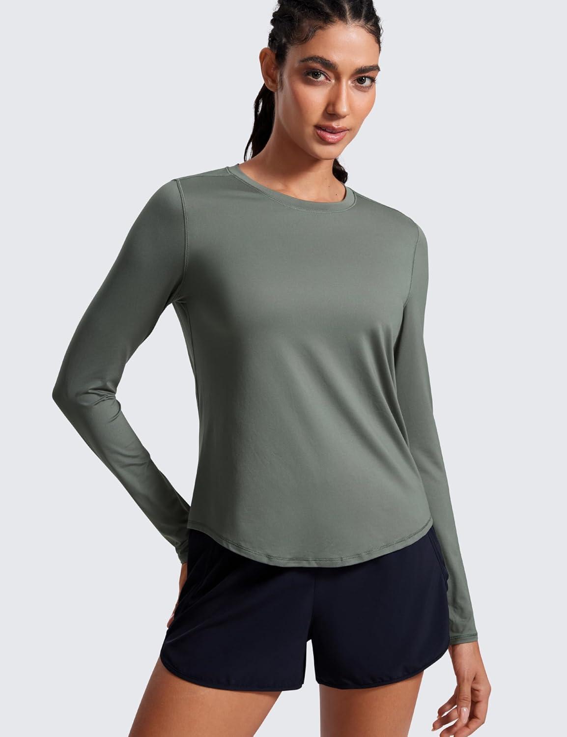 CRZ YOGA Lightweight Workout Long Sleeve Shirts for Women – Gym Running Fall Athletic Training T-Shirts High Neck Tops(Grey Sage)