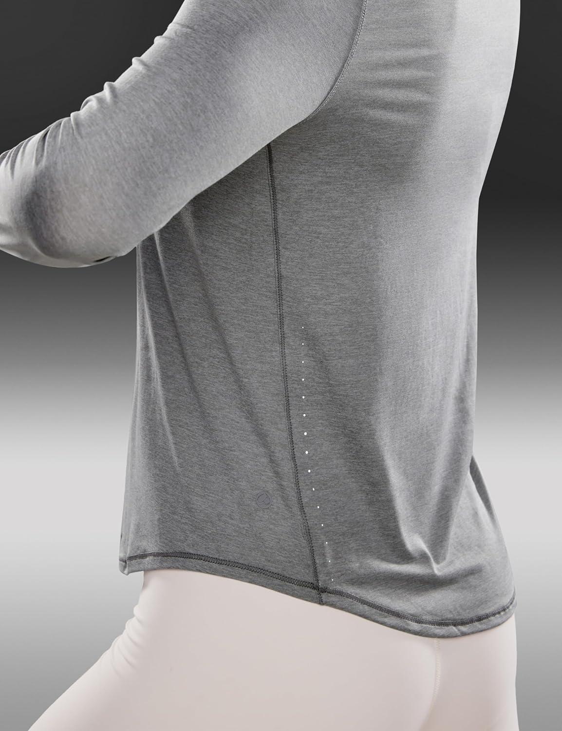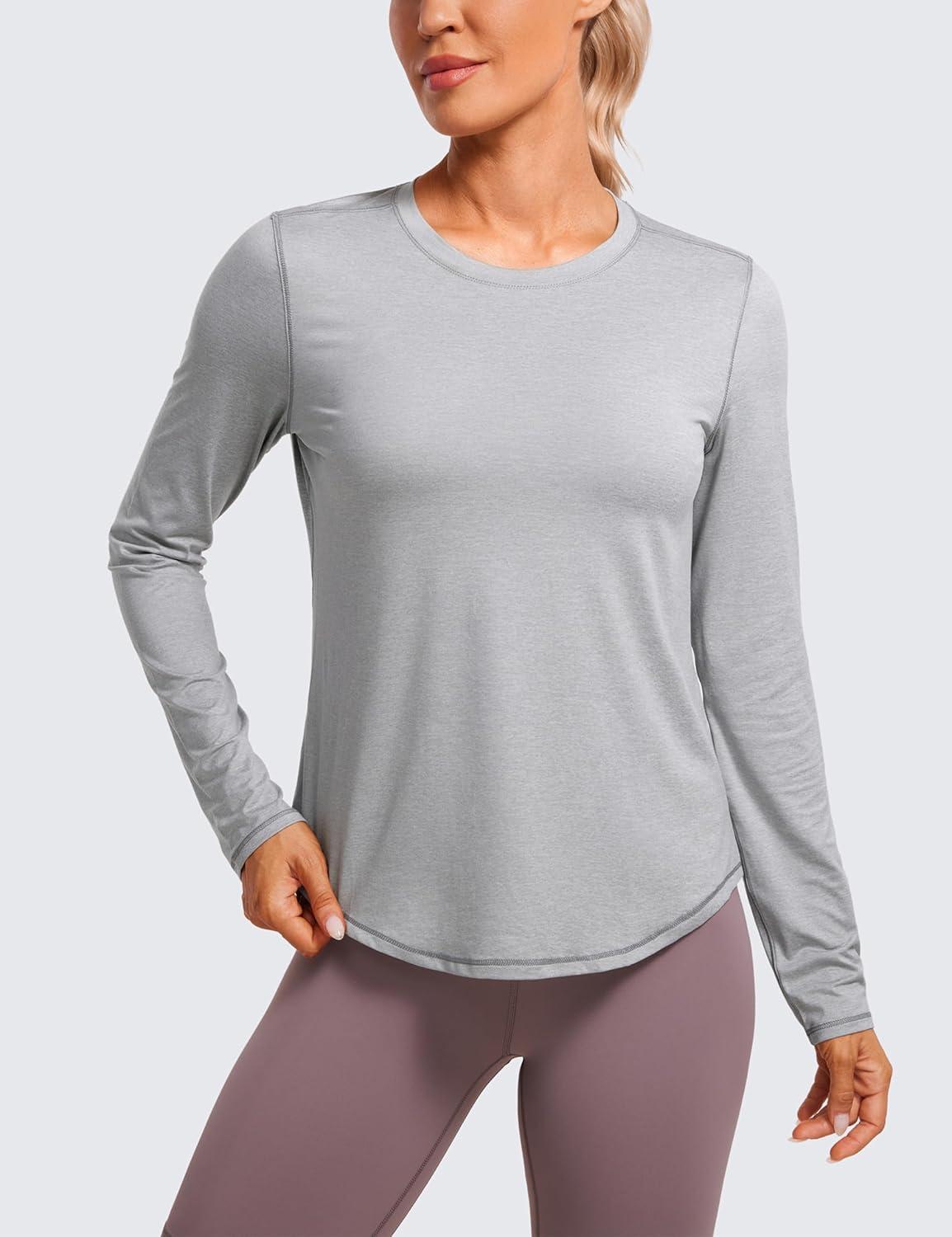 CRZ YOGA Lightweight Workout Long Sleeve Shirts for Women – Gym Running Fall Athletic Training T-Shirts High Neck Tops(Silver Mist)