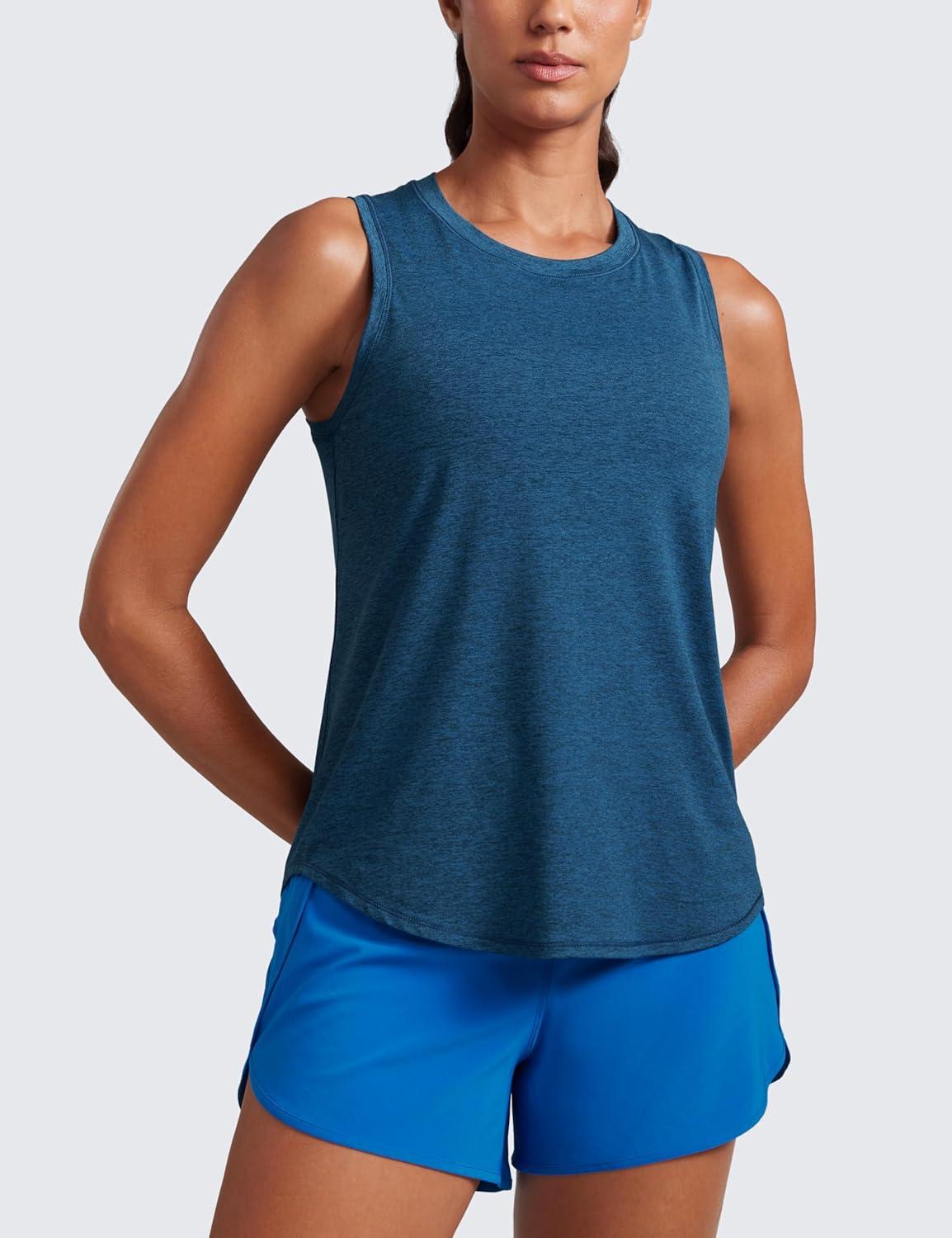 CRZ YOGA Lightweight Workout Tank Tops for Women – Athletic Running Sleeveless Shirts Racerback High Neck T-Shirt(Night Blue Heather)